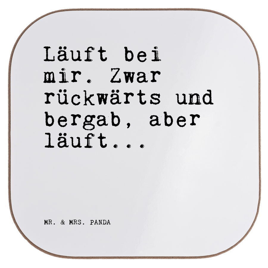 Quadratische Untersetzer Sprüche und Zitate Läuft bei mir. Zwar rückwärts und bergab, aber läuft...