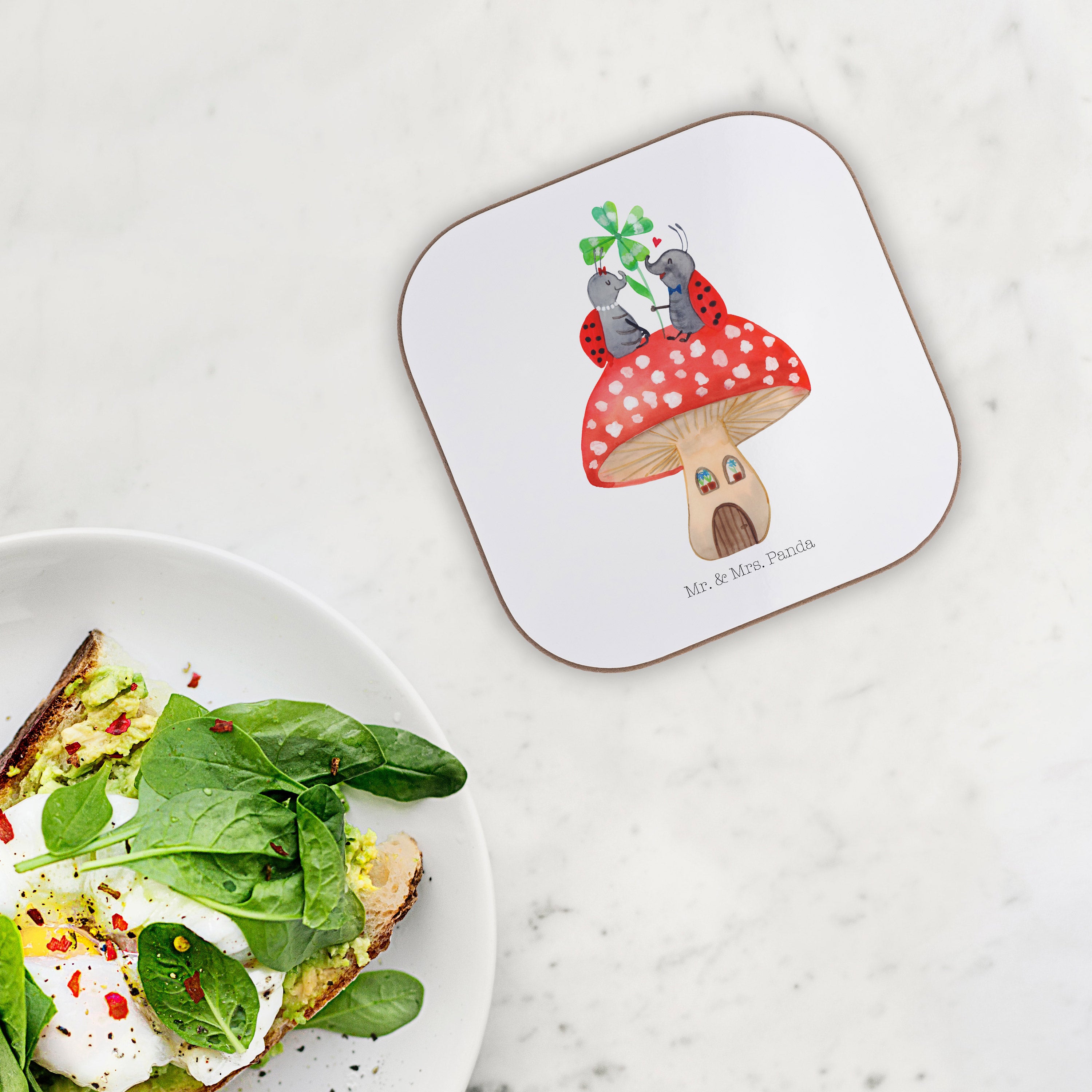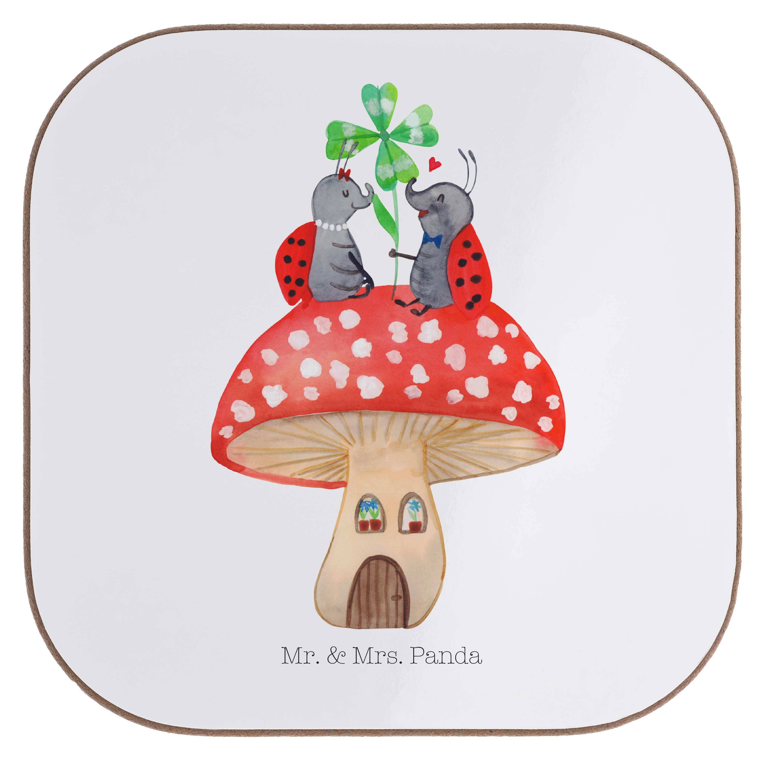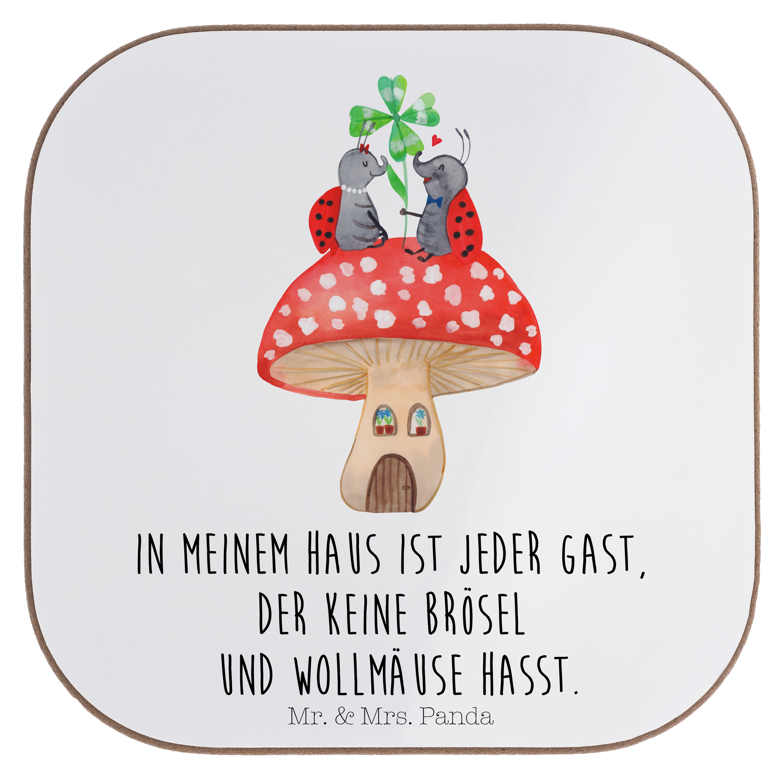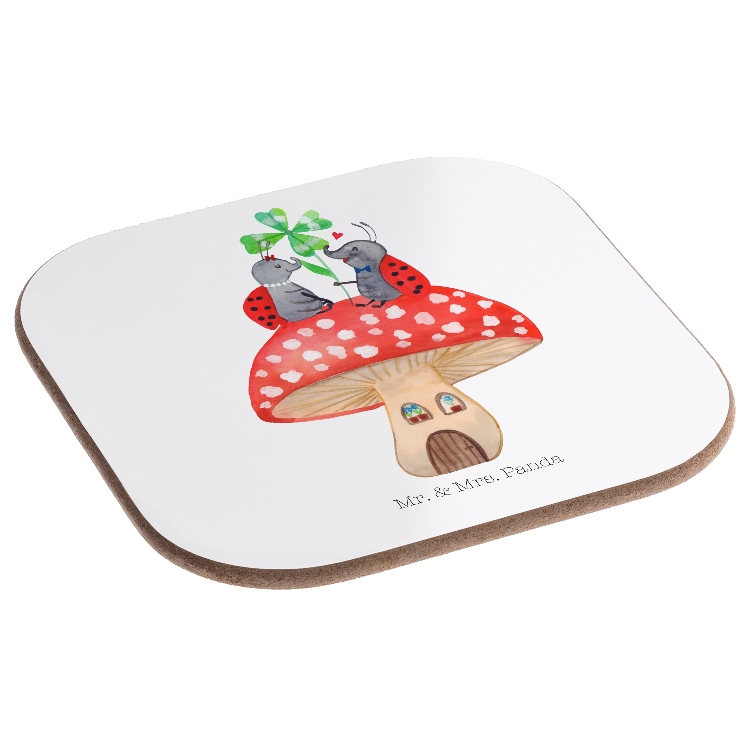 Quadratische Untersetzer Marienkäfer Paar Fliegenpilz Bierdeckel, Glasuntersetzer, Untersetzer Gläser, Getränkeuntersetzer, Tiermotive, Gute Laune, lustige Sprüche, Tiere, Haus, Wohnung, zuhause, Fliegenpilz, Marienkäfer, Fleigenpilzhaus