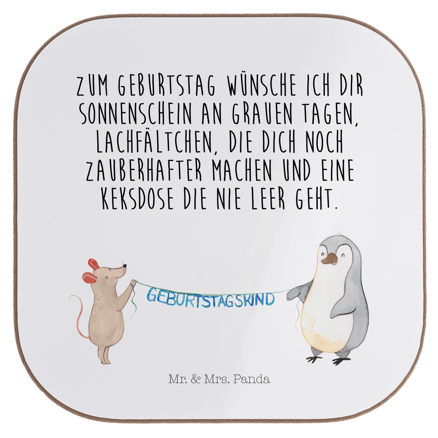 Quadratische Untersetzer Maus Pinguin Geburtstag Bierdeckel, Glasuntersetzer, Untersetzer Gläser, Getränkeuntersetzer, Geburtstag, Geburtstagsgeschenk, Geschenk, Maus, Pinguin, Geburtstage, Happy Birthday, Geburtstagsfeier
