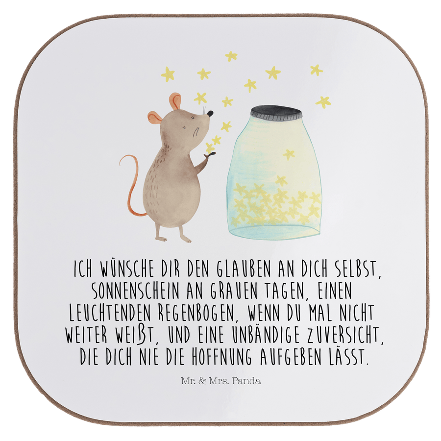 Quadratische Untersetzer Maus Sterne - mit Spruch