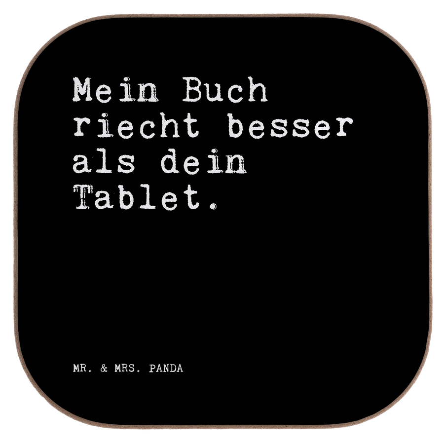 Quadratische Untersetzer Sprüche und Zitate Mein Buch riecht besser als dein Tablet.