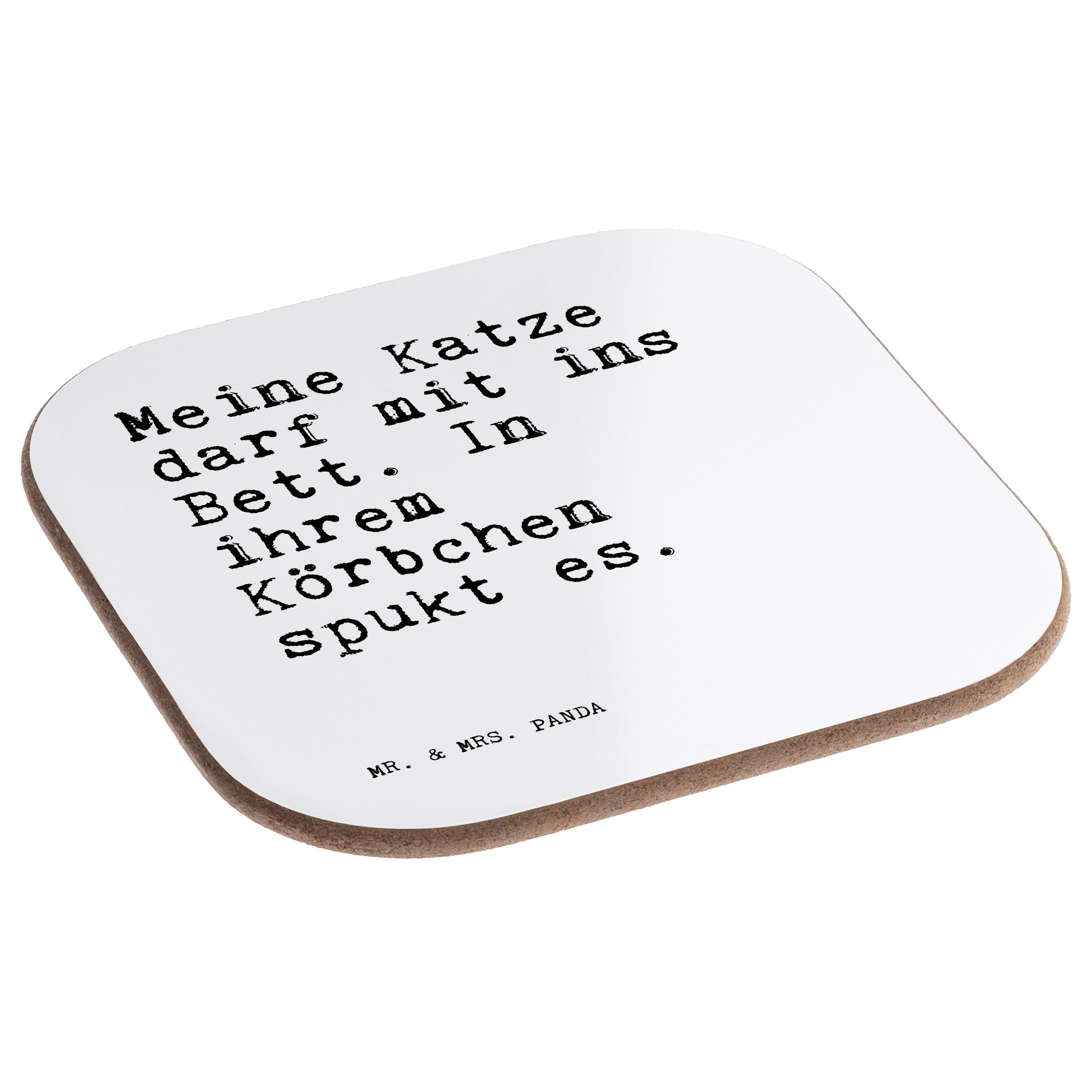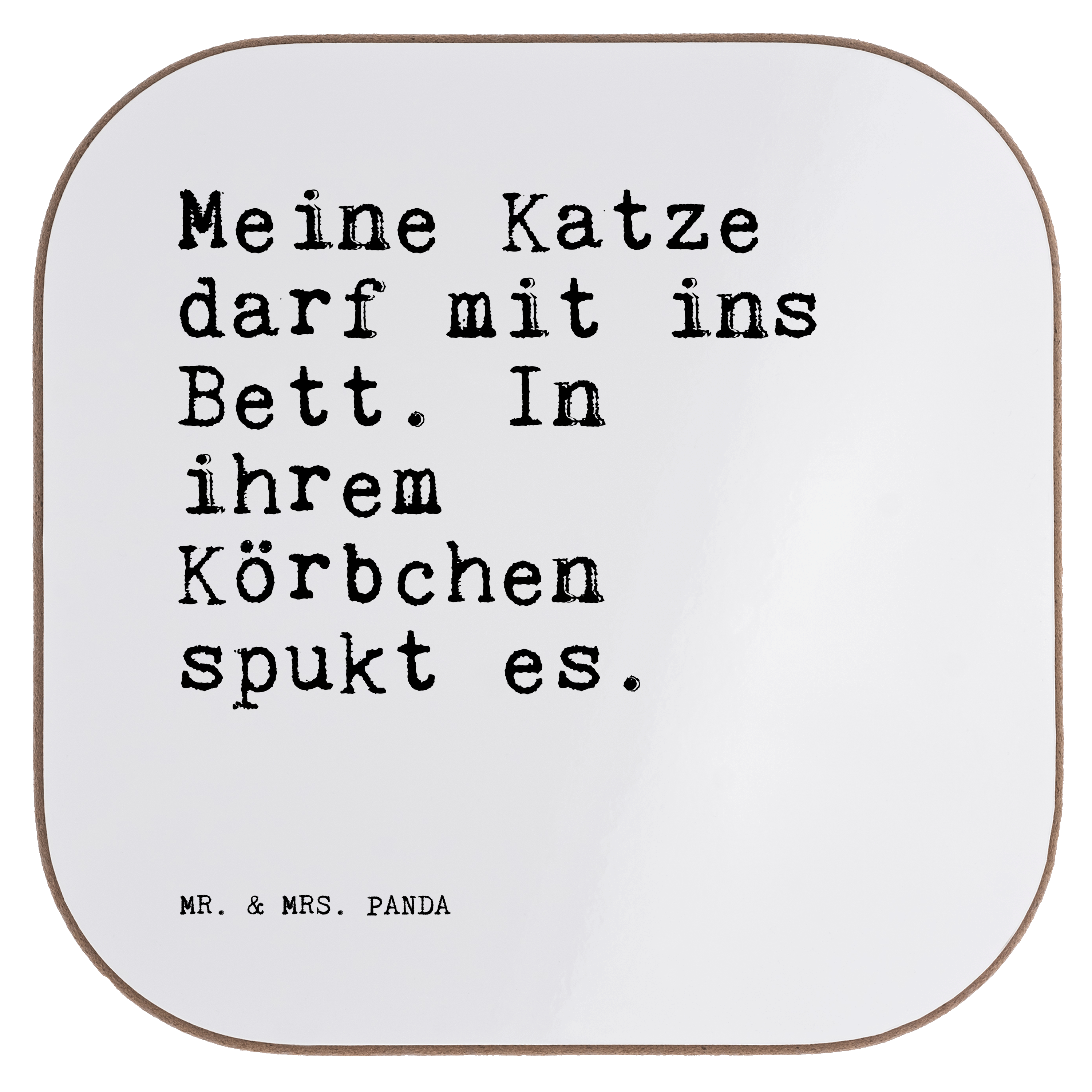 Quadratische Untersetzer Sprüche und Zitate Meine Katze darf mit ins Bett. In ihrem Körbchen spukt es.