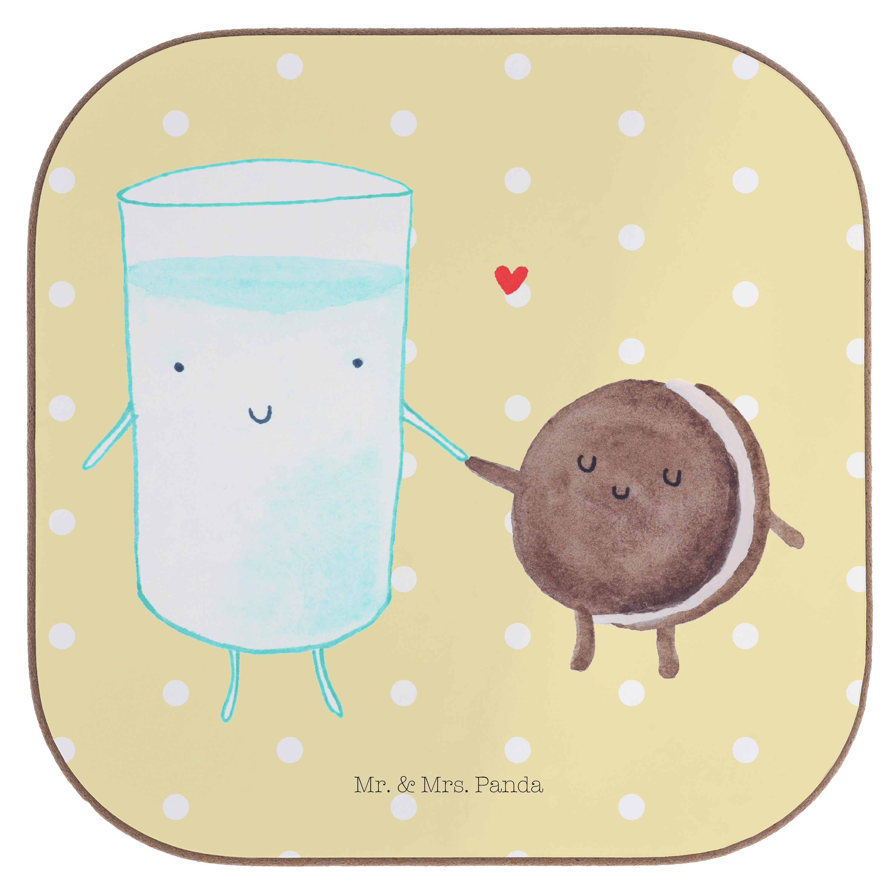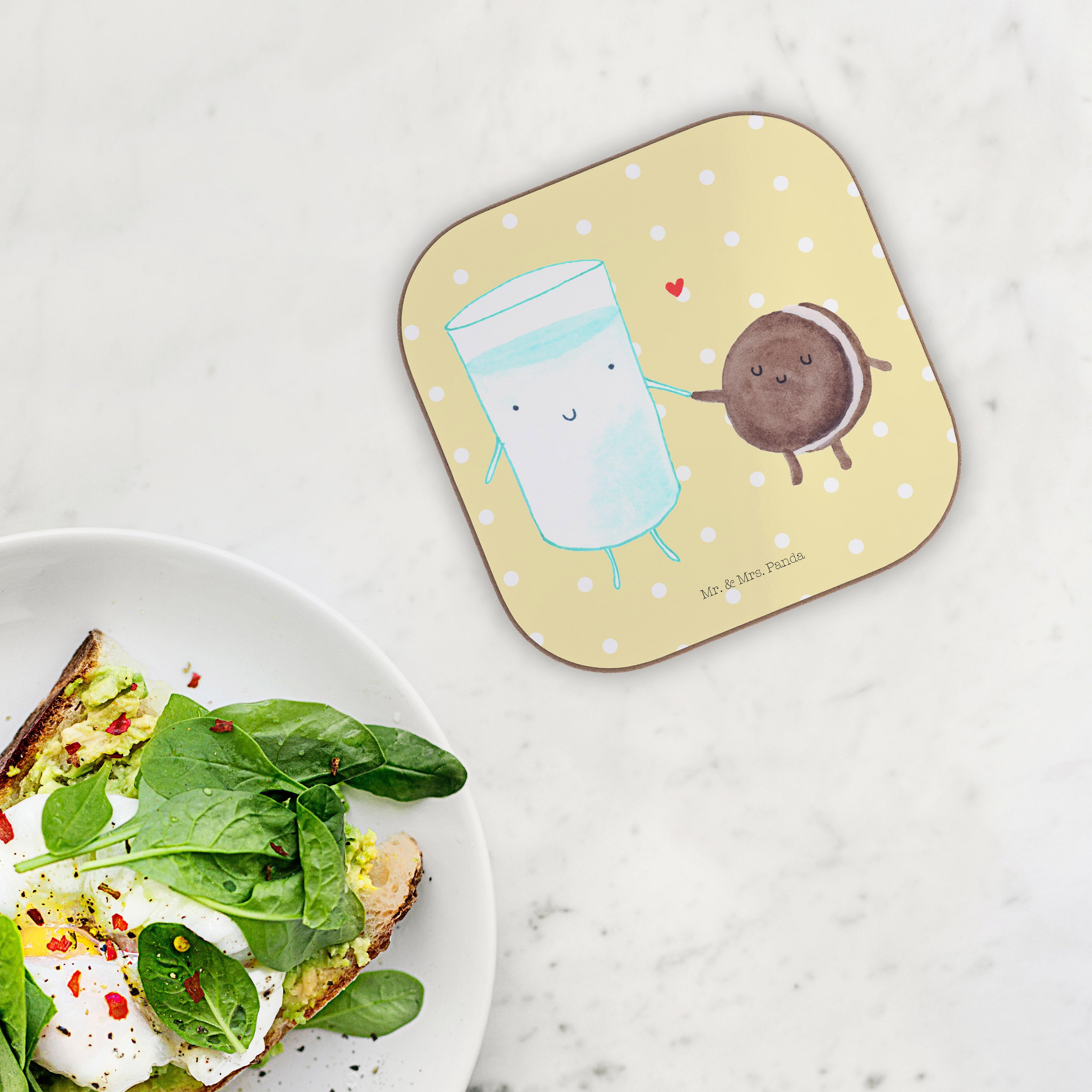 Quadratische Untersetzer Milch & Keks - mit Spruch - Gelb Pastell