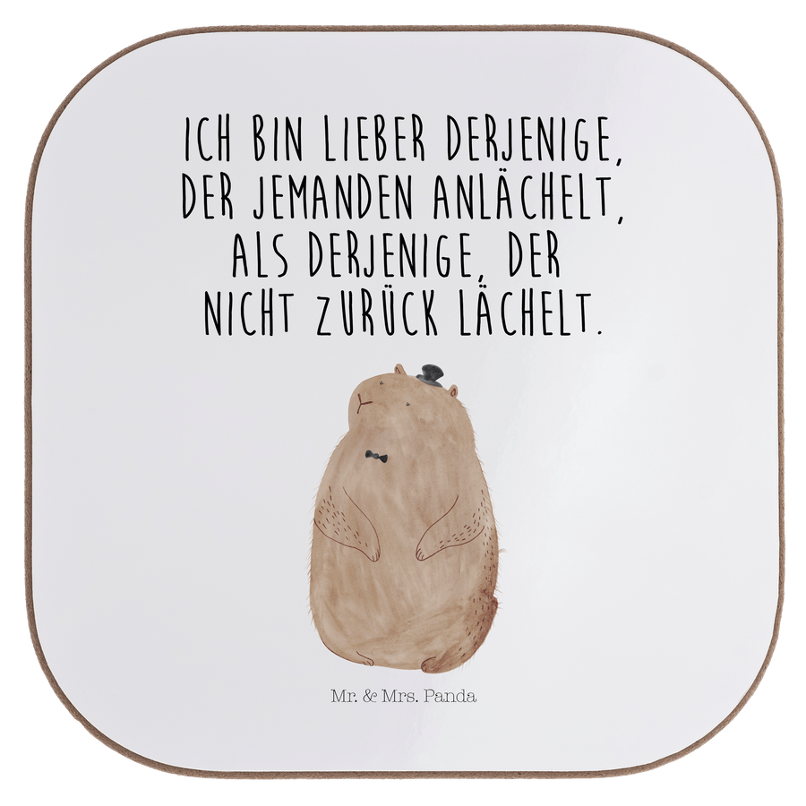 Quadratische Untersetzer Murmeltier - mit Spruch