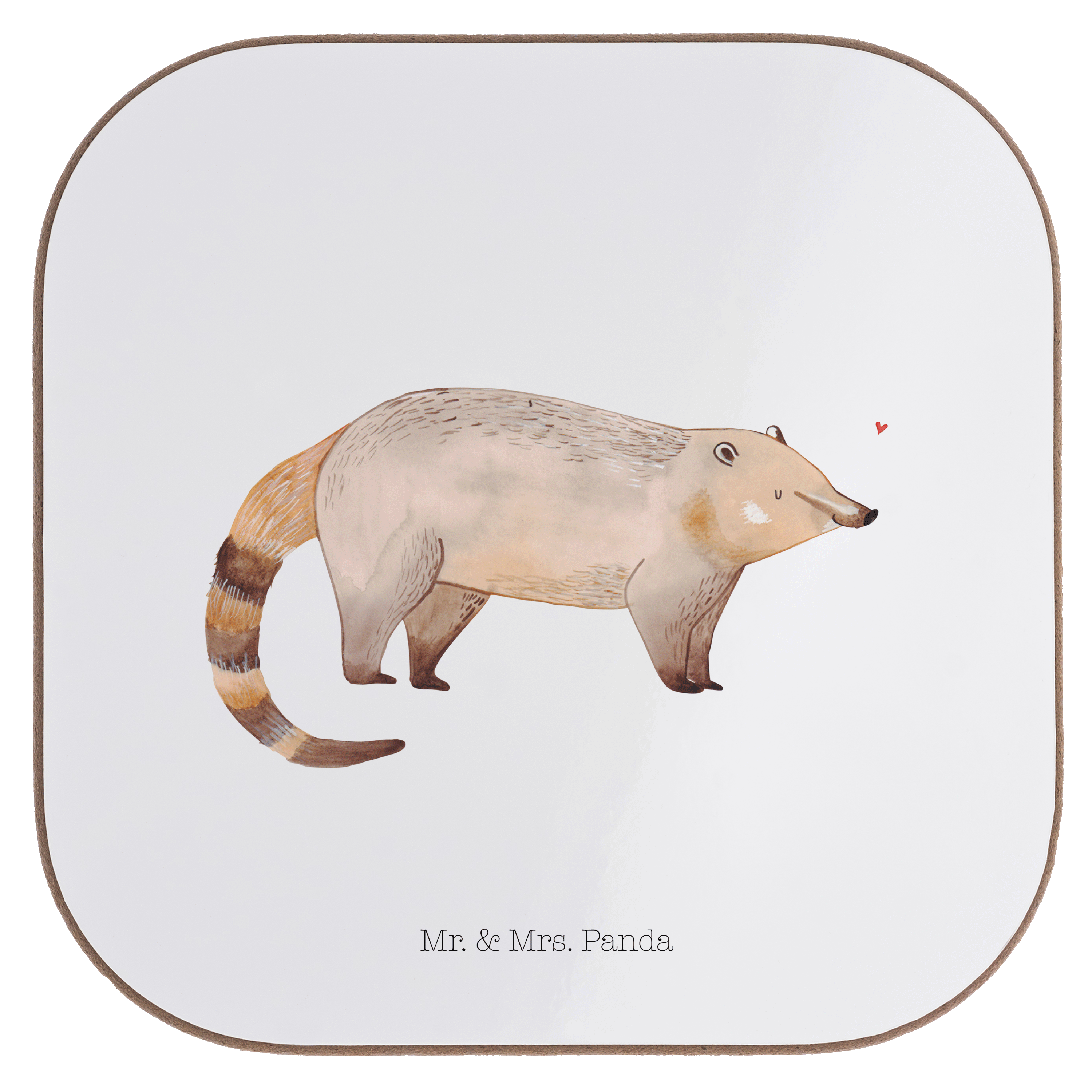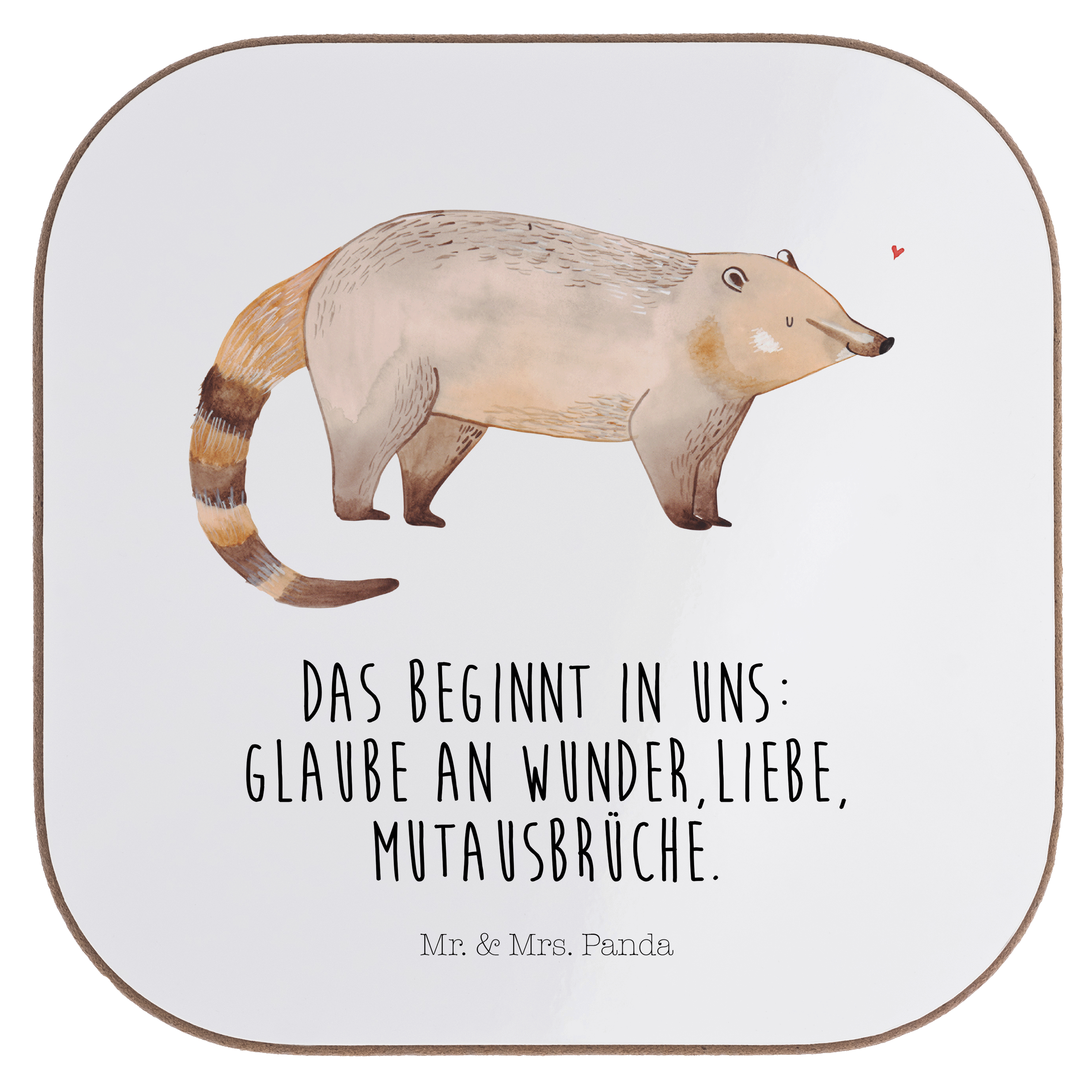Quadratische Untersetzer Nasenbaer - mit Spruch