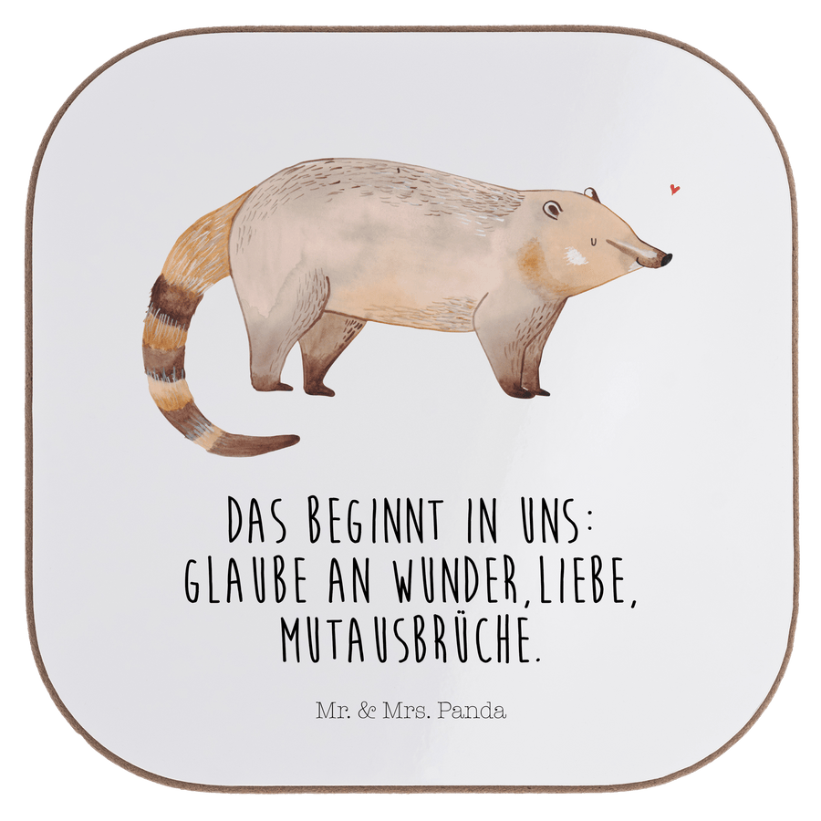 Quadratische Untersetzer Nasenbär - mit Spruch