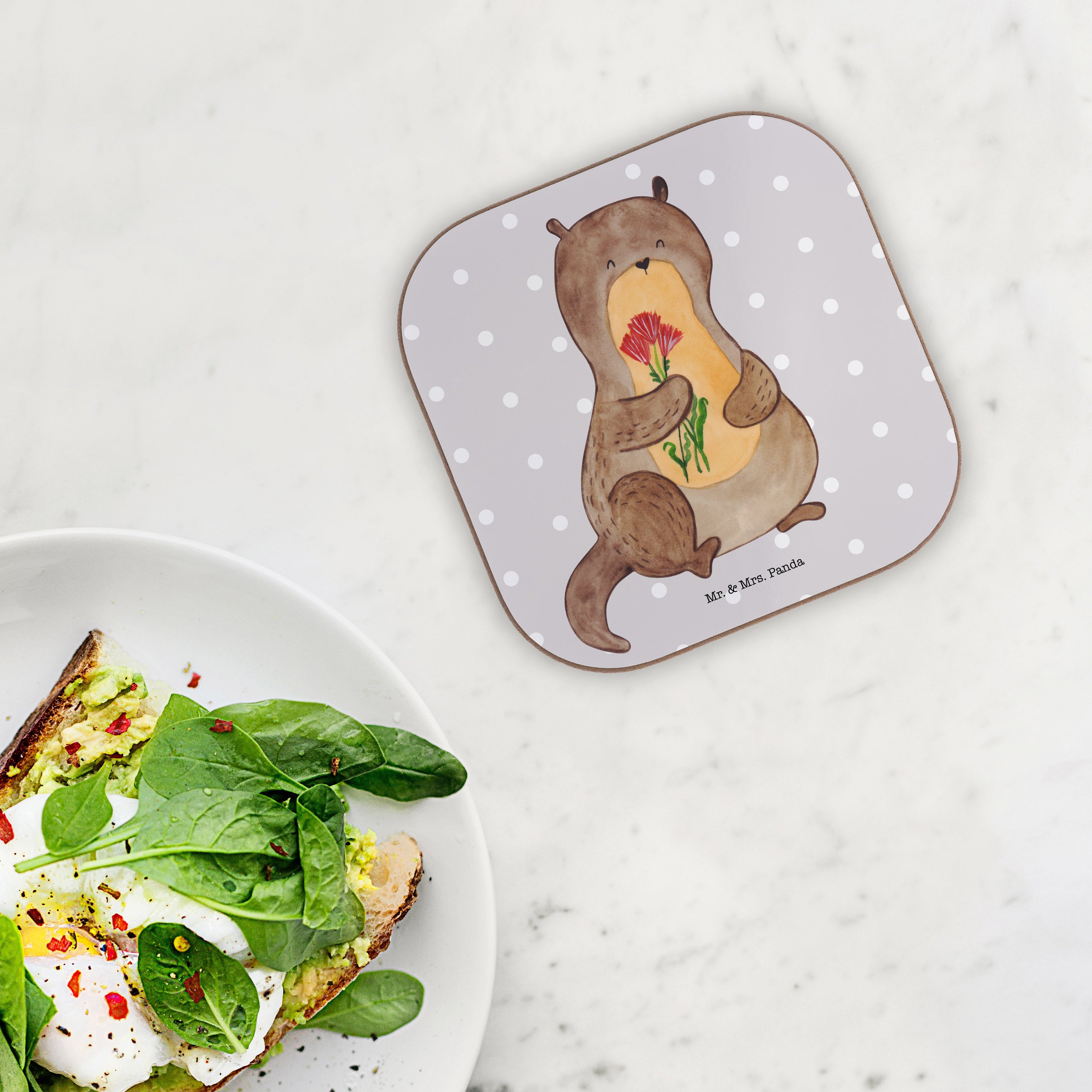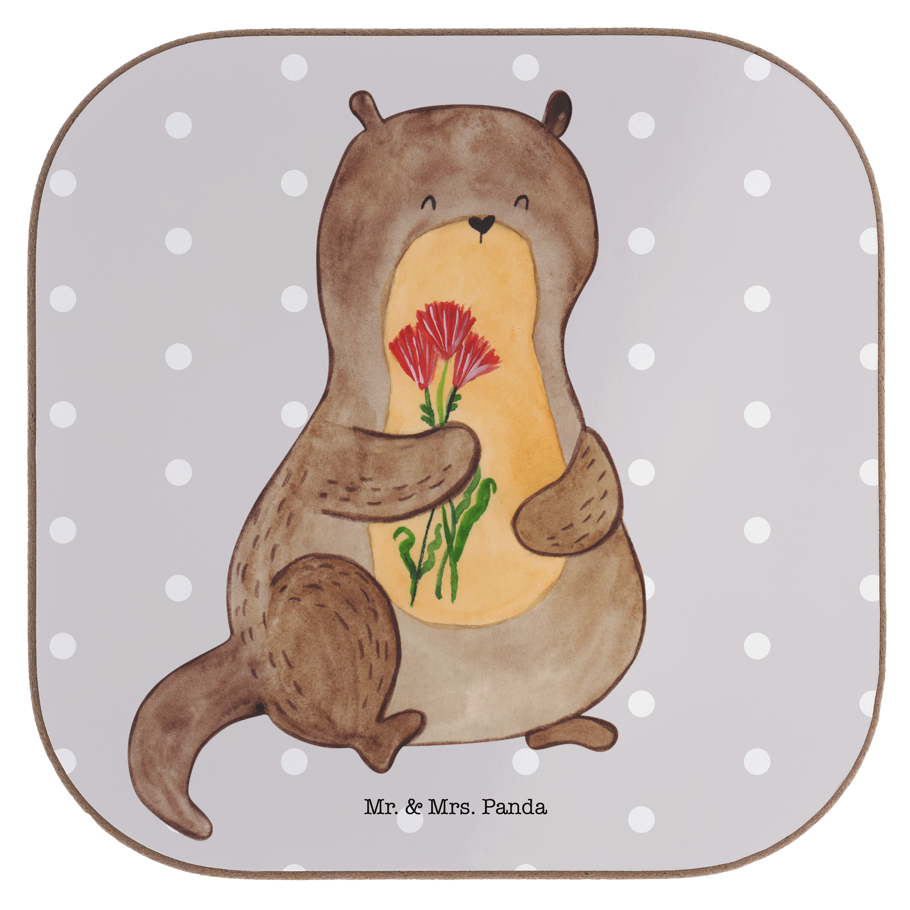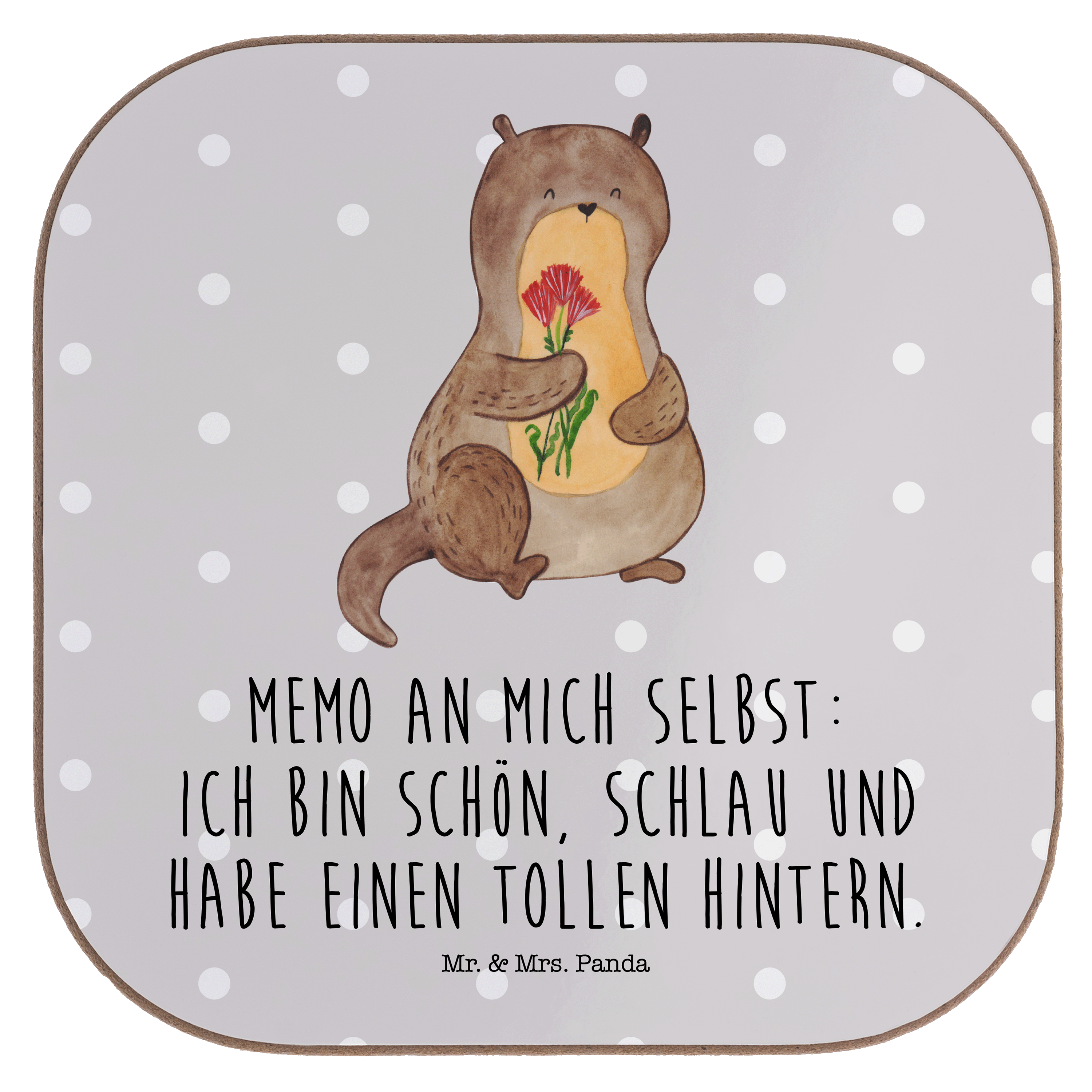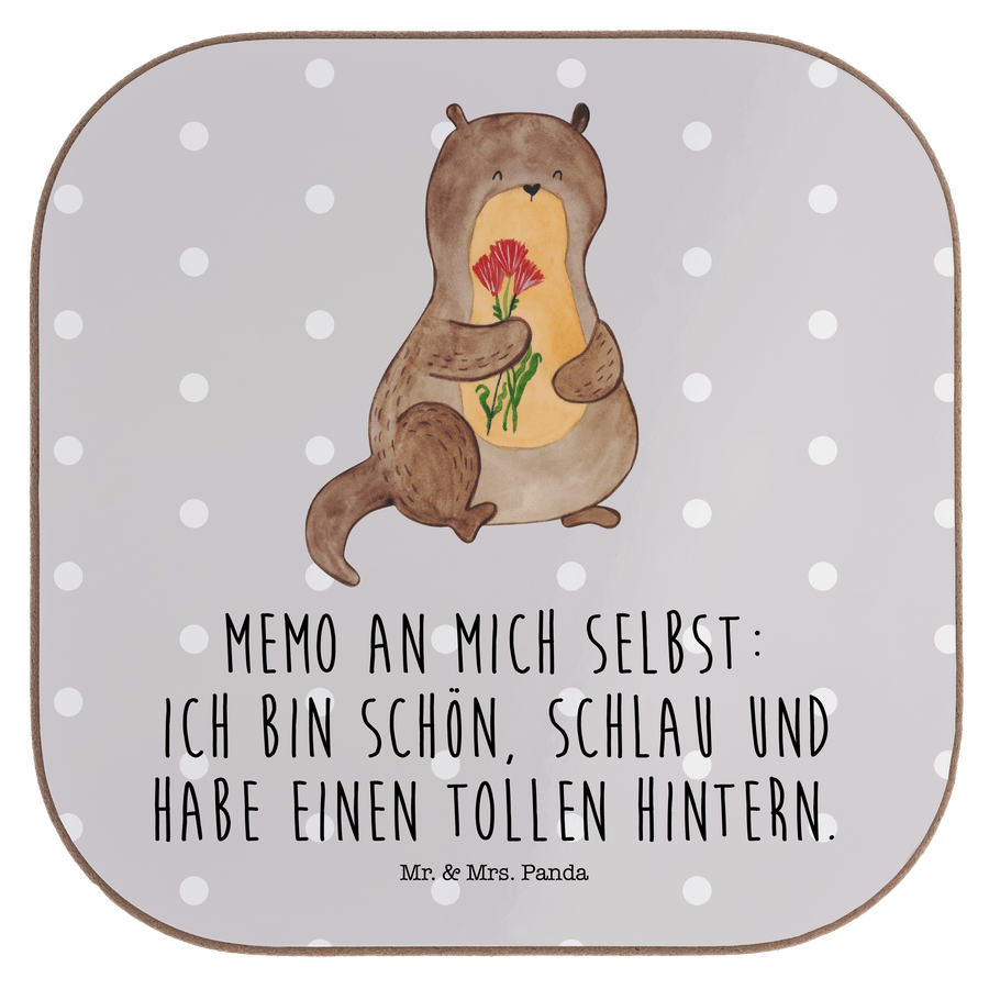 Quadratische Untersetzer Otter Blumenstrauß - mit Spruch - Grau Pastell