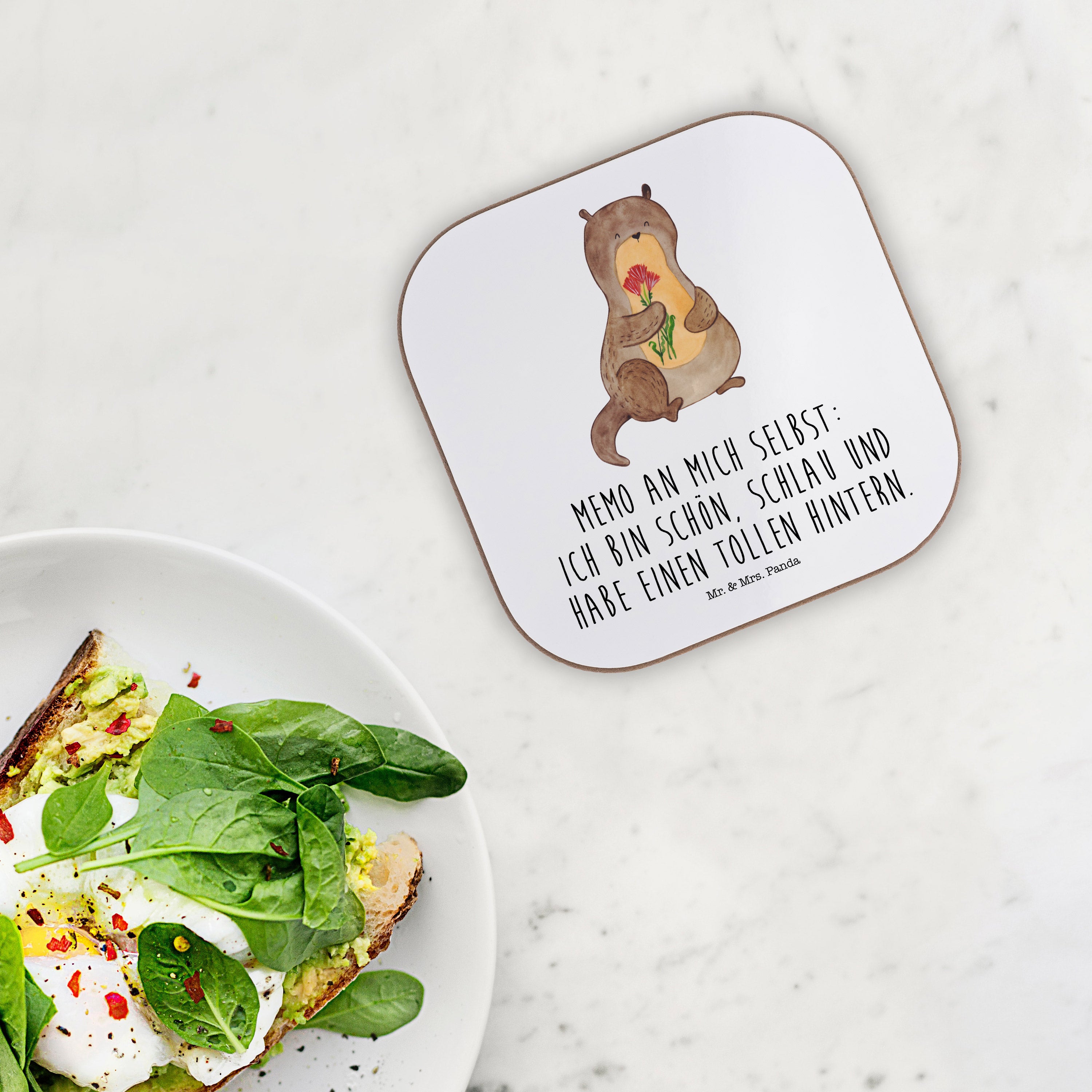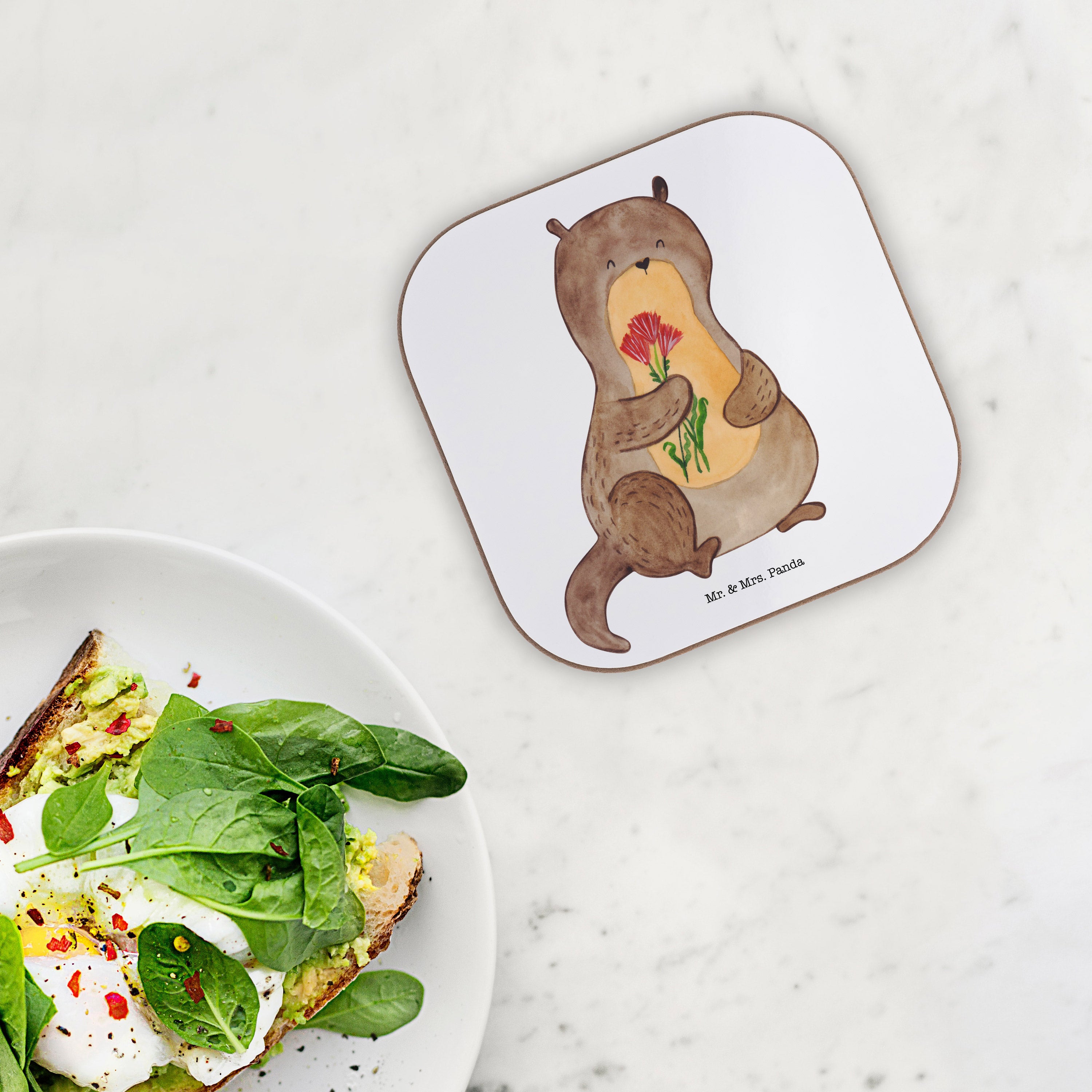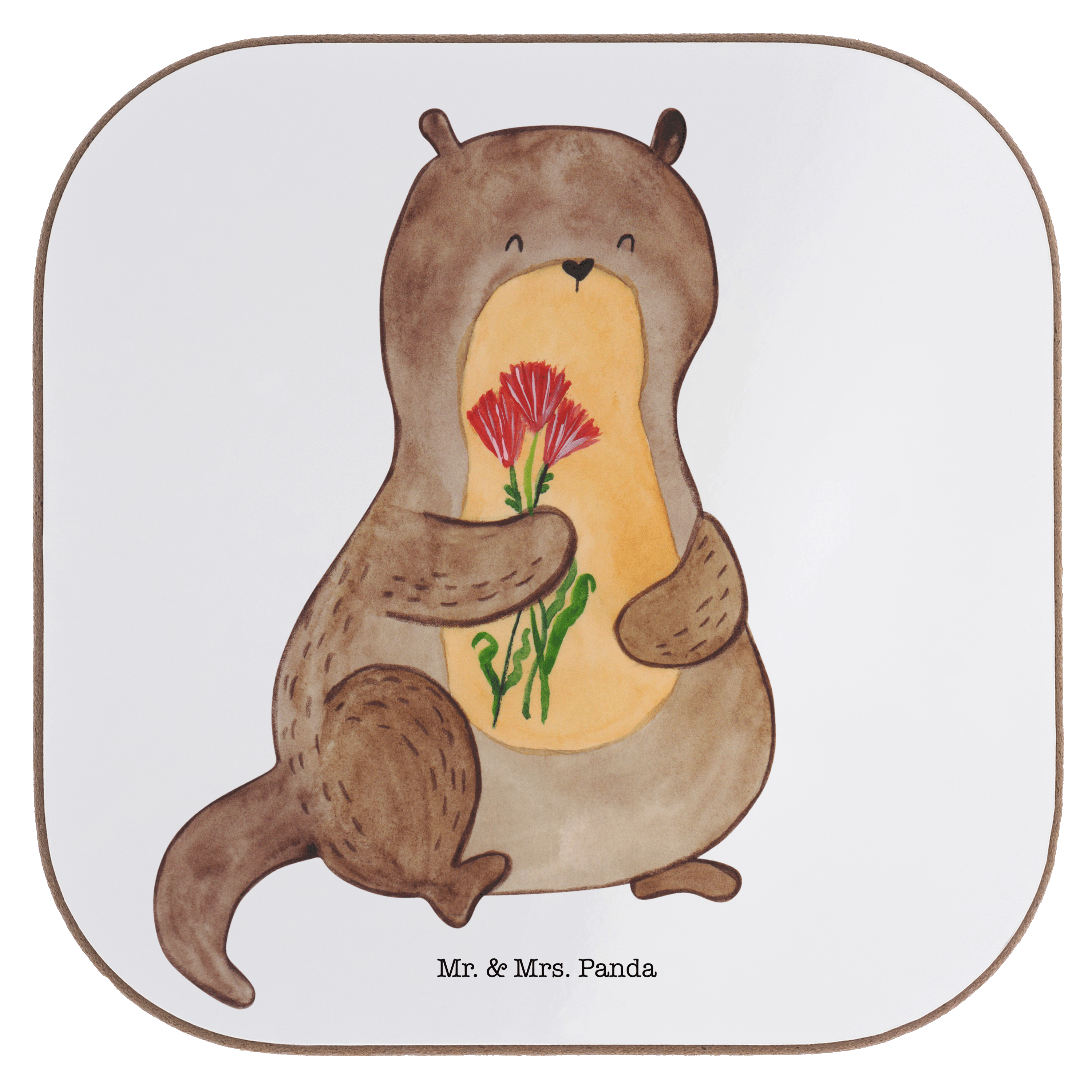 Quadratische Untersetzer Otter Blumenstrauß - mit Spruch - Grau Pastell
