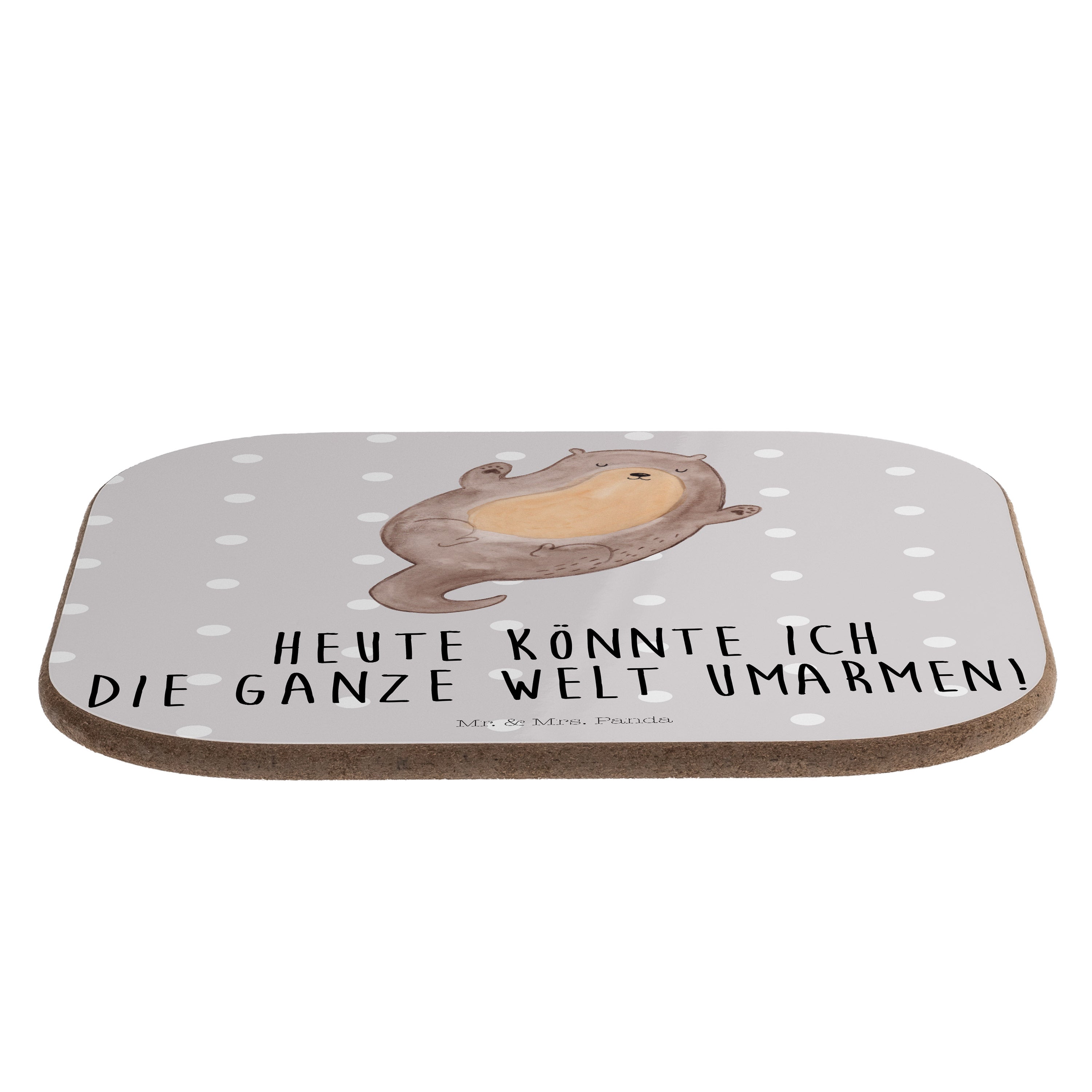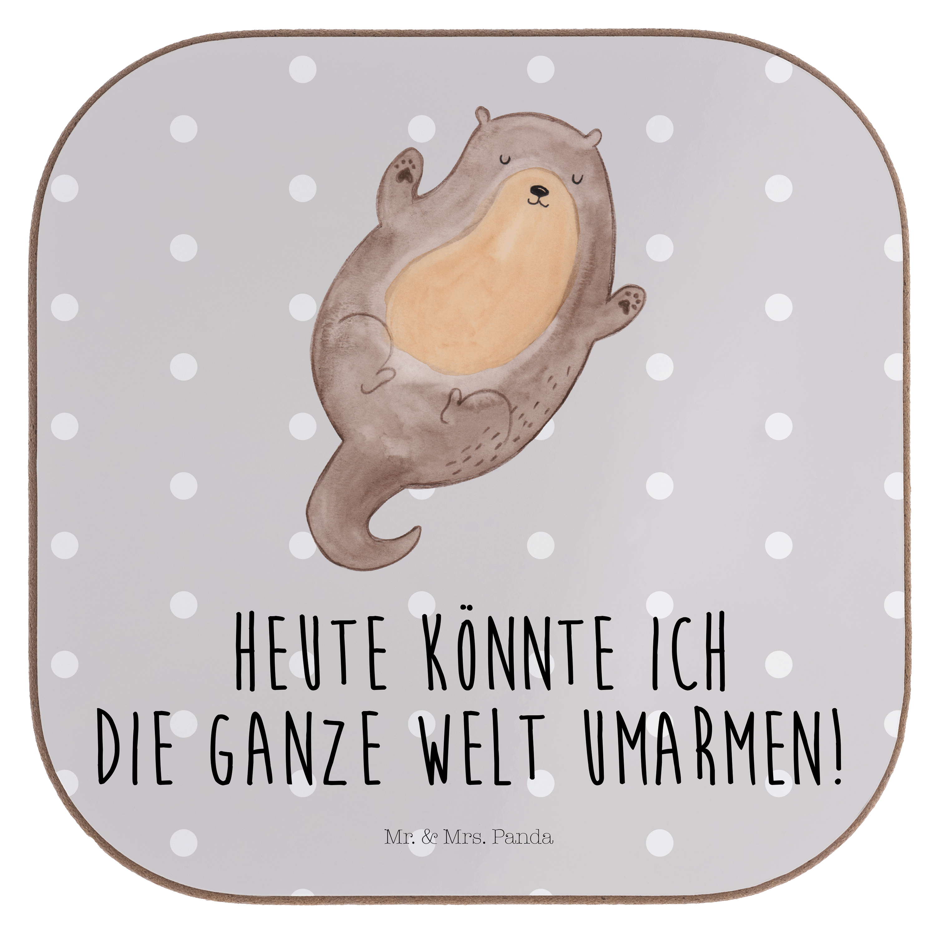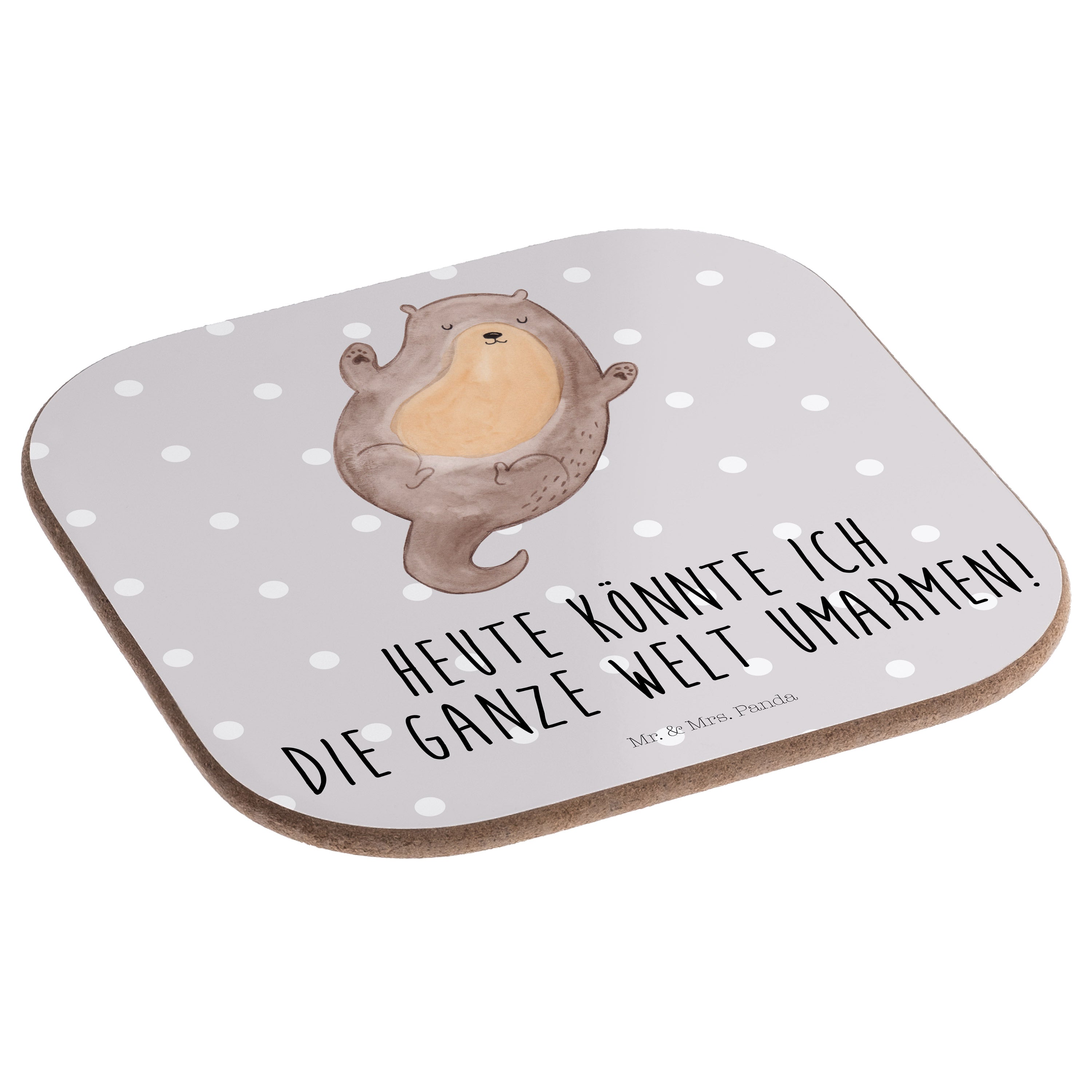 Quadratische Untersetzer Otter Umarmen - Grau Pastell - mit Spruch