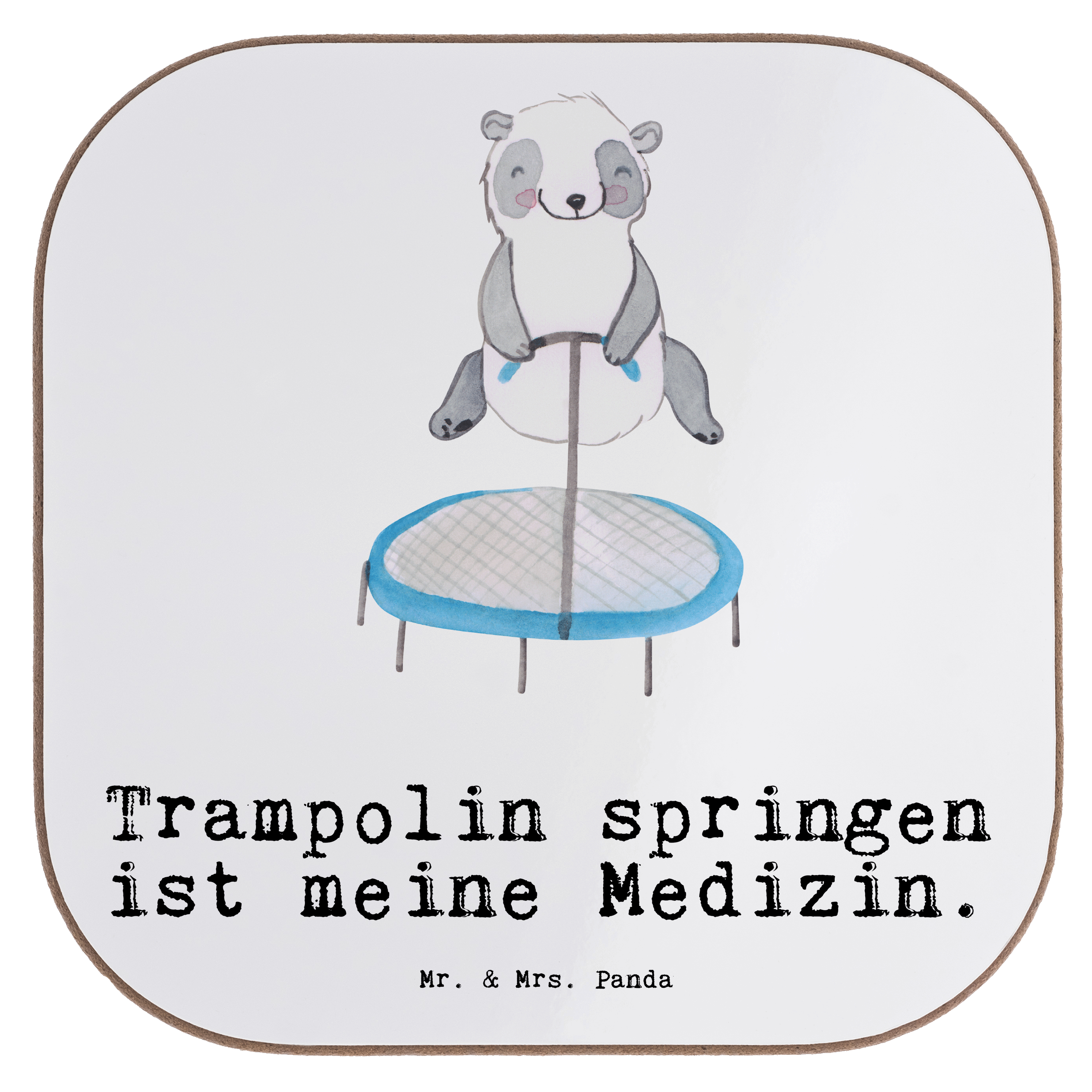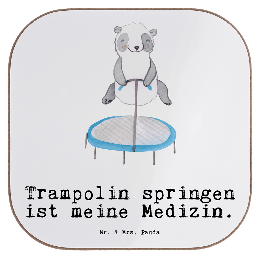 Quadratische Untersetzer Panda Trampolin springen Medizin Bierdeckel, Glasuntersetzer, Untersetzer Gläser, Getränkeuntersetzer, Geschenk, Sport, Sportart, Hobby, Schenken, Danke, Dankeschön, Auszeichnung, Gewinn, Sportler, Trampolin springen, Trampolin Springen, Trampolin Turnen, Fitnessstudio, Trampolin-Übungen, Trampolin-Workout