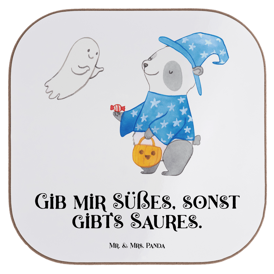 Quadratische Untersetzer Panda Zauberer - mit Spruch