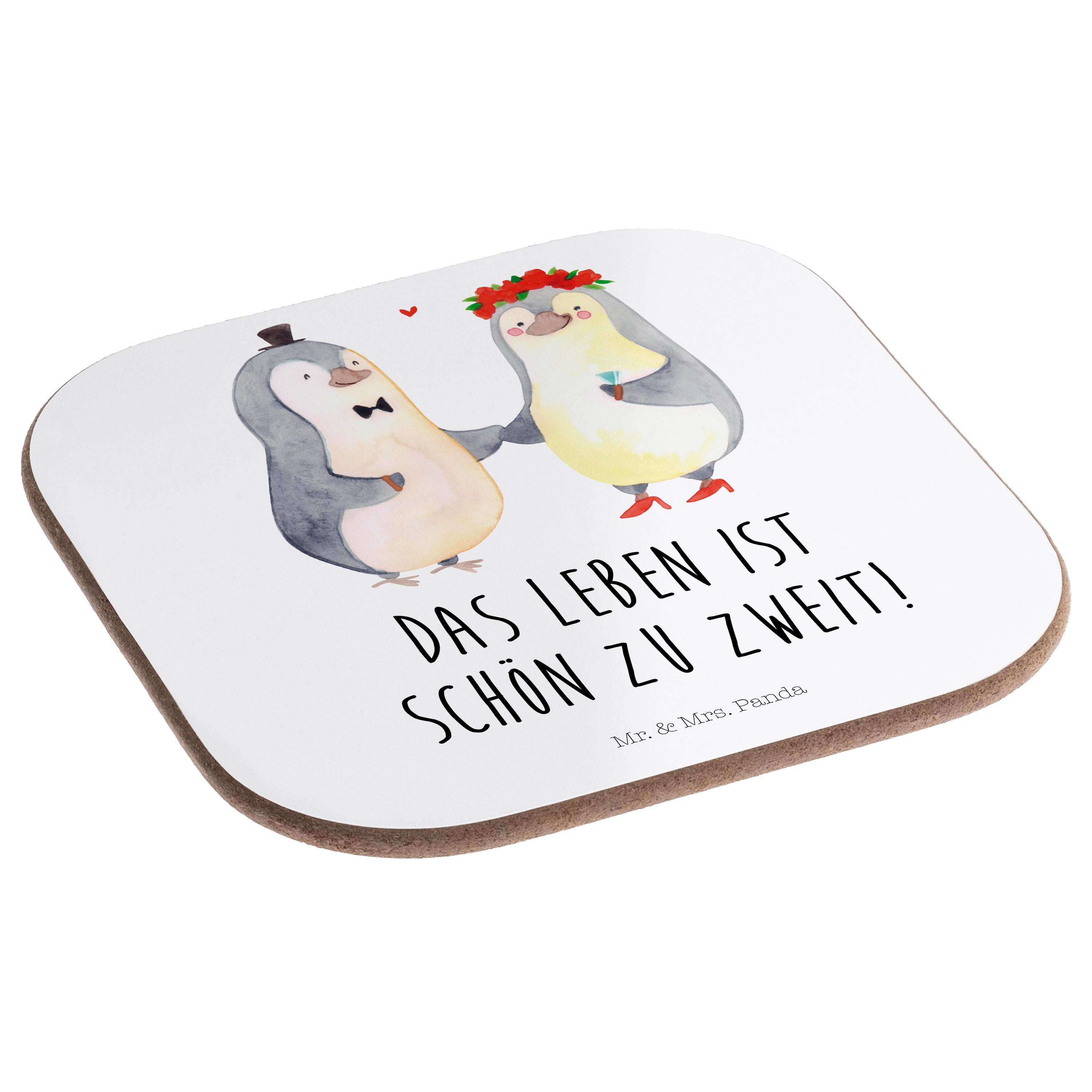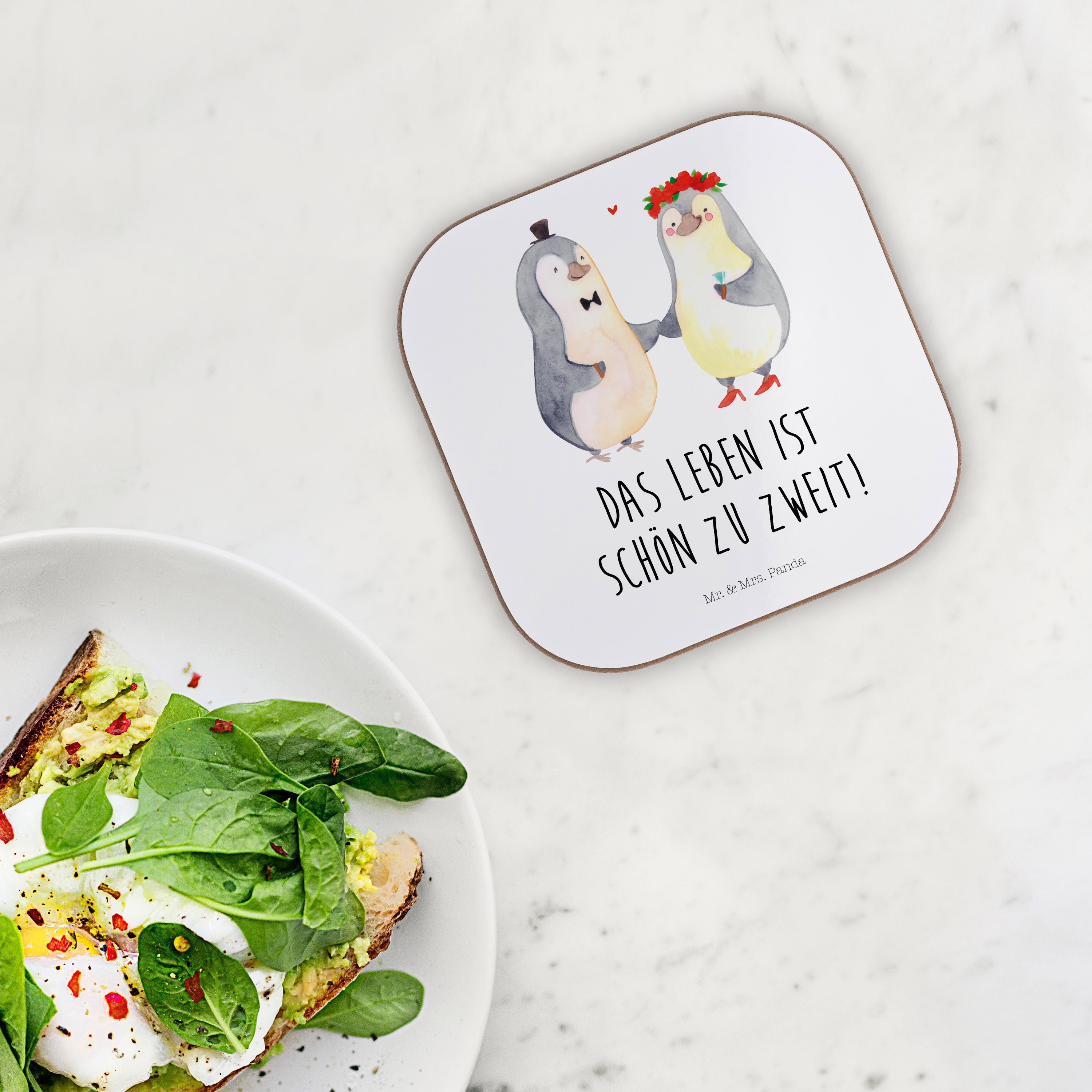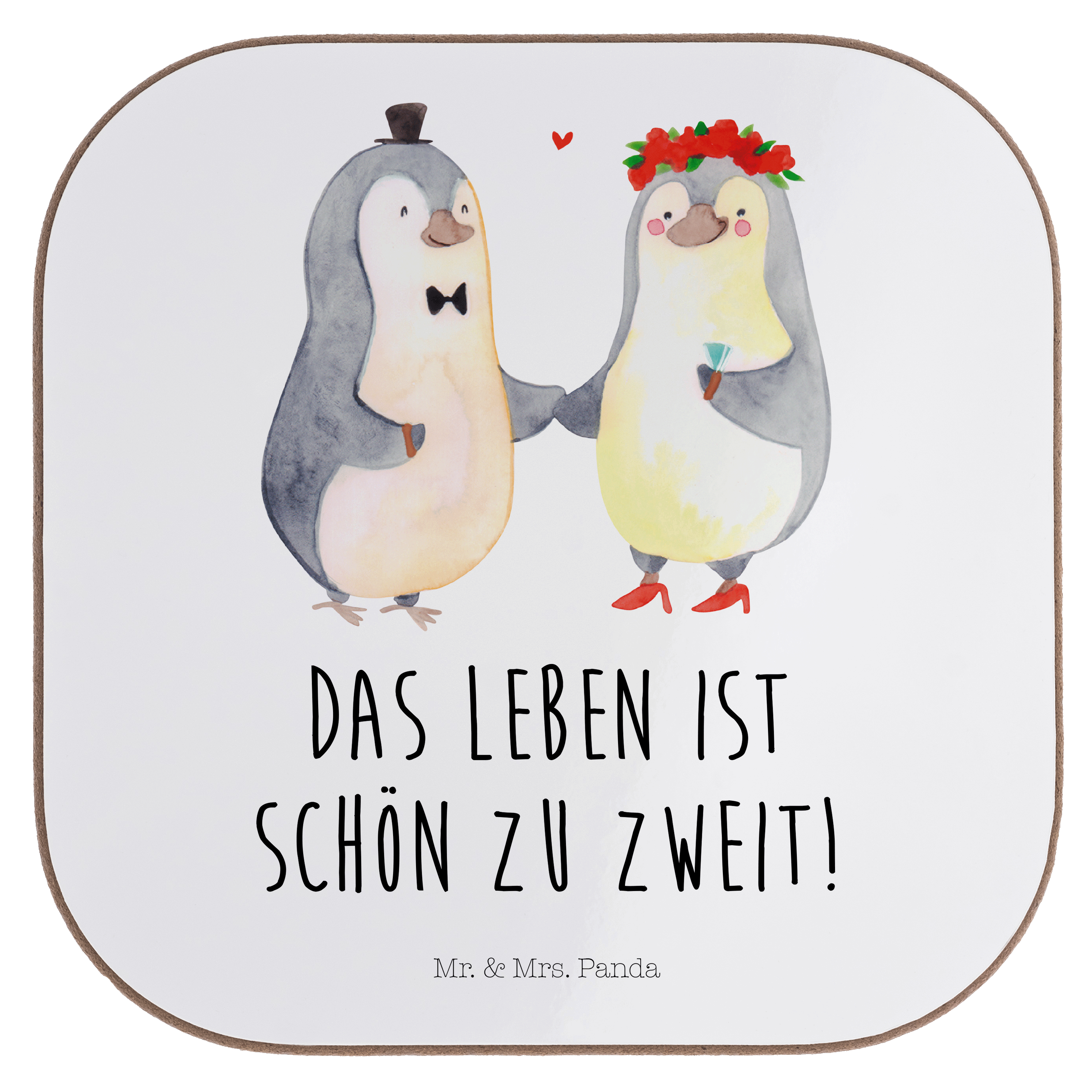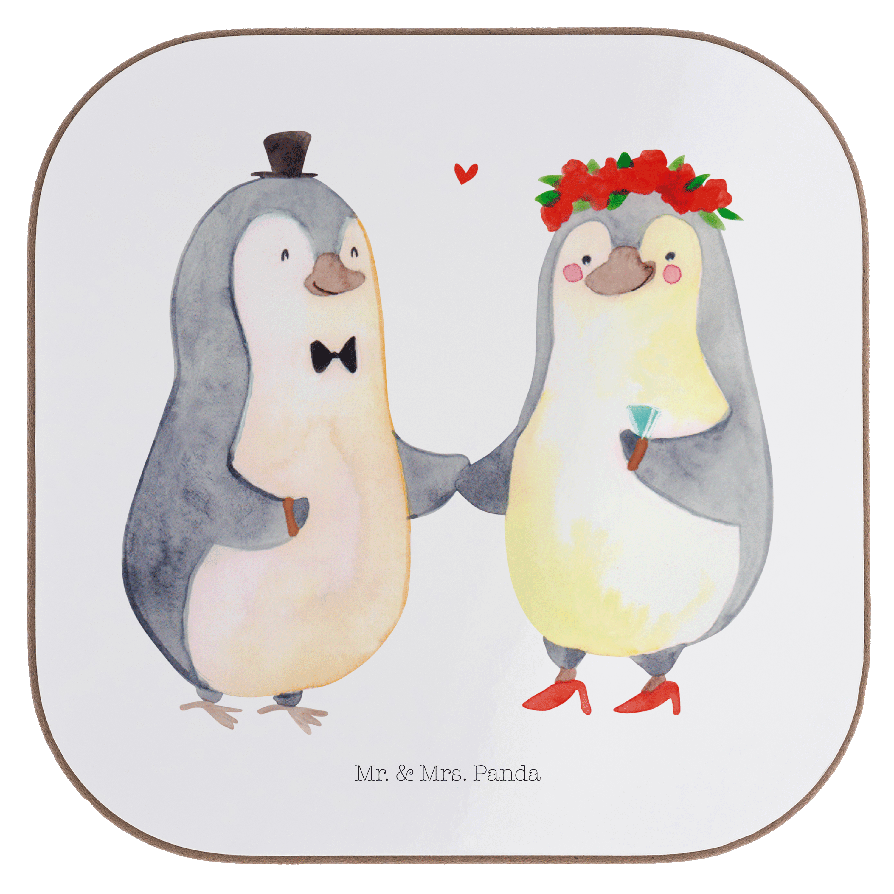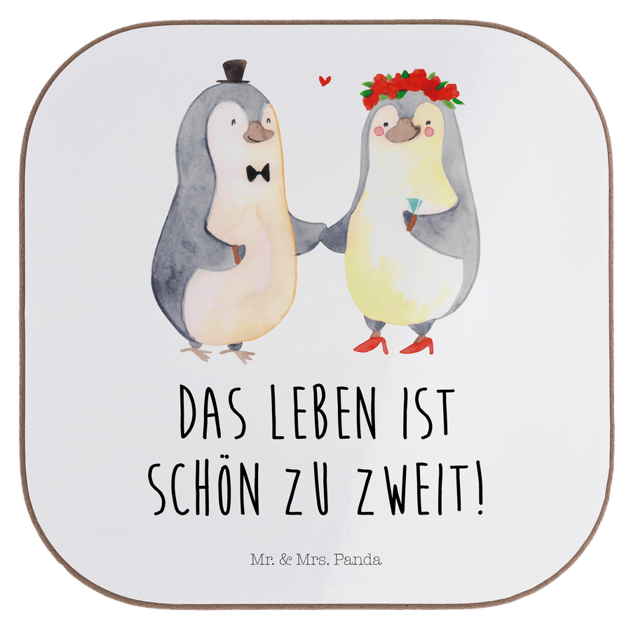Quadratische Untersetzer Pinguin Heirat - mit Spruch