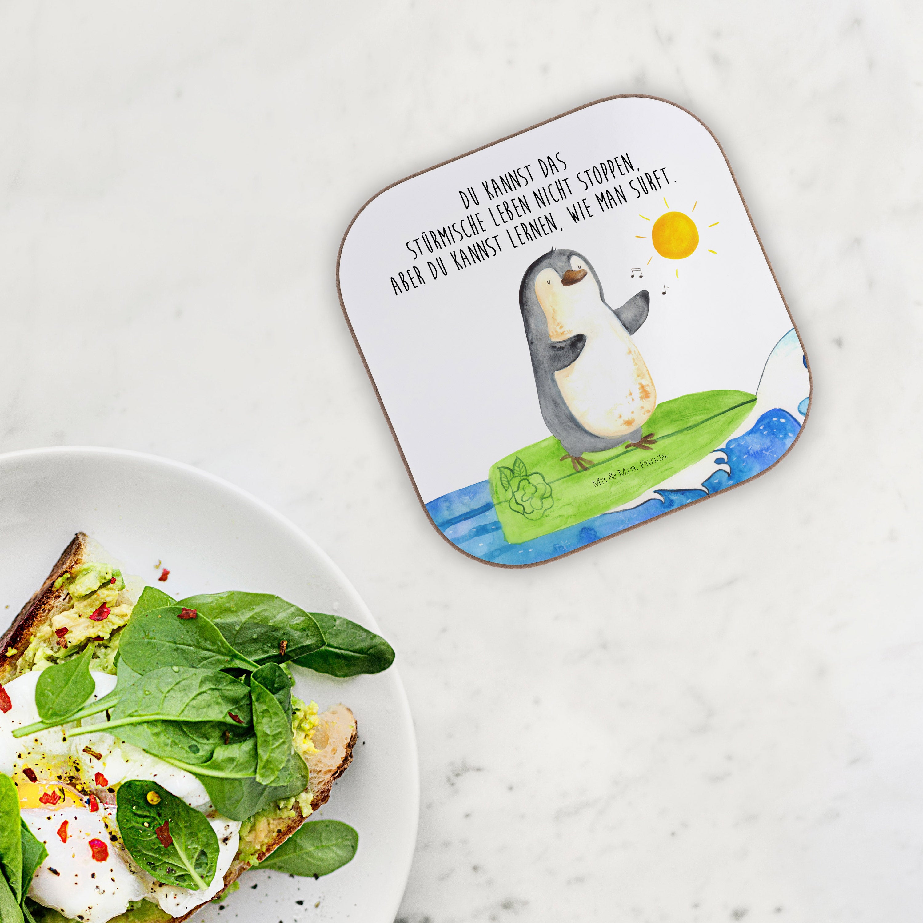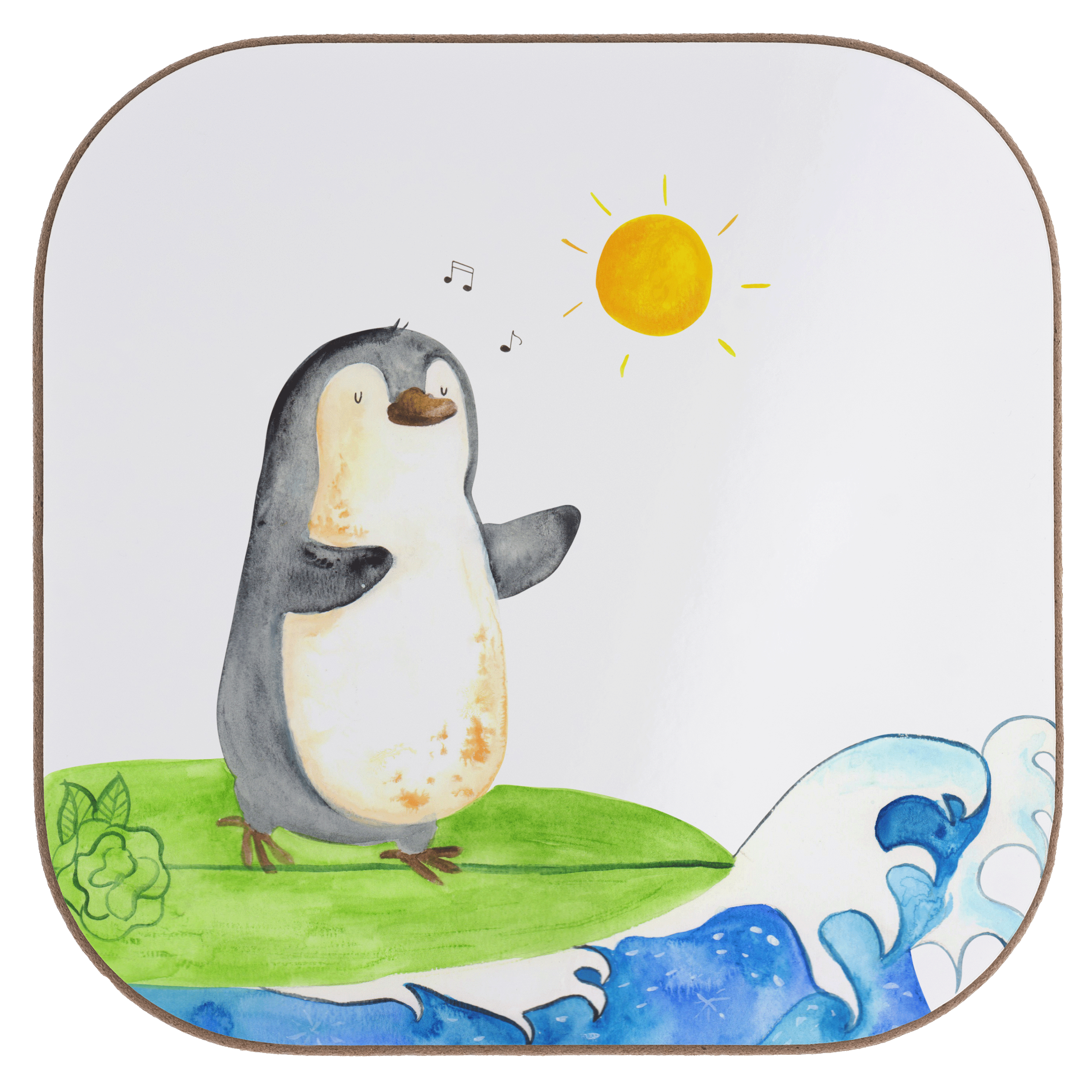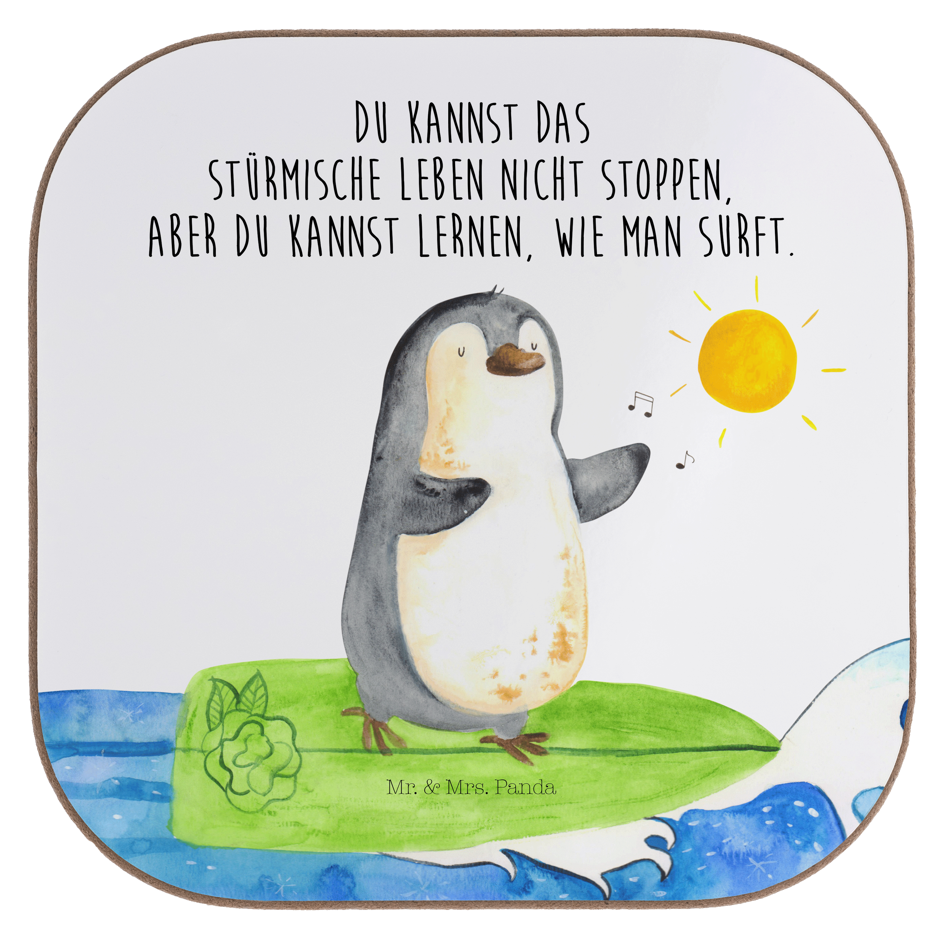Quadratische Untersetzer Pinguin Surfer - mit Spruch - Eisblau