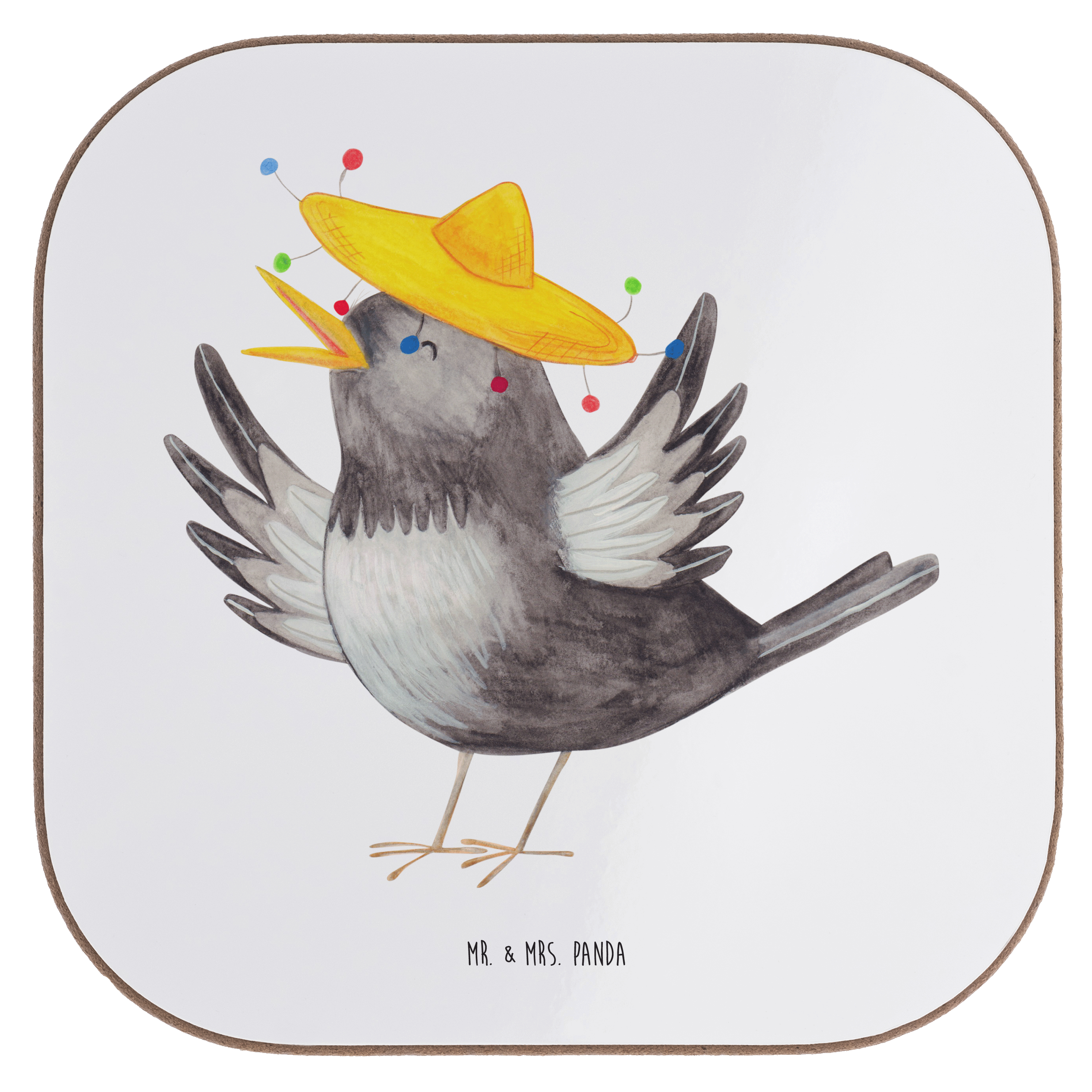 Quadratische Untersetzer Rabe mit Sombrero Bierdeckel, Glasuntersetzer, Untersetzer Gläser, Getränkeuntersetzer, Tiermotive, Gute Laune, lustige Sprüche, Tiere, Rabe, Vogel, Vögel, Spruch positiv, fröhlich sein, glücklich sein, Glück Spruch, froh, Elster, Motivation