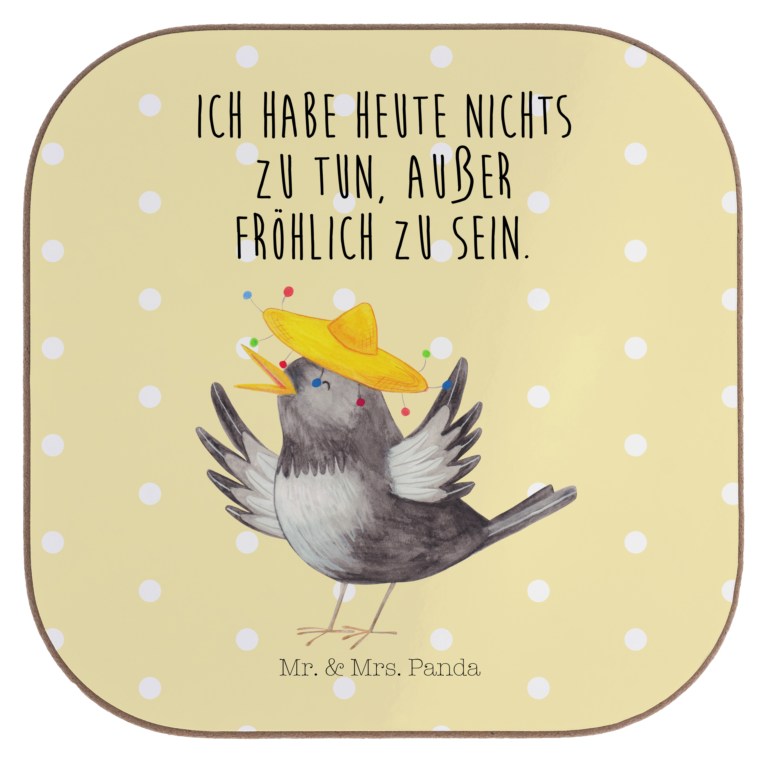 Quadratische Untersetzer Rabe mit Sombrero - mit Spruch - Gelb Pastell