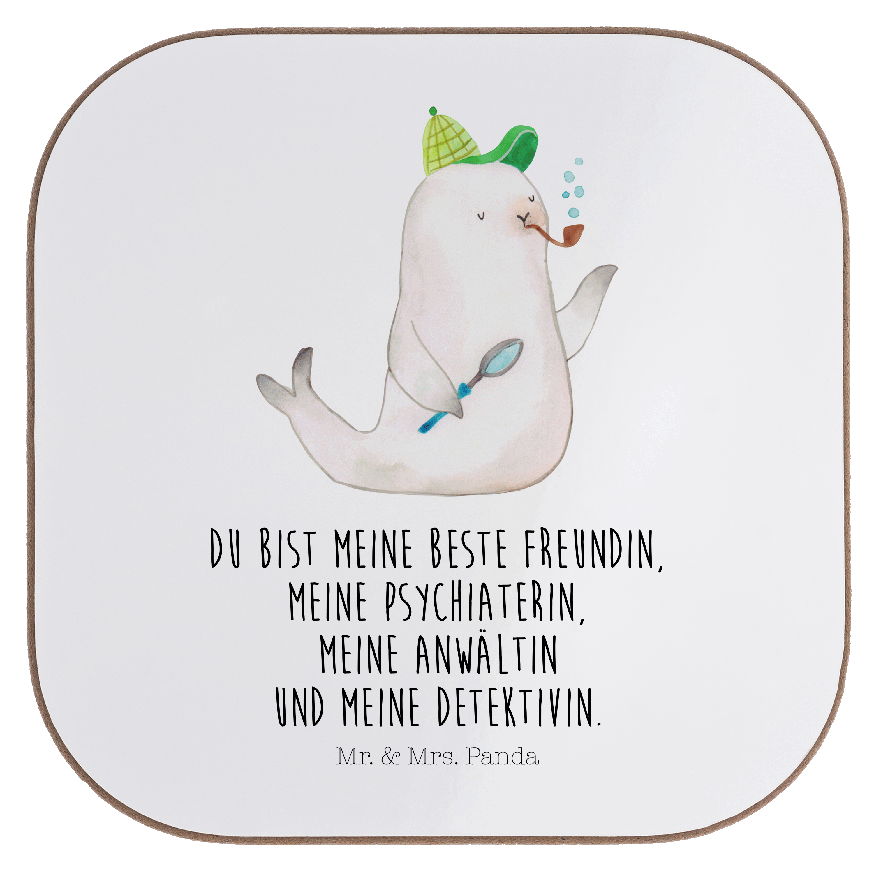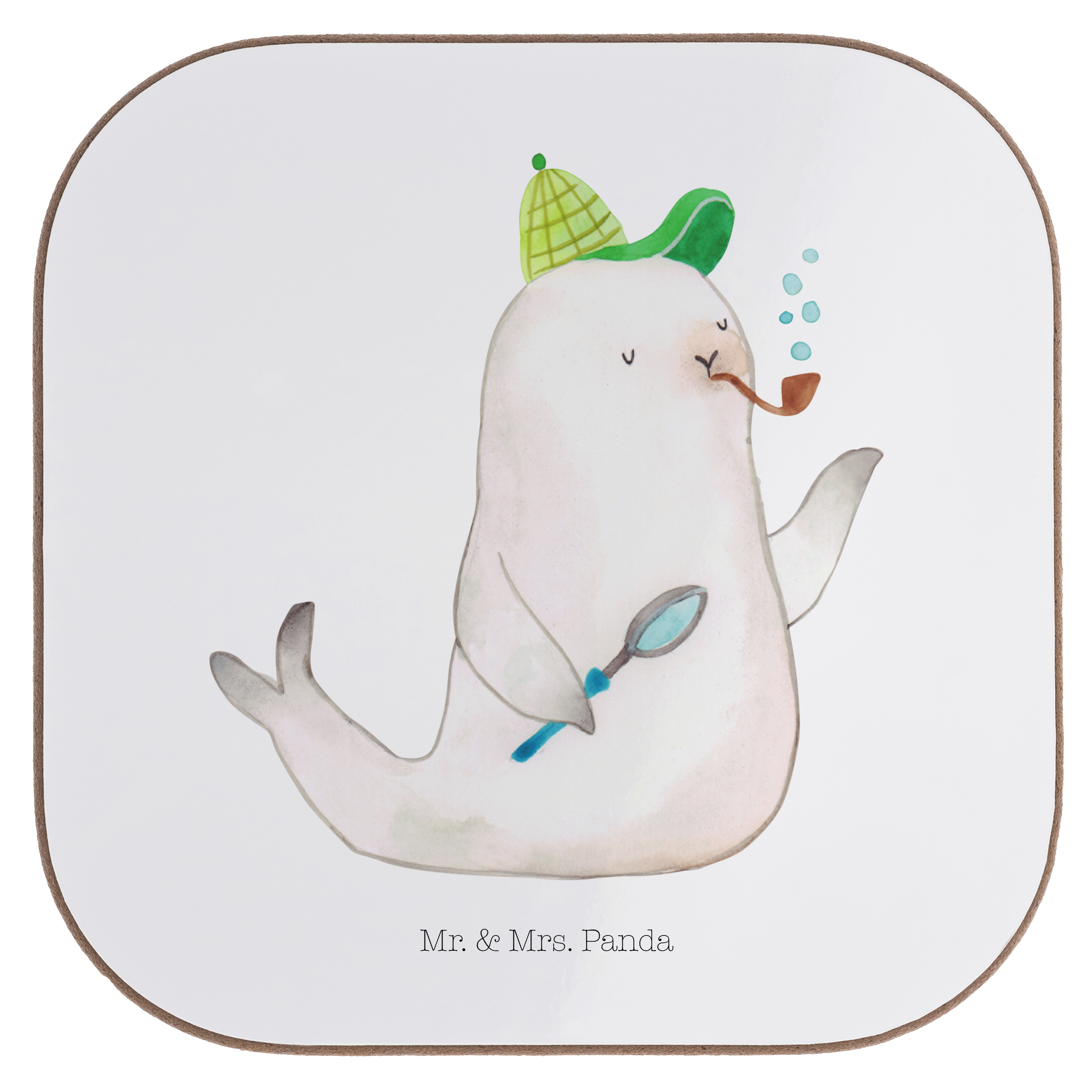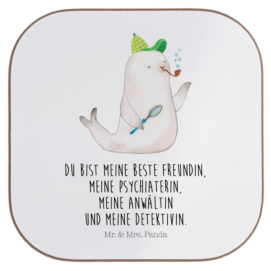 Quadratische Untersetzer Robbe Sherlock Bierdeckel, Glasuntersetzer, Untersetzer Gläser, Getränkeuntersetzer, Tiermotive, Gute Laune, lustige Sprüche, Tiere
