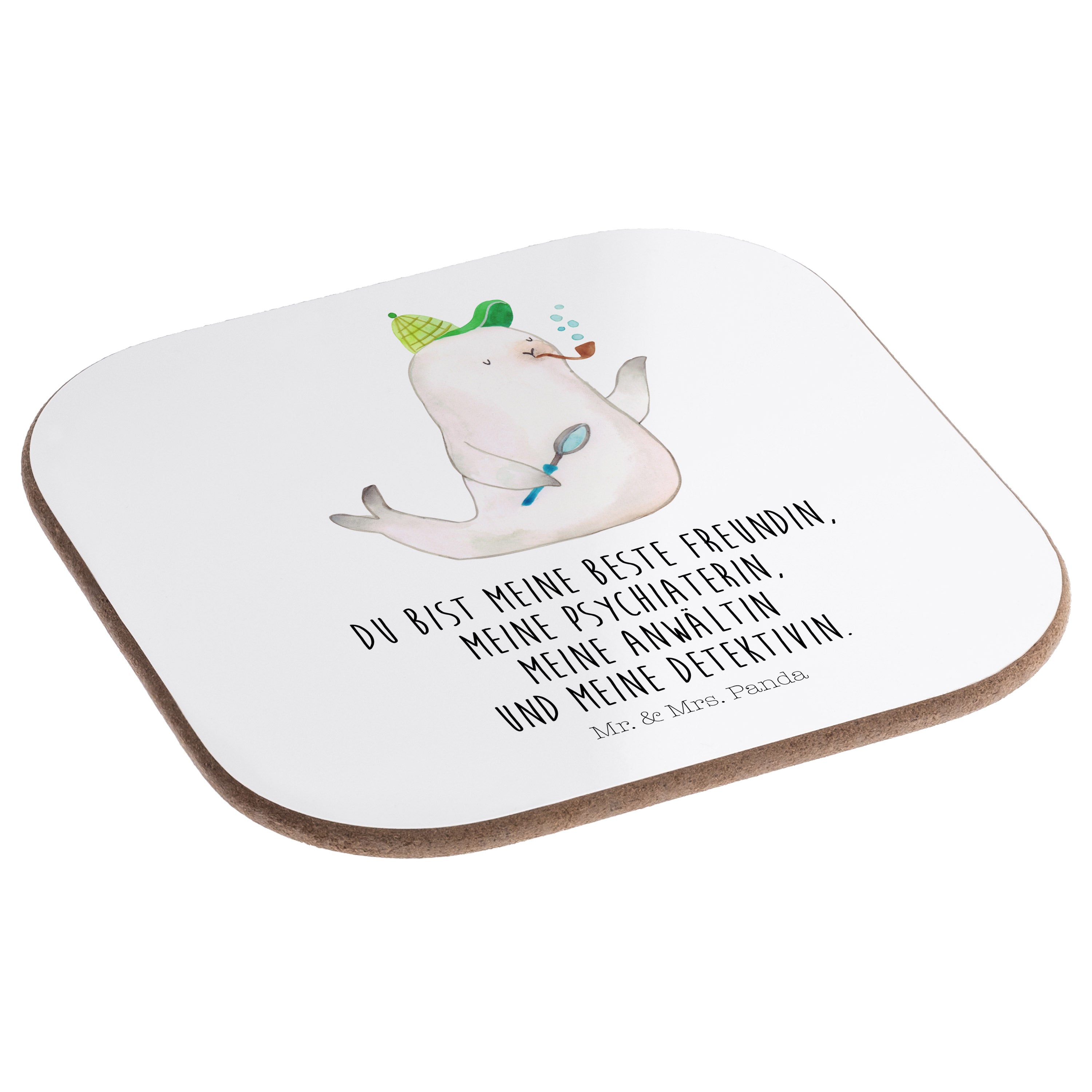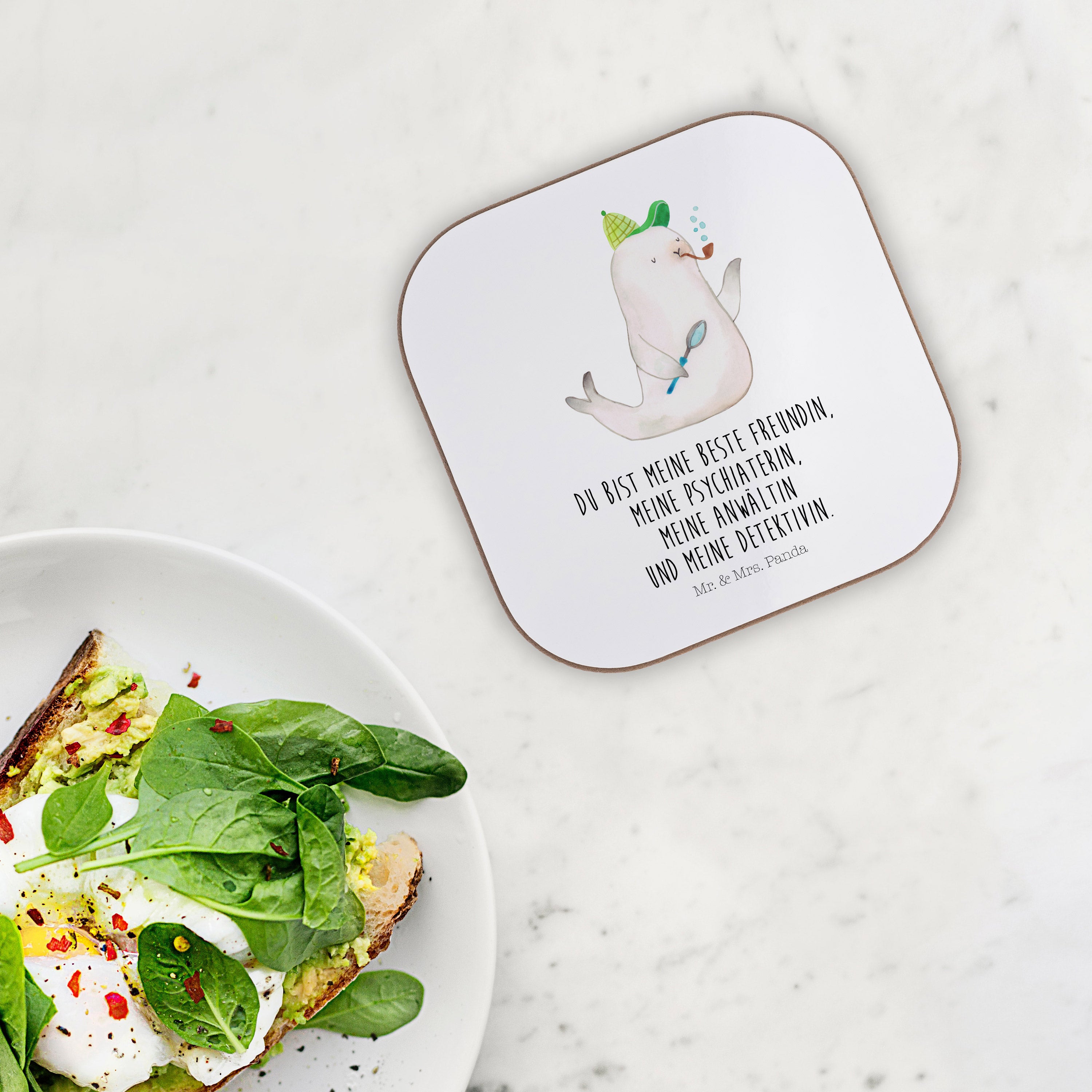 Quadratische Untersetzer Robbe Sherlock - mit Spruch