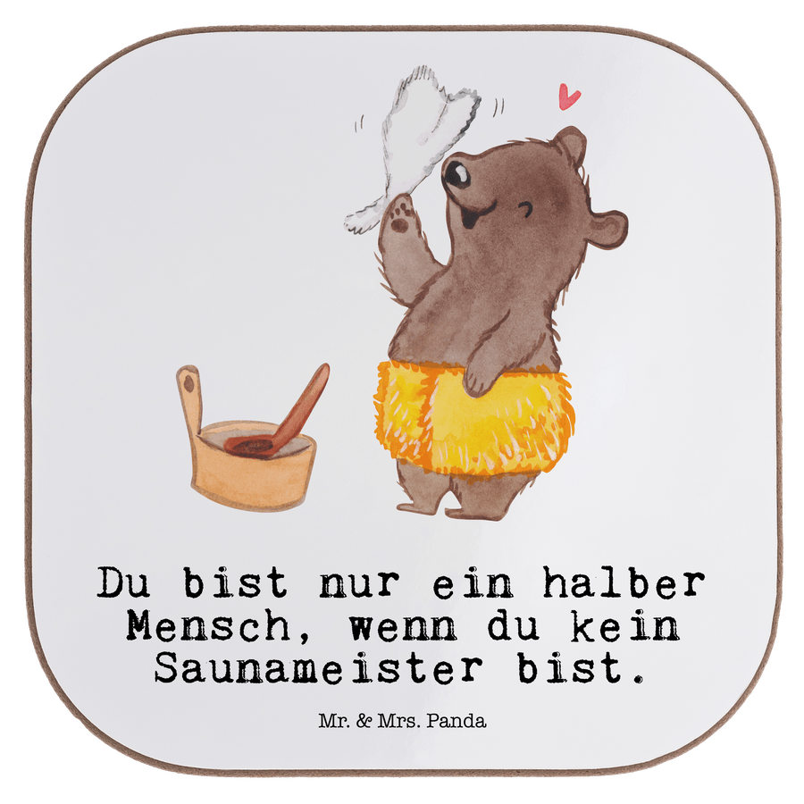 Quadratische Untersetzer Saunameister mit Herz