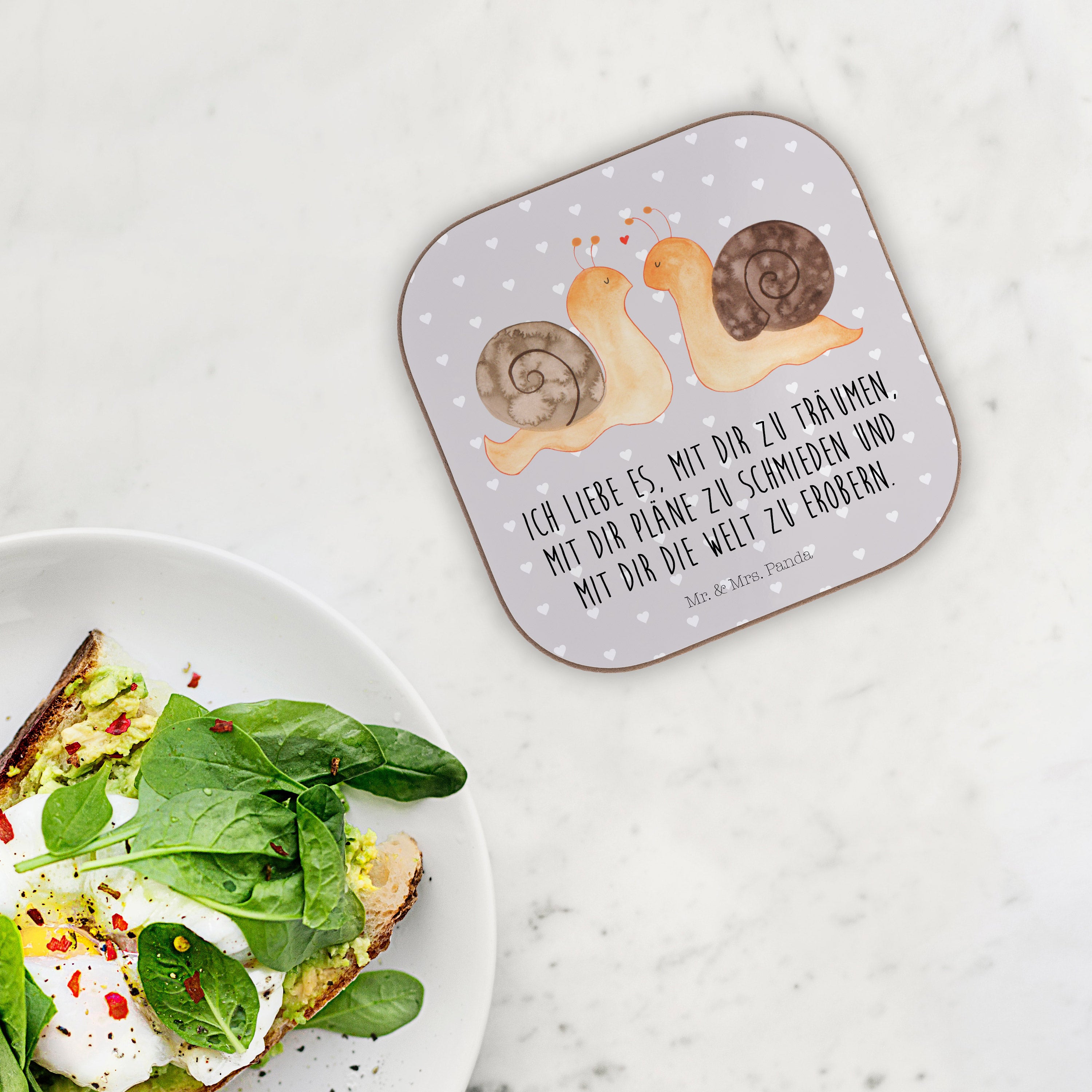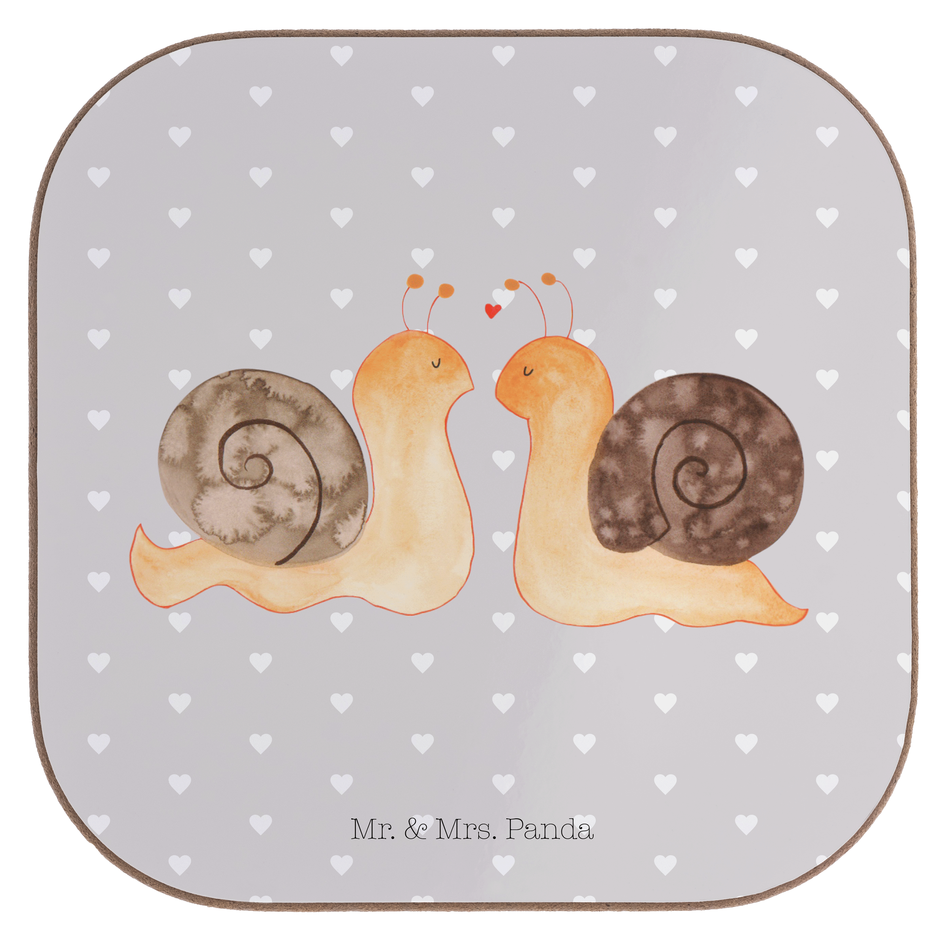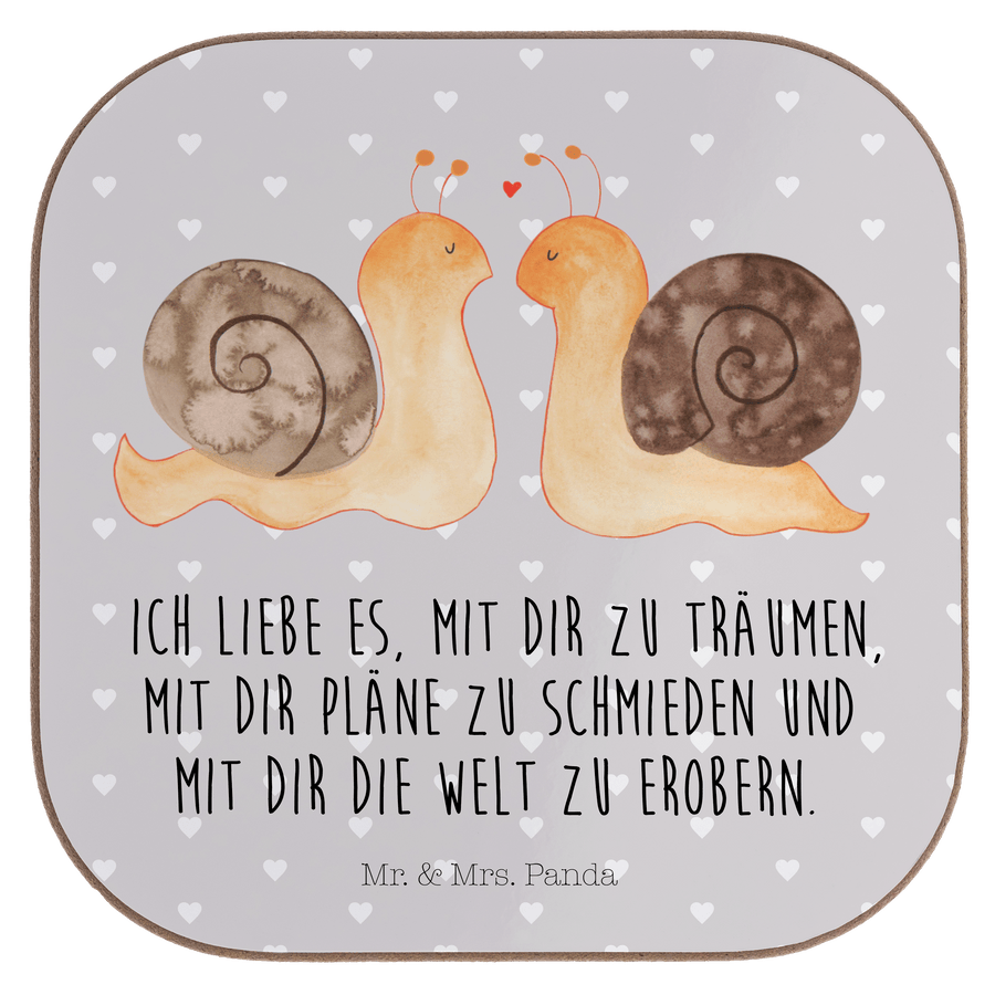 Quadratische Untersetzer Schnecken Liebe - mit Spruch - Grau Pastell