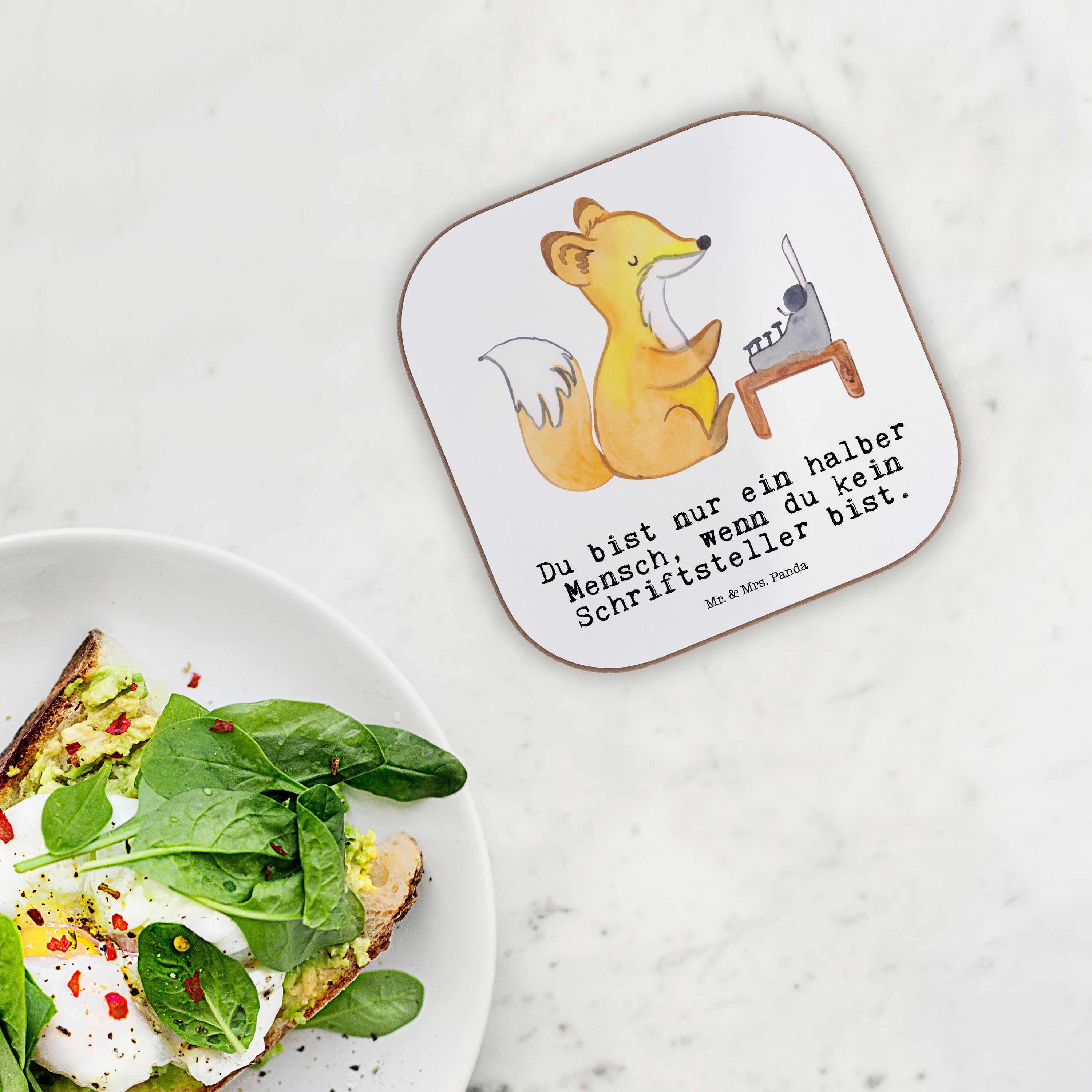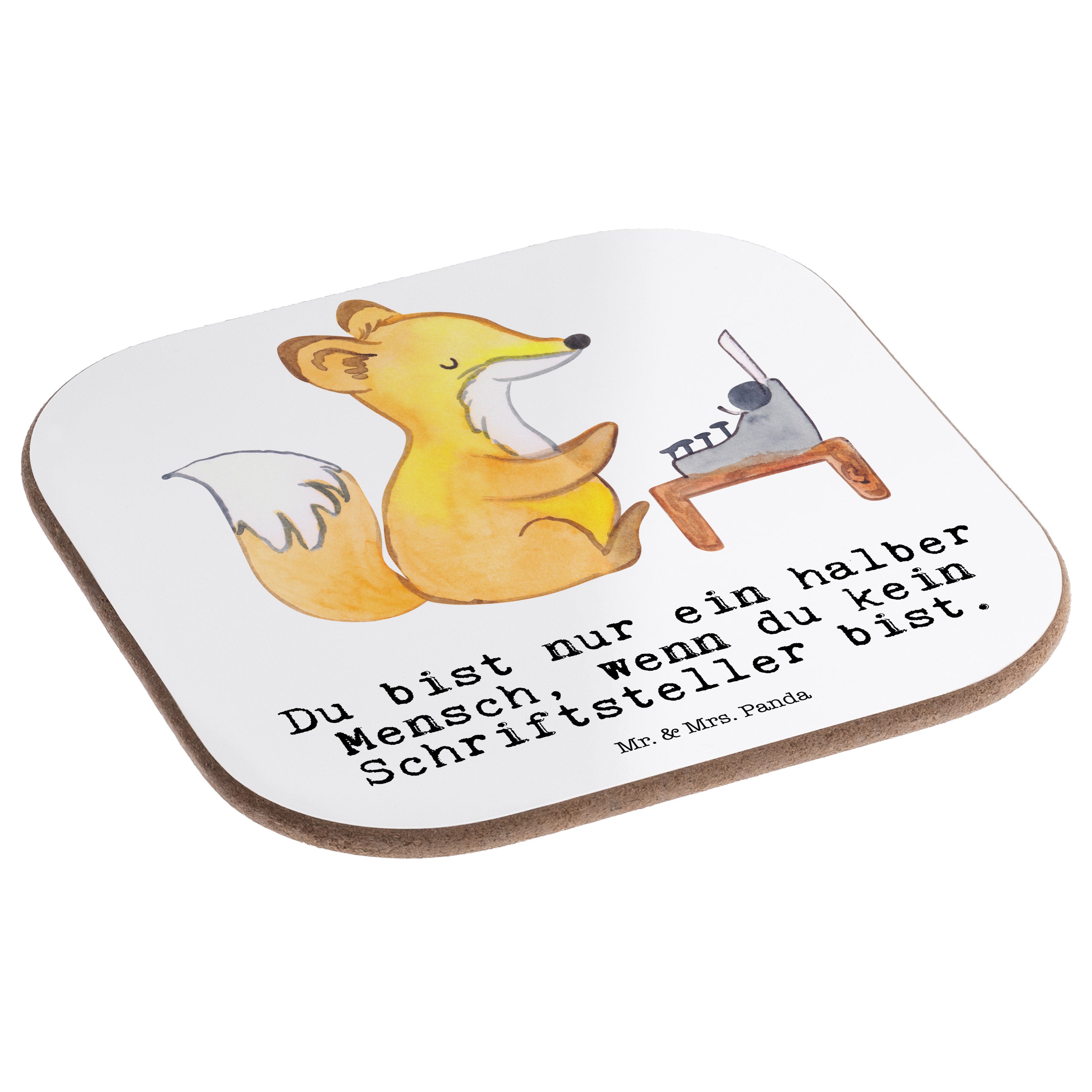 Quadratische Untersetzer Schriftsteller mit Herz