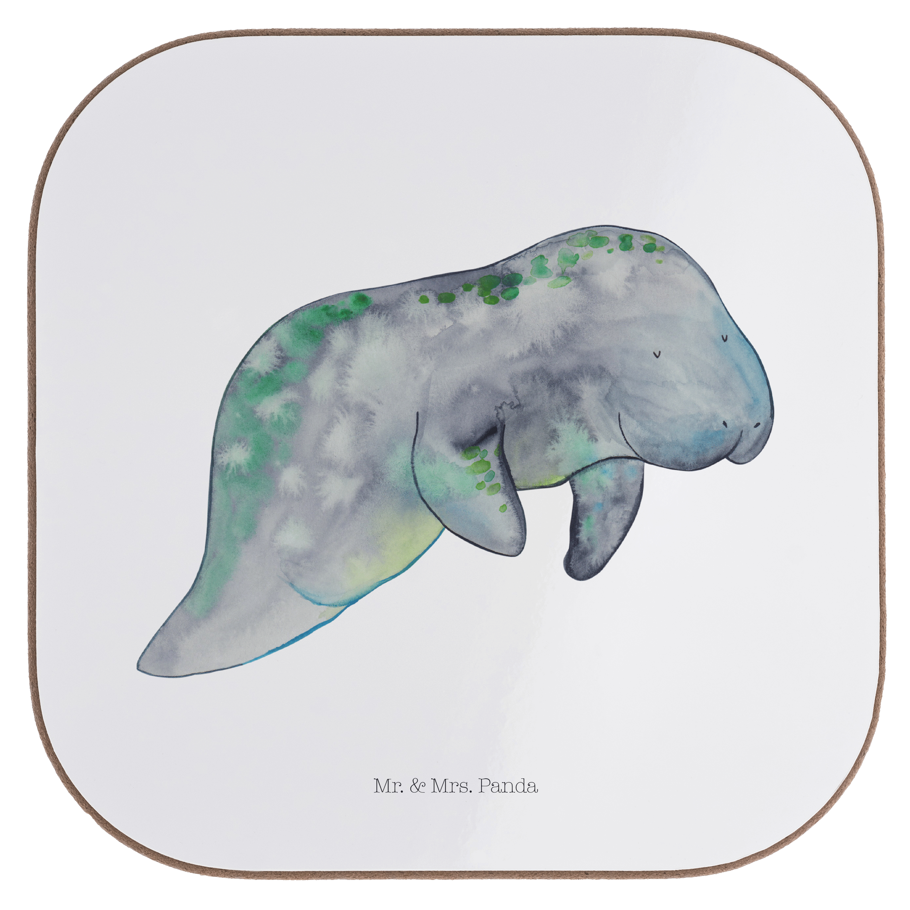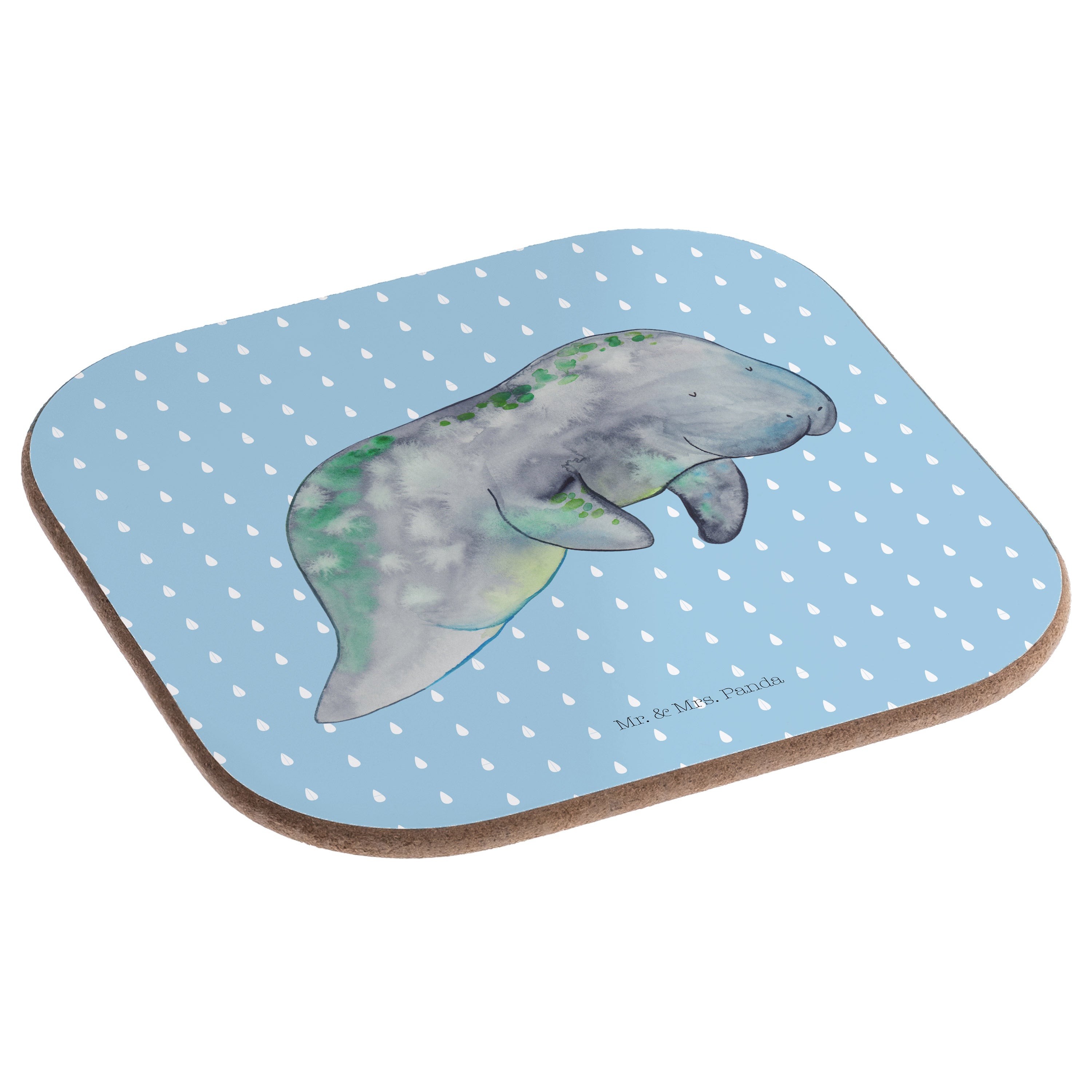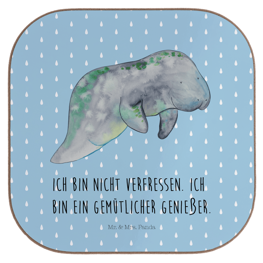 Quadratische Untersetzer Seekuh chillt - mit Spruch - Blau Pastell