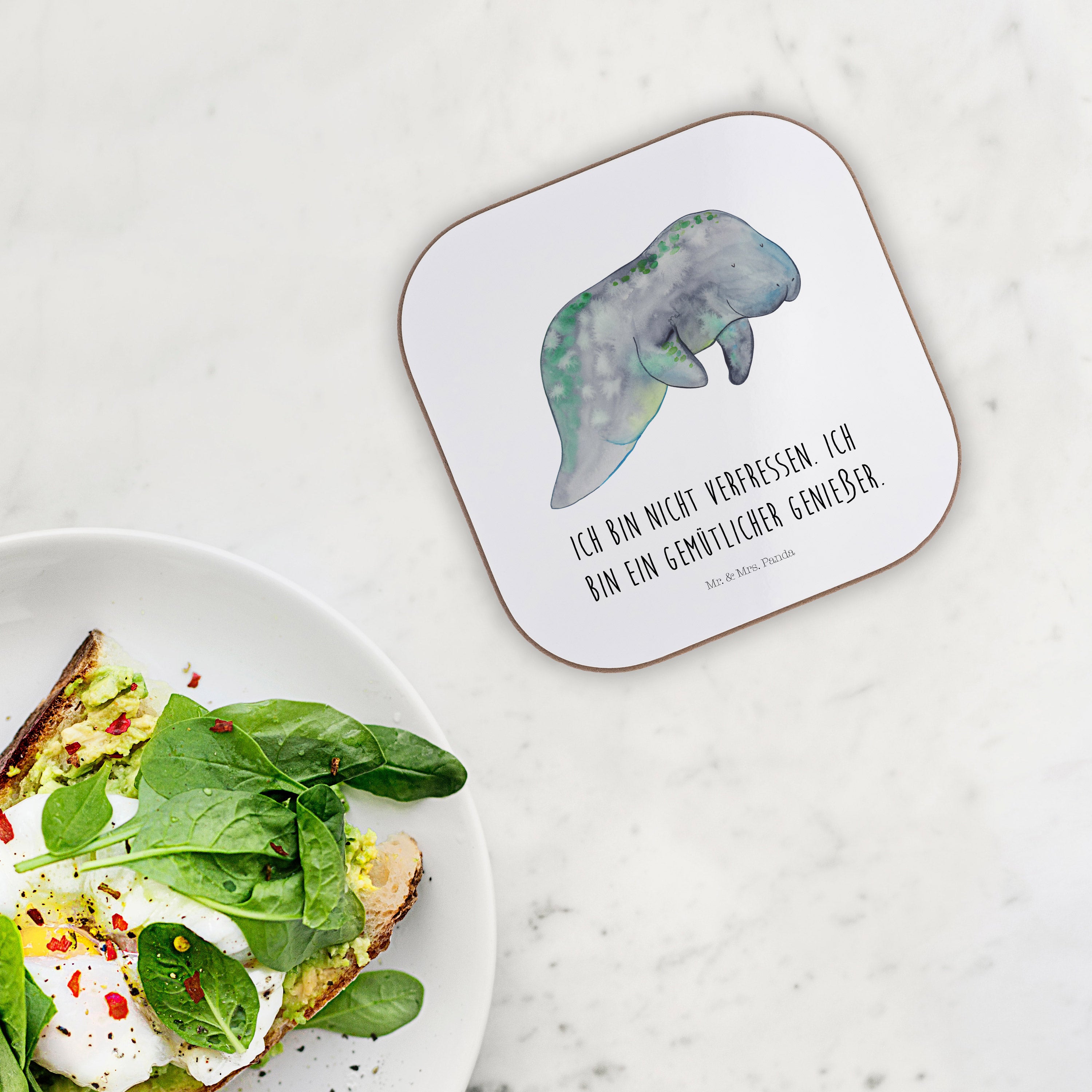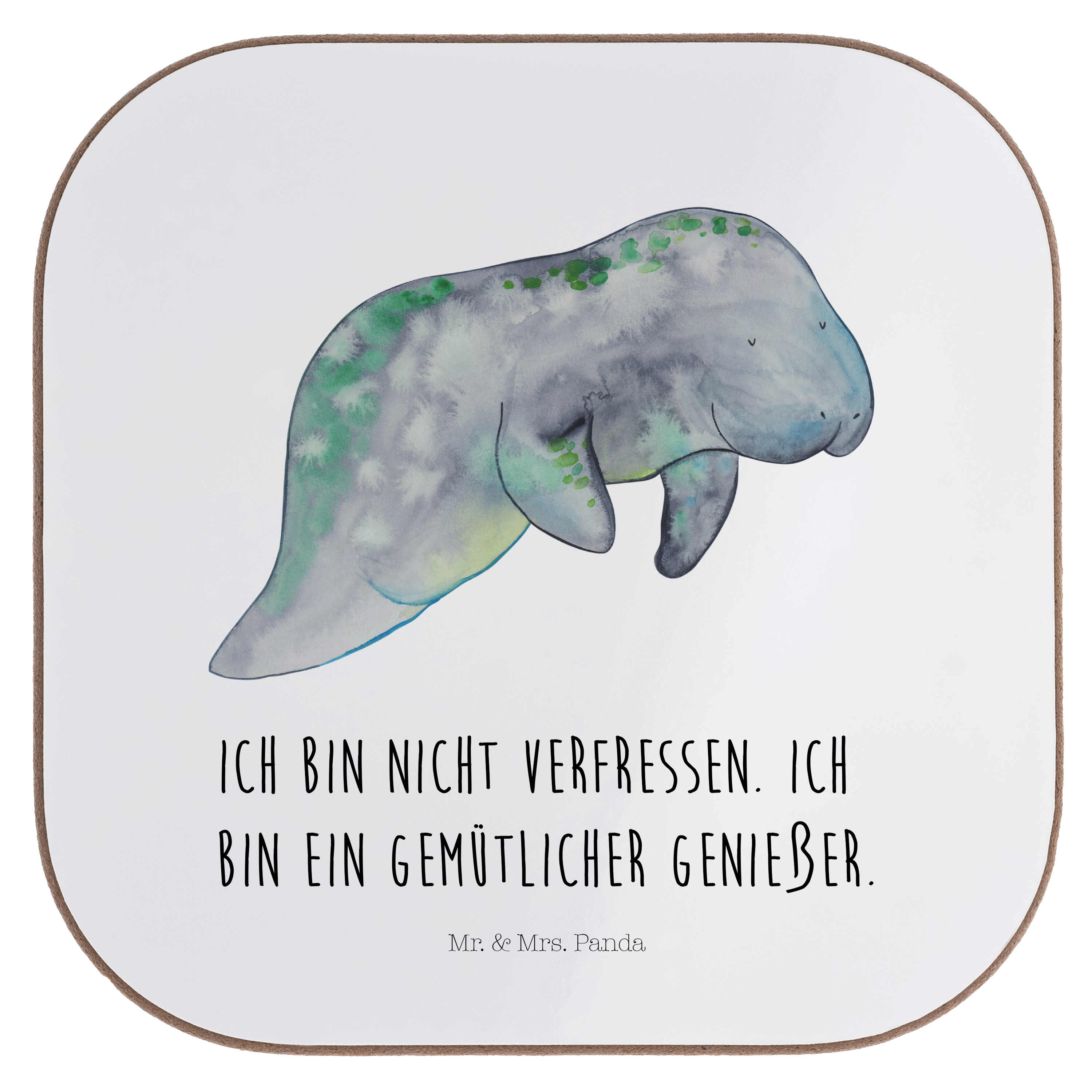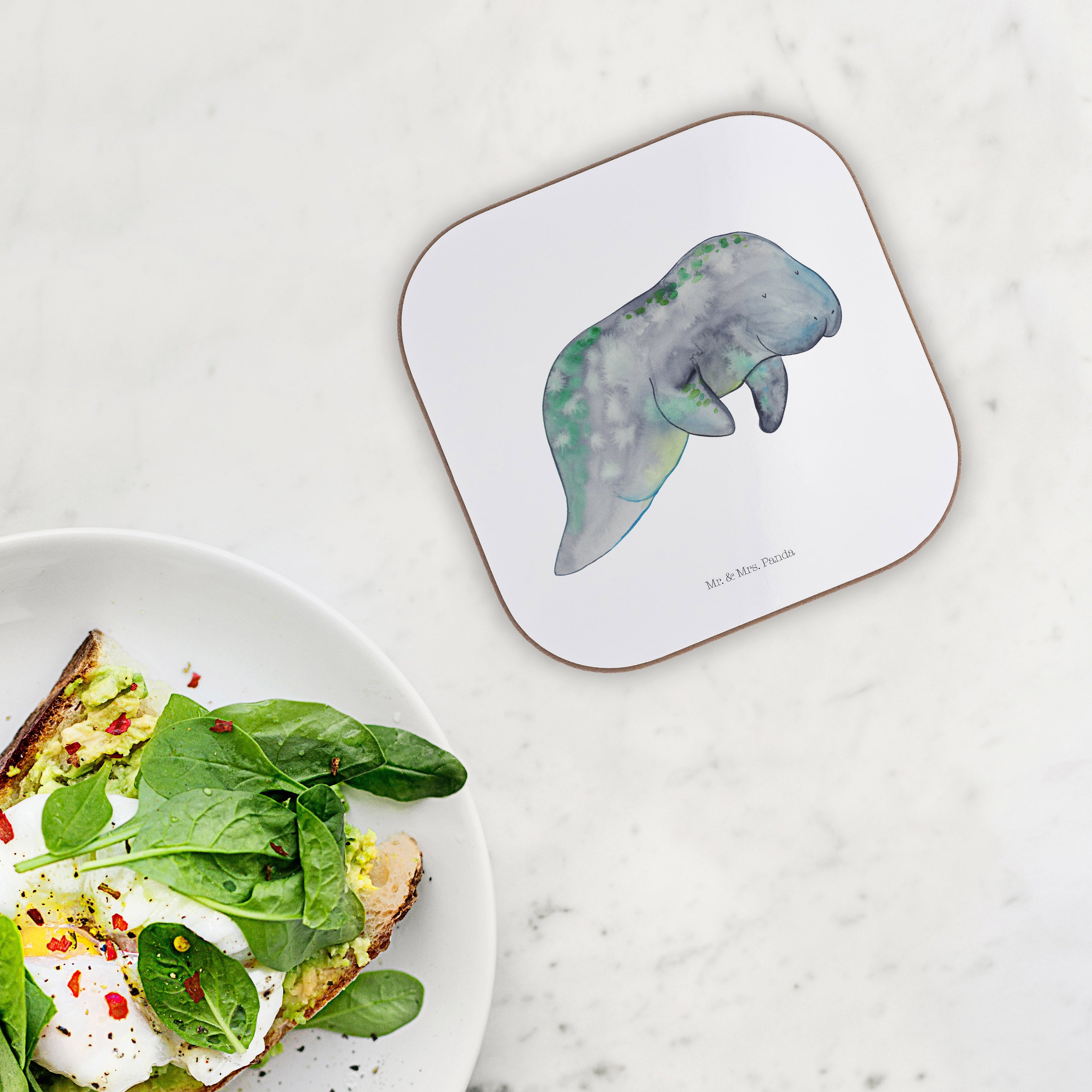 Quadratische Untersetzer Seekuh chillt - mit Spruch - Blau Pastell