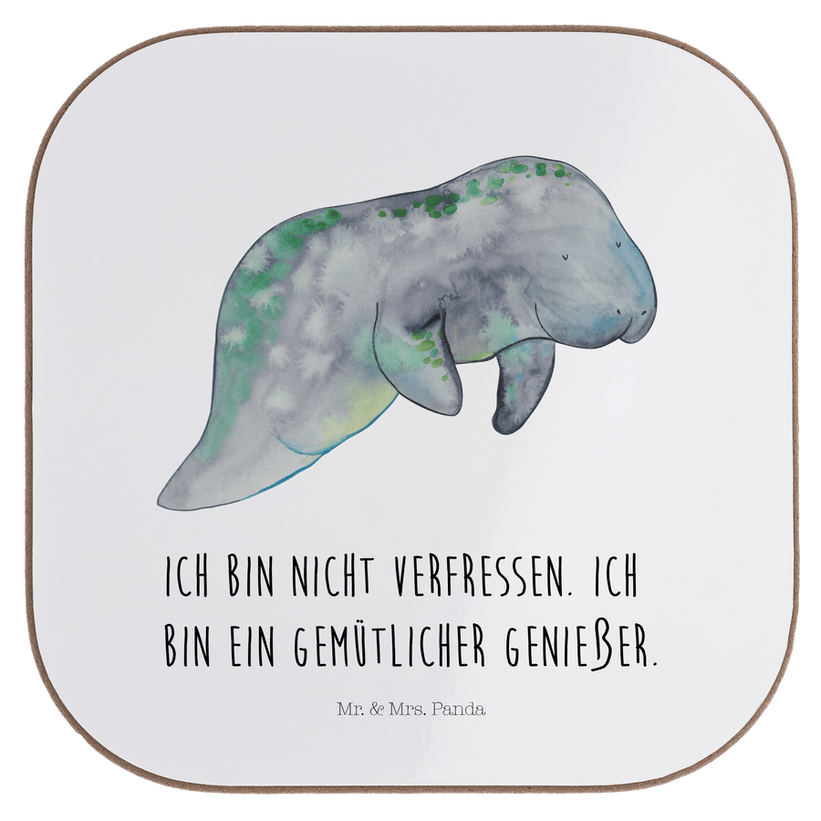 Quadratische Untersetzer Seekuh chillt - mit Spruch - Weiß