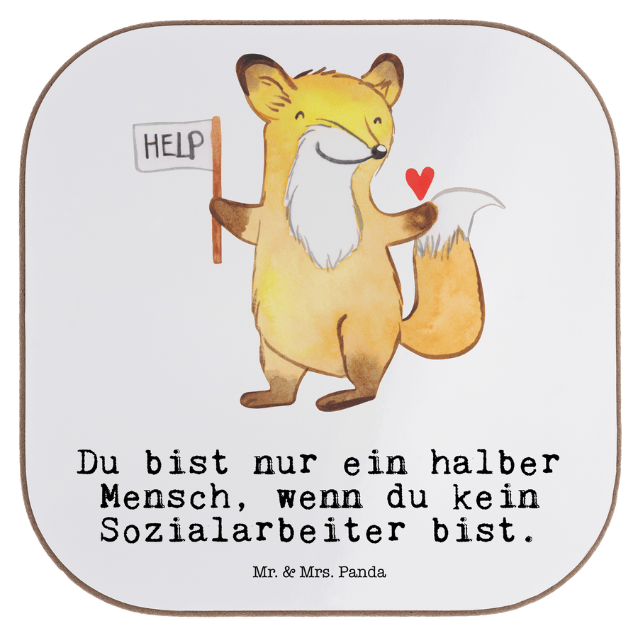 Quadratische Untersetzer Sozialarbeiter mit Herz