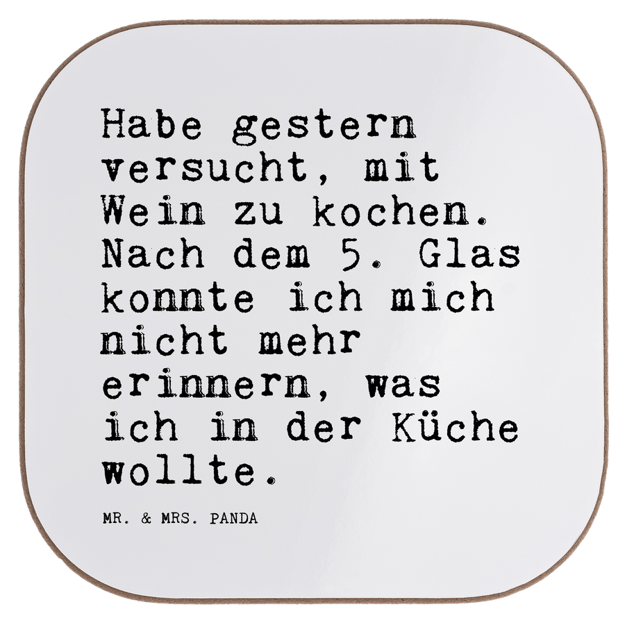 Quadratische Untersetzer Sprüche und Zitate Habe gestern versucht, mit Wein zu kochen. Nach dem 5. Glas konnte ich mich nicht mehr erinnern, was ich in der Küche wollte.