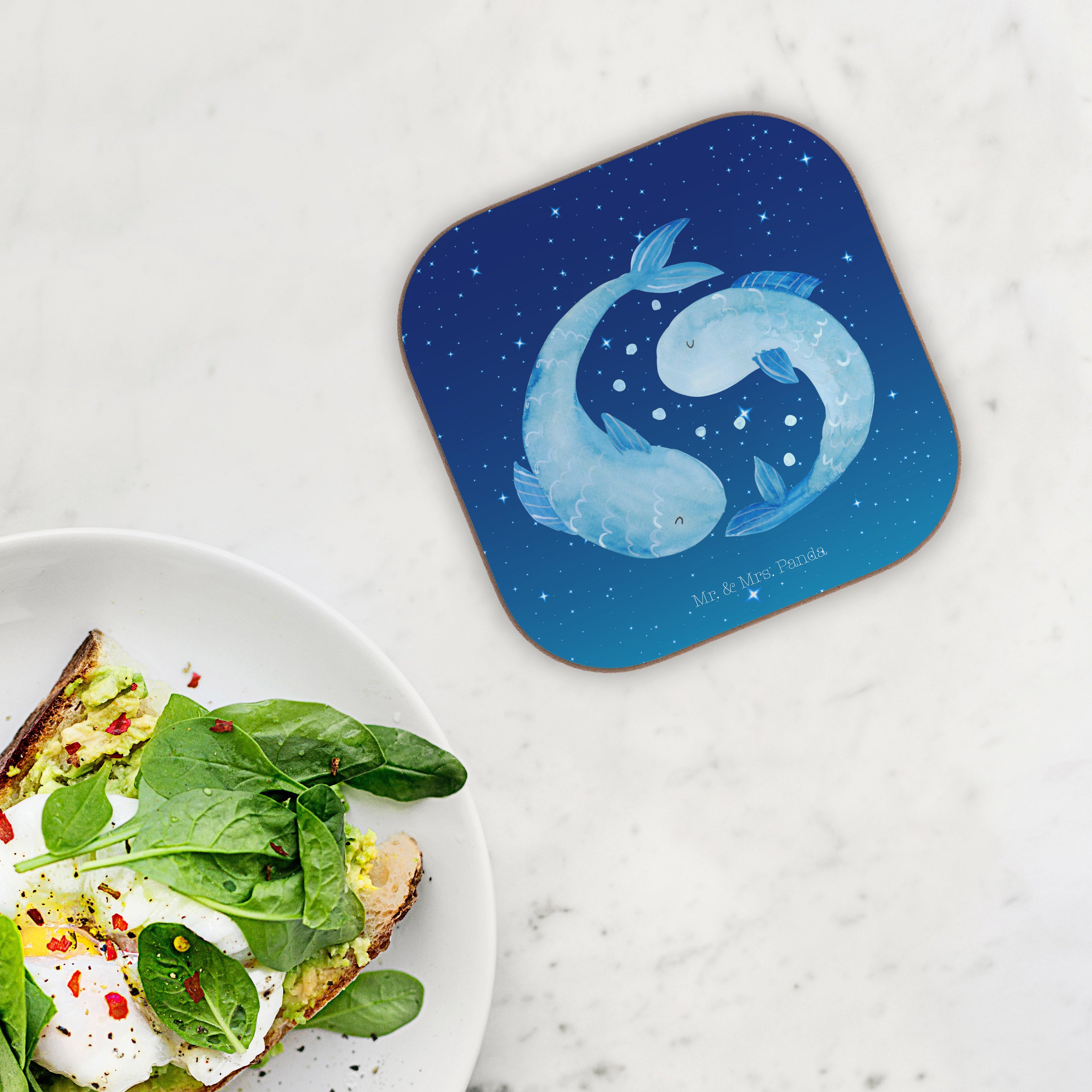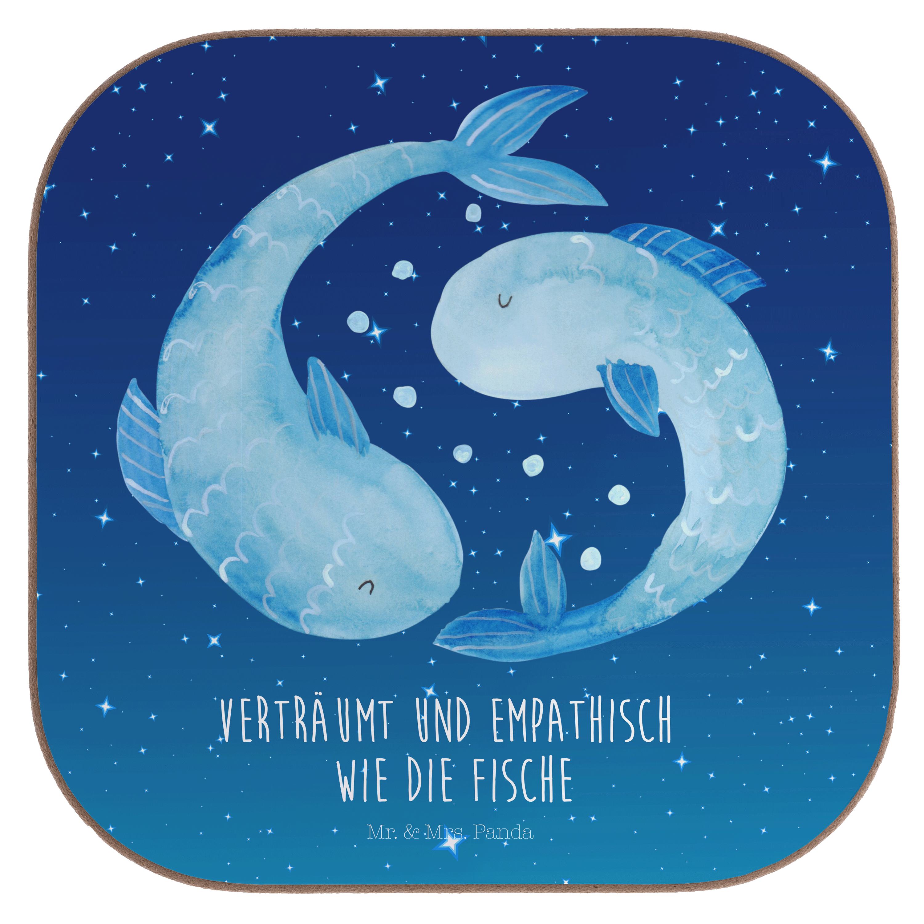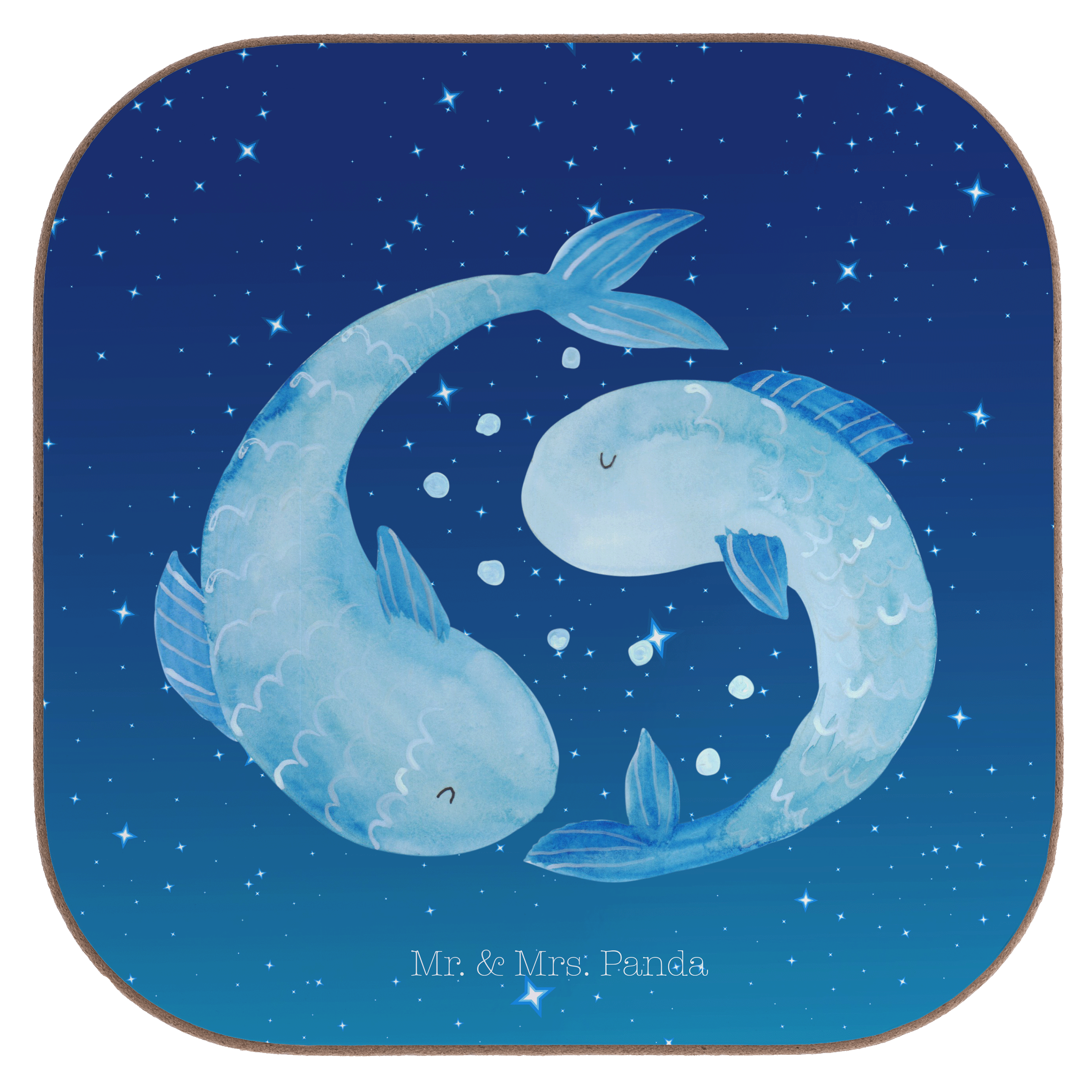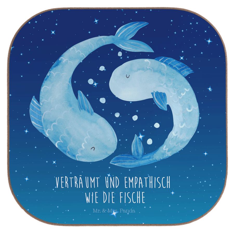 Quadratische Untersetzer Sternzeichen Fische - mit Spruch - Sternenhimmel Blau