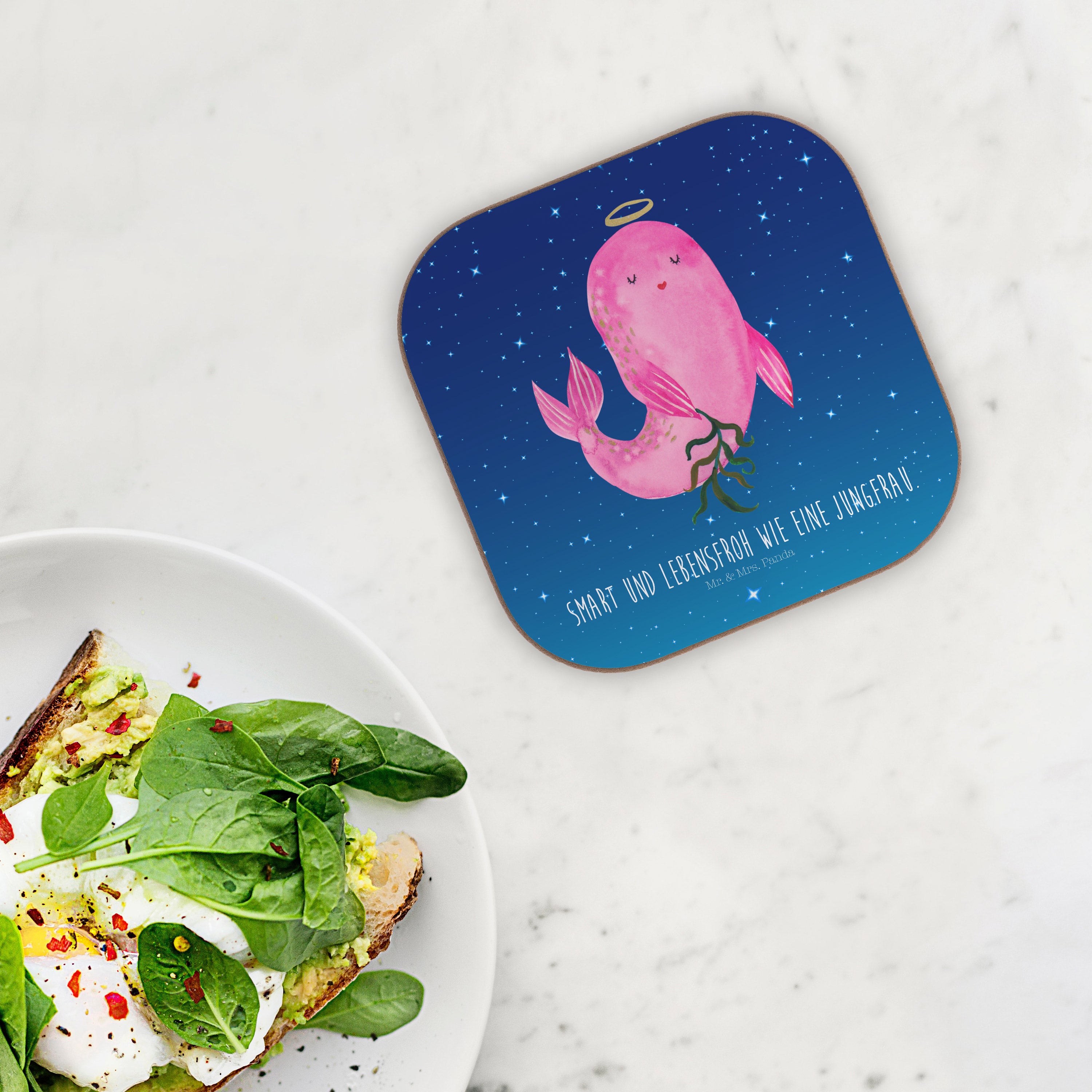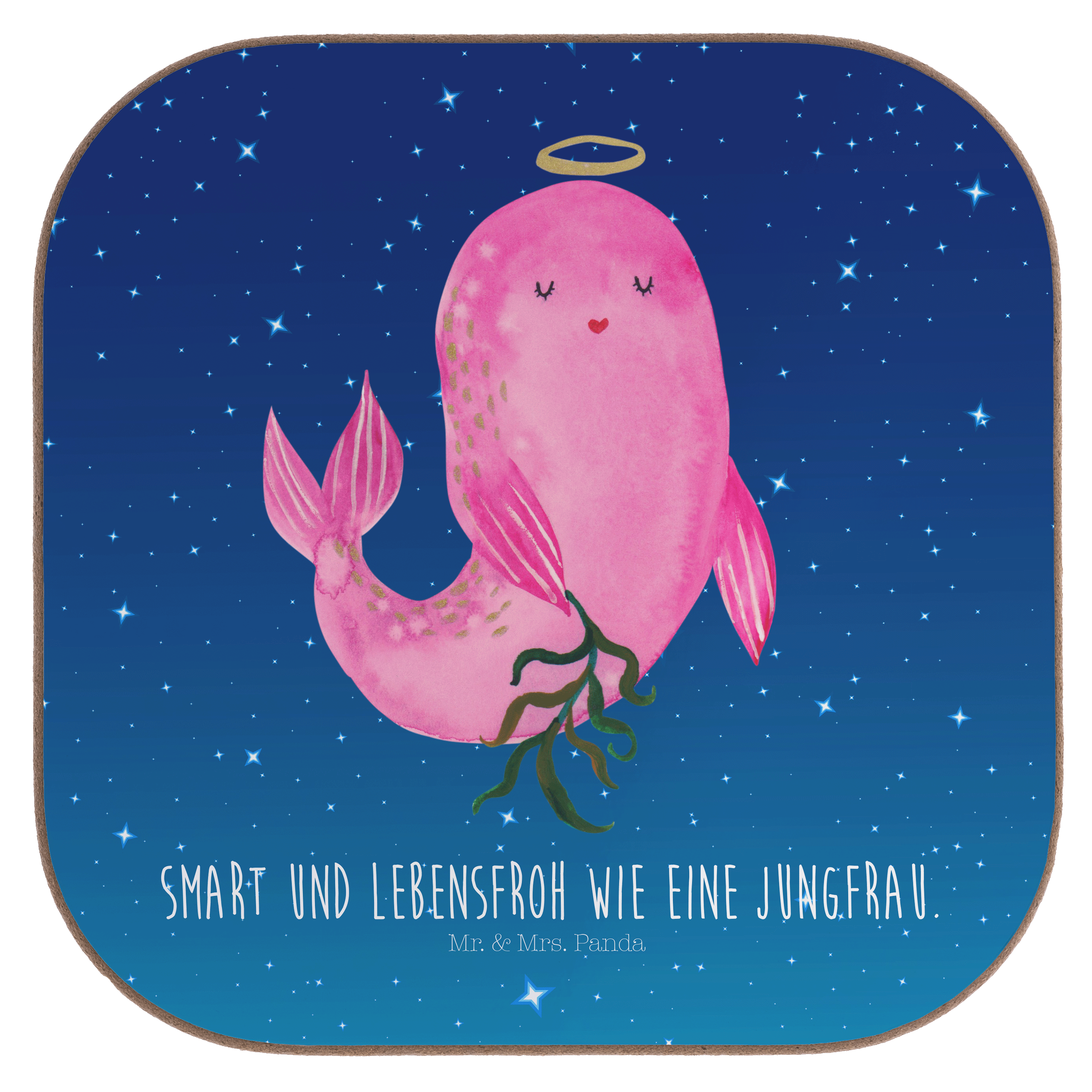 Quadratische Untersetzer Sternzeichen Jungfrau - mit Spruch - Sternenhimmel Blau