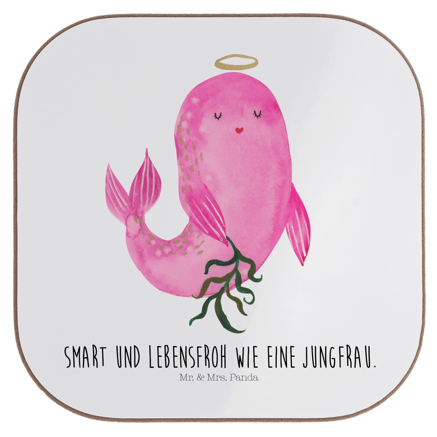 Quadratische Untersetzer Sternzeichen Jungfrau - mit Spruch - Weiß