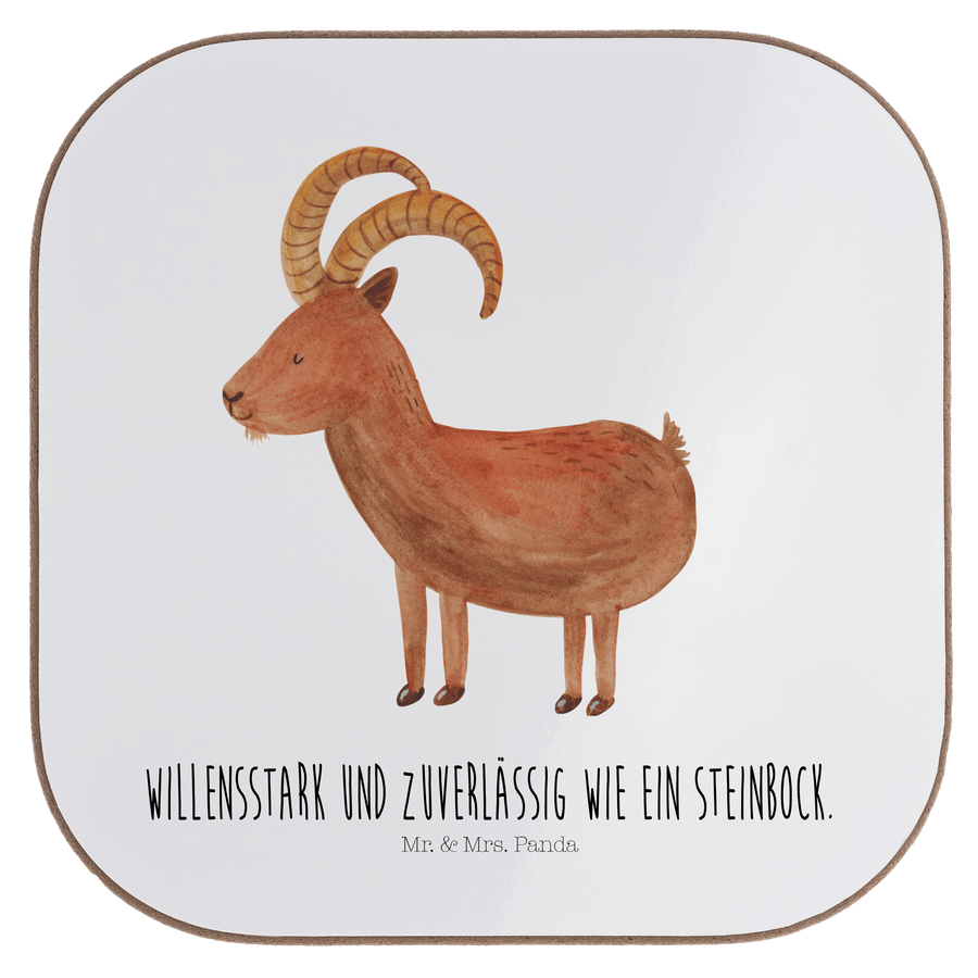 Quadratische Untersetzer Sternzeichen Steinbock - mit Spruch - Weiß