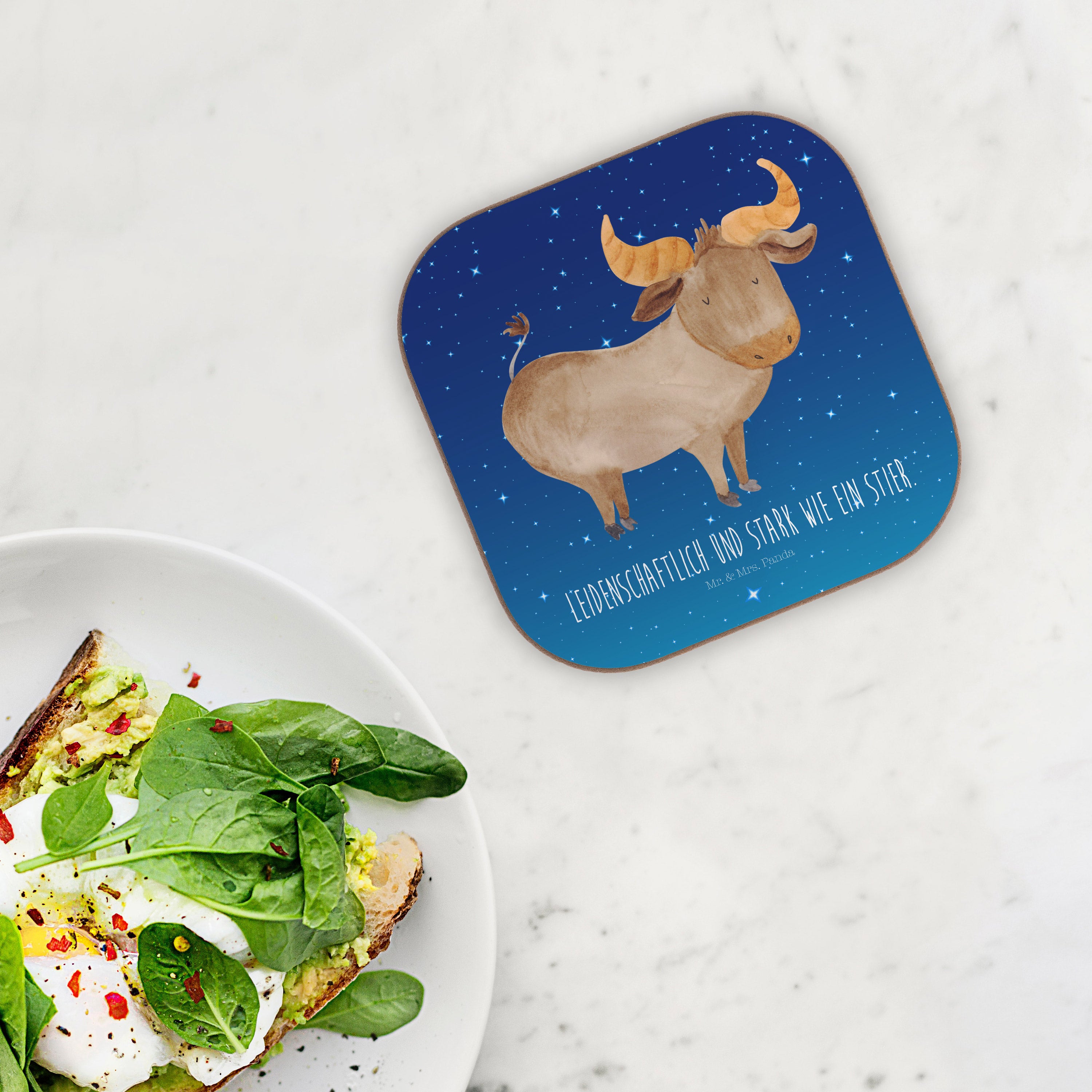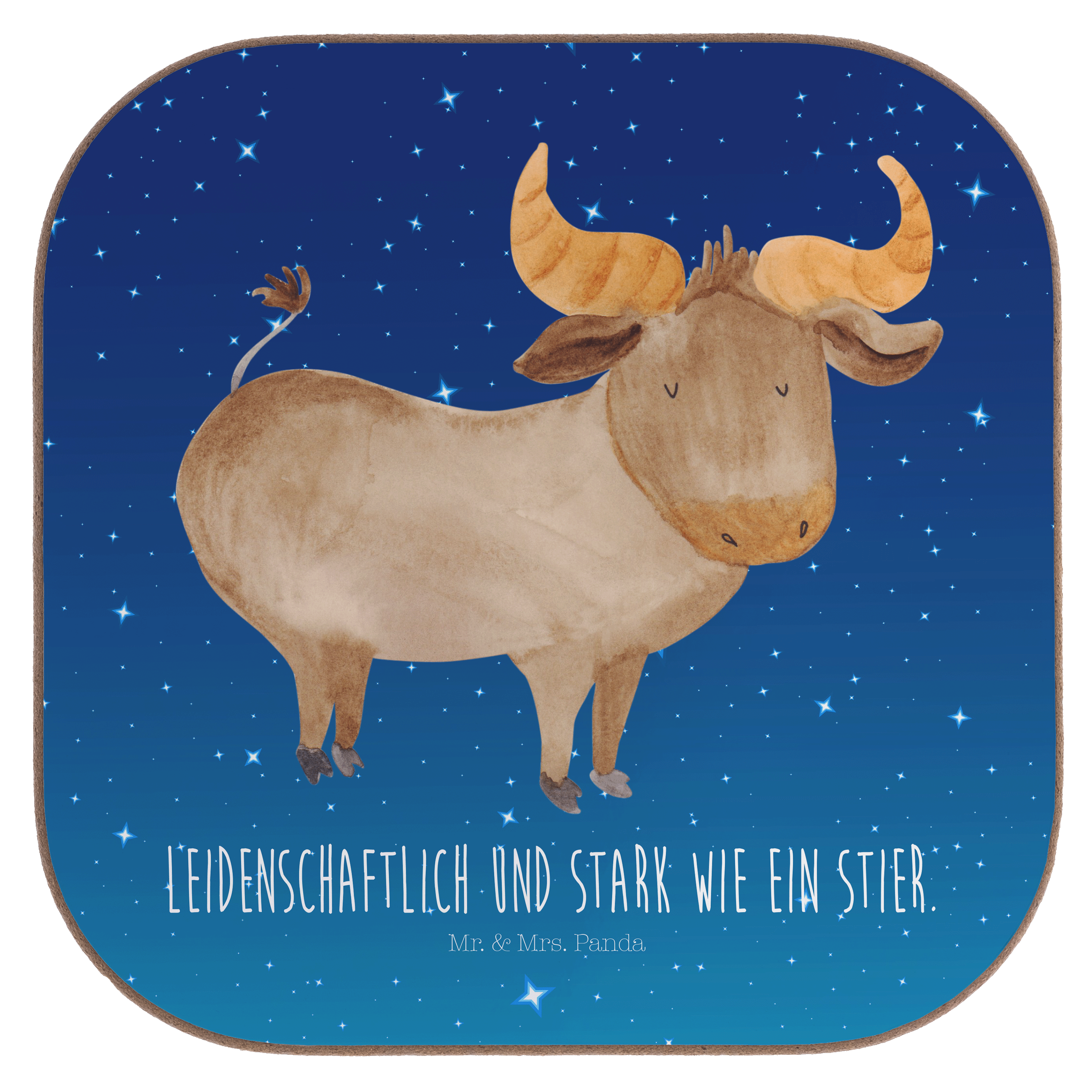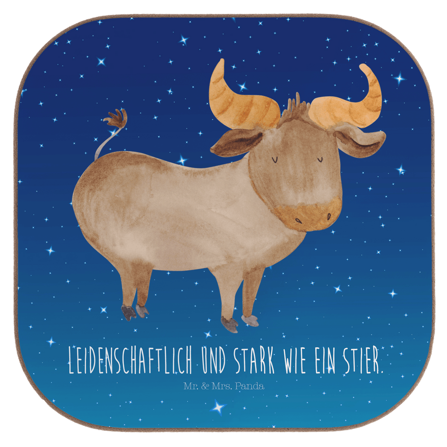 Quadratische Untersetzer Sternzeichen Stier - mit Spruch - Sternenhimmel Blau