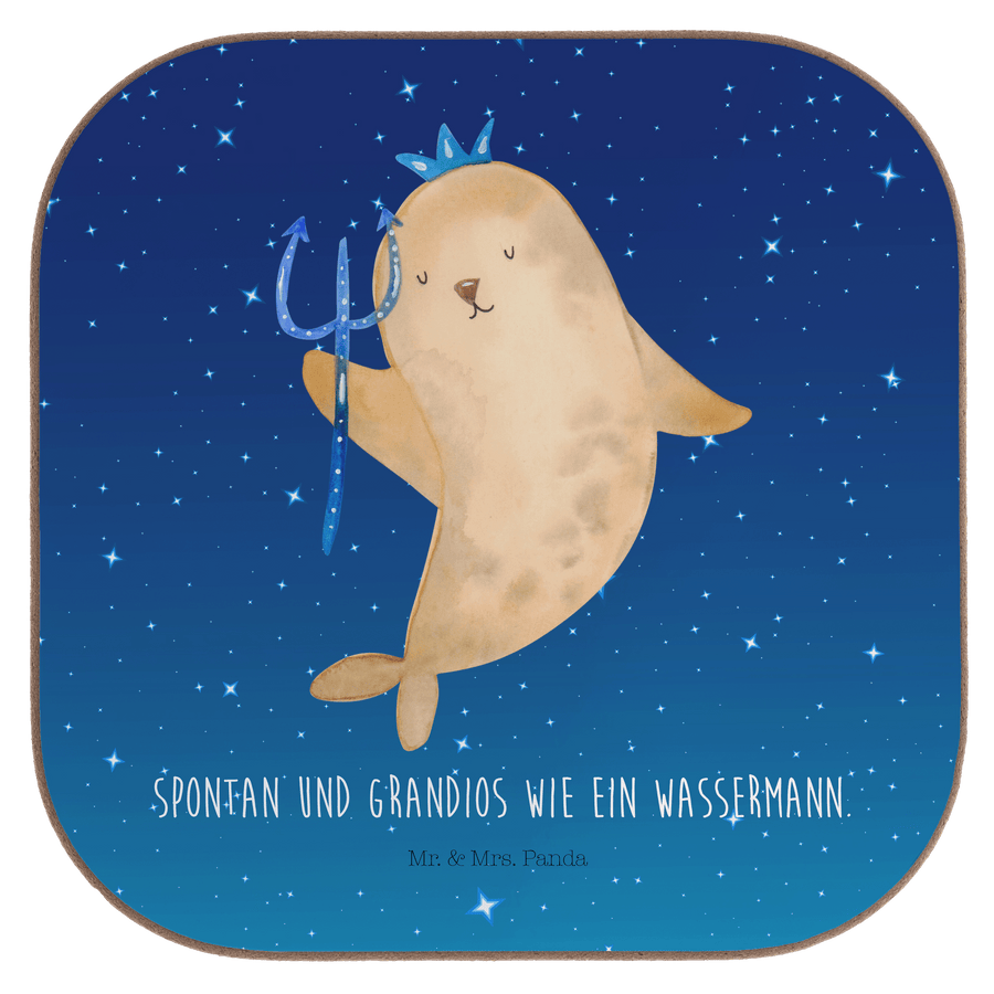 Quadratische Untersetzer Sternzeichen Wassermann - mit Spruch - Sternenhimmel Blau