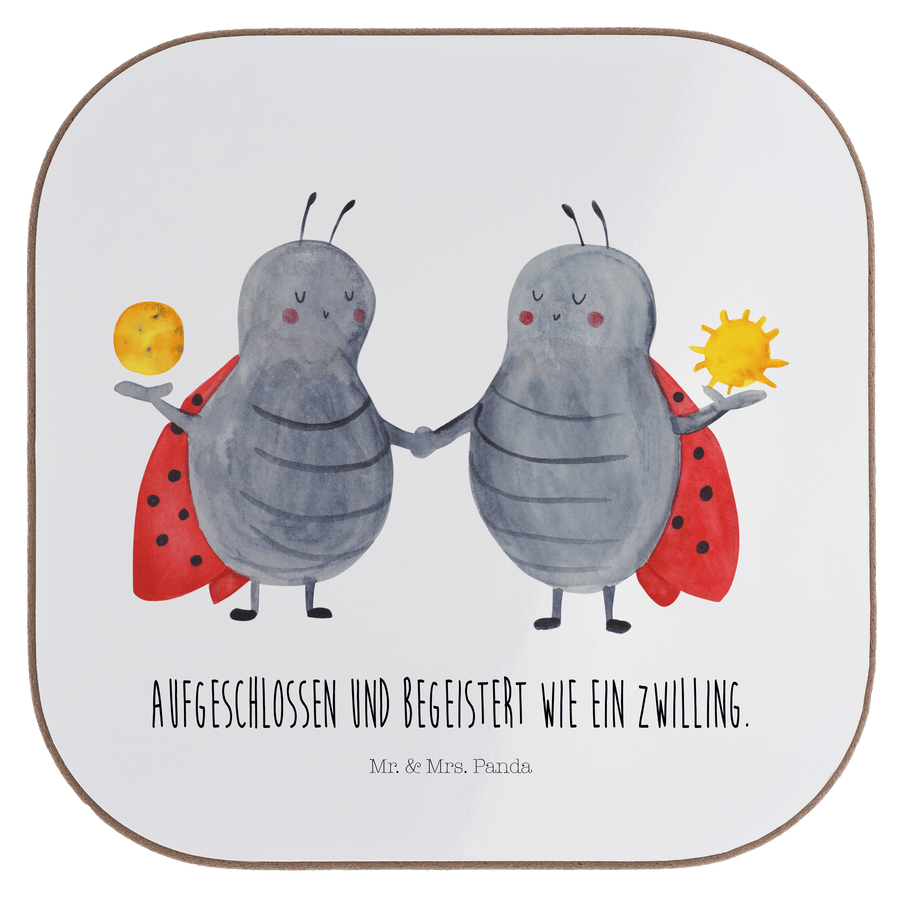 Quadratische Untersetzer Sternzeichen Zwilling - mit Spruch - Weiß