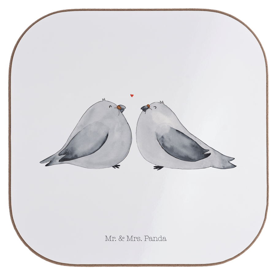 Quadratische Untersetzer Turteltauben Liebe - ohne Spruch - Weiß