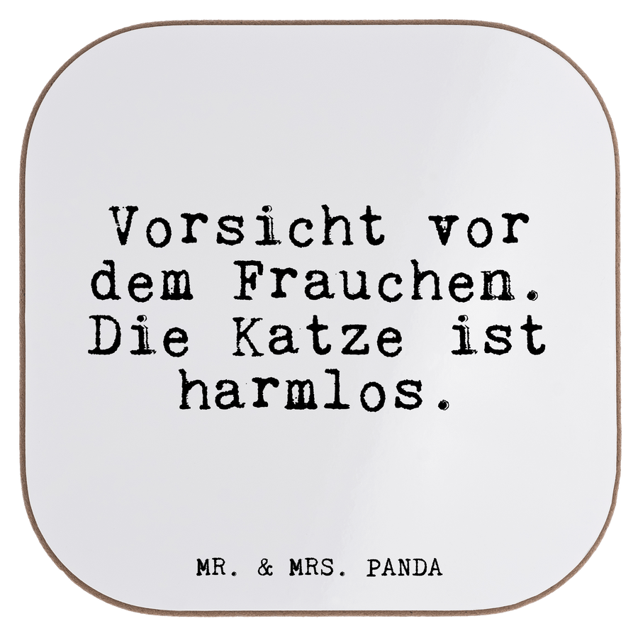 Quadratische Untersetzer Fun Talk Vorsicht vor dem Frauchen. Die Katze ist harmlos.