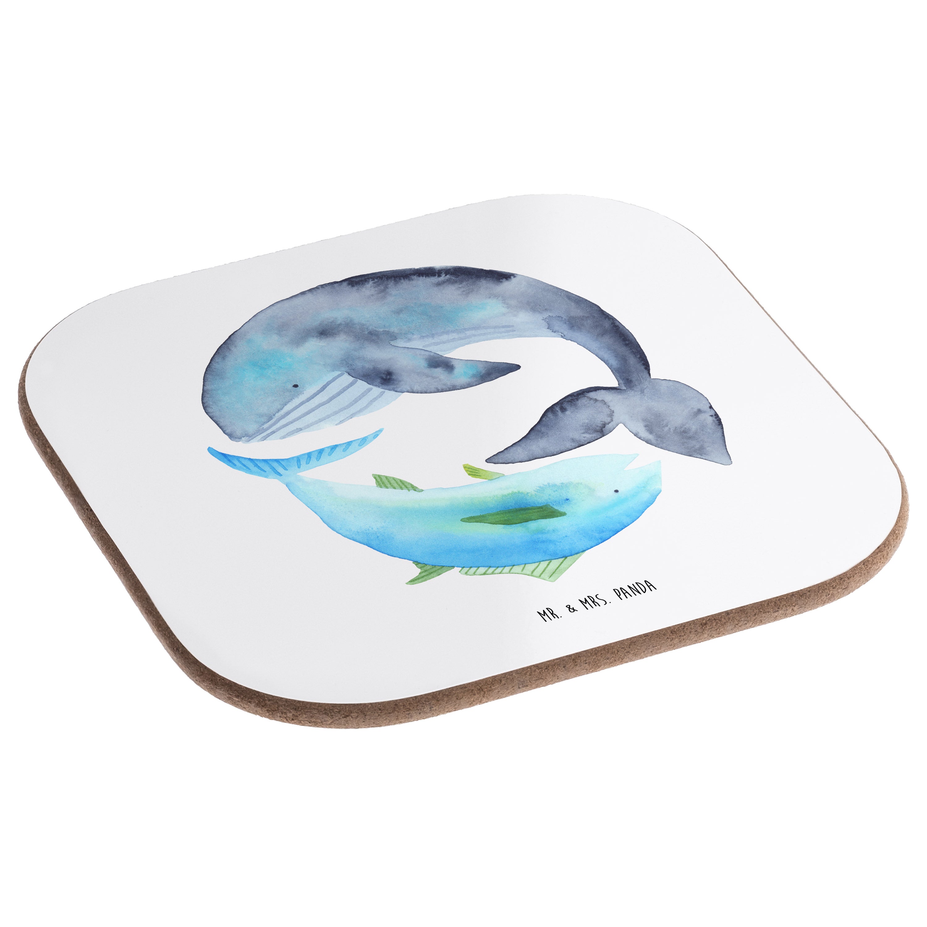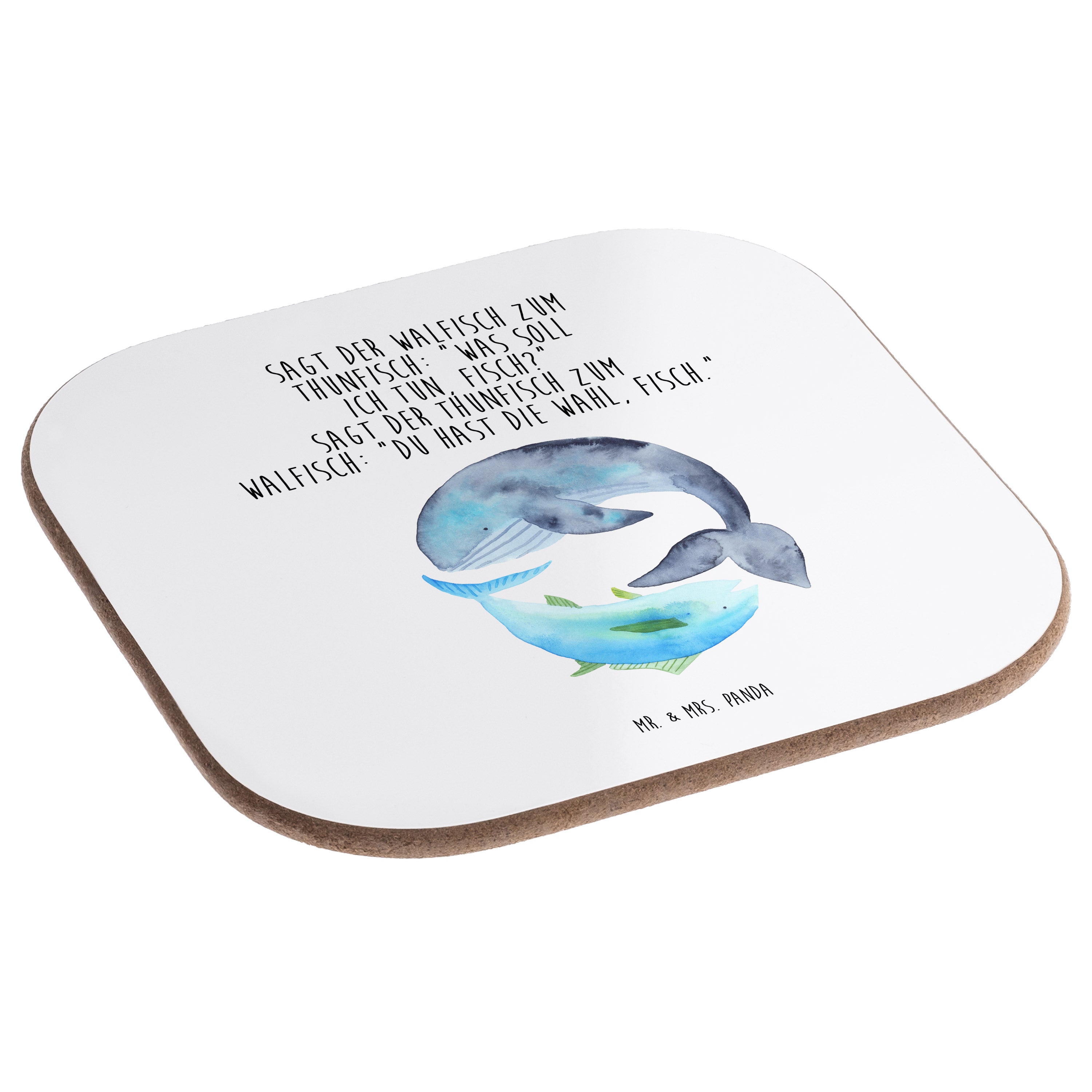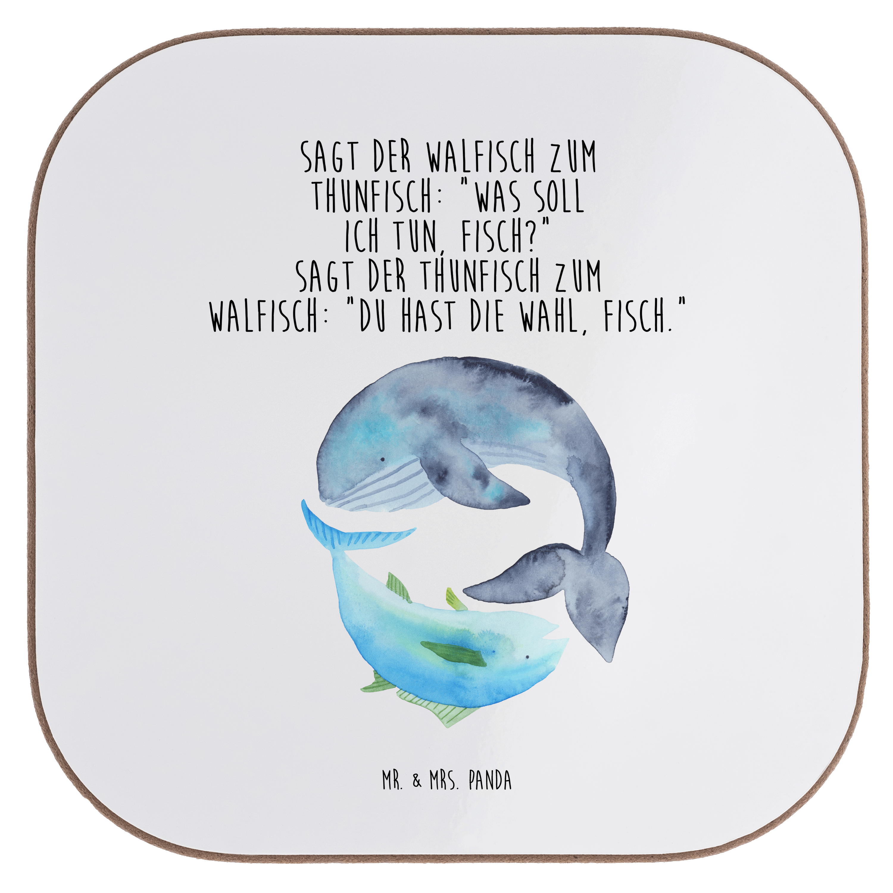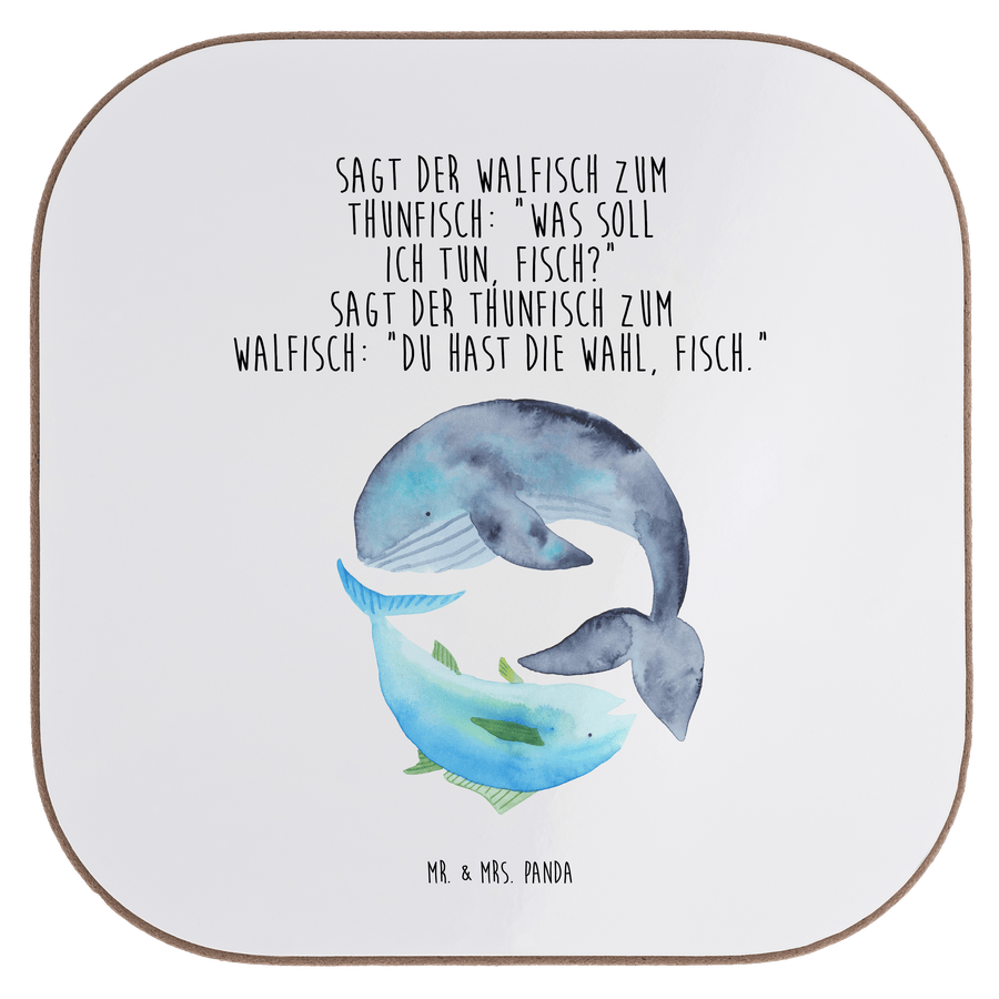 Quadratische Untersetzer Walfisch & Thunfisch - mit Spruch - Weiß