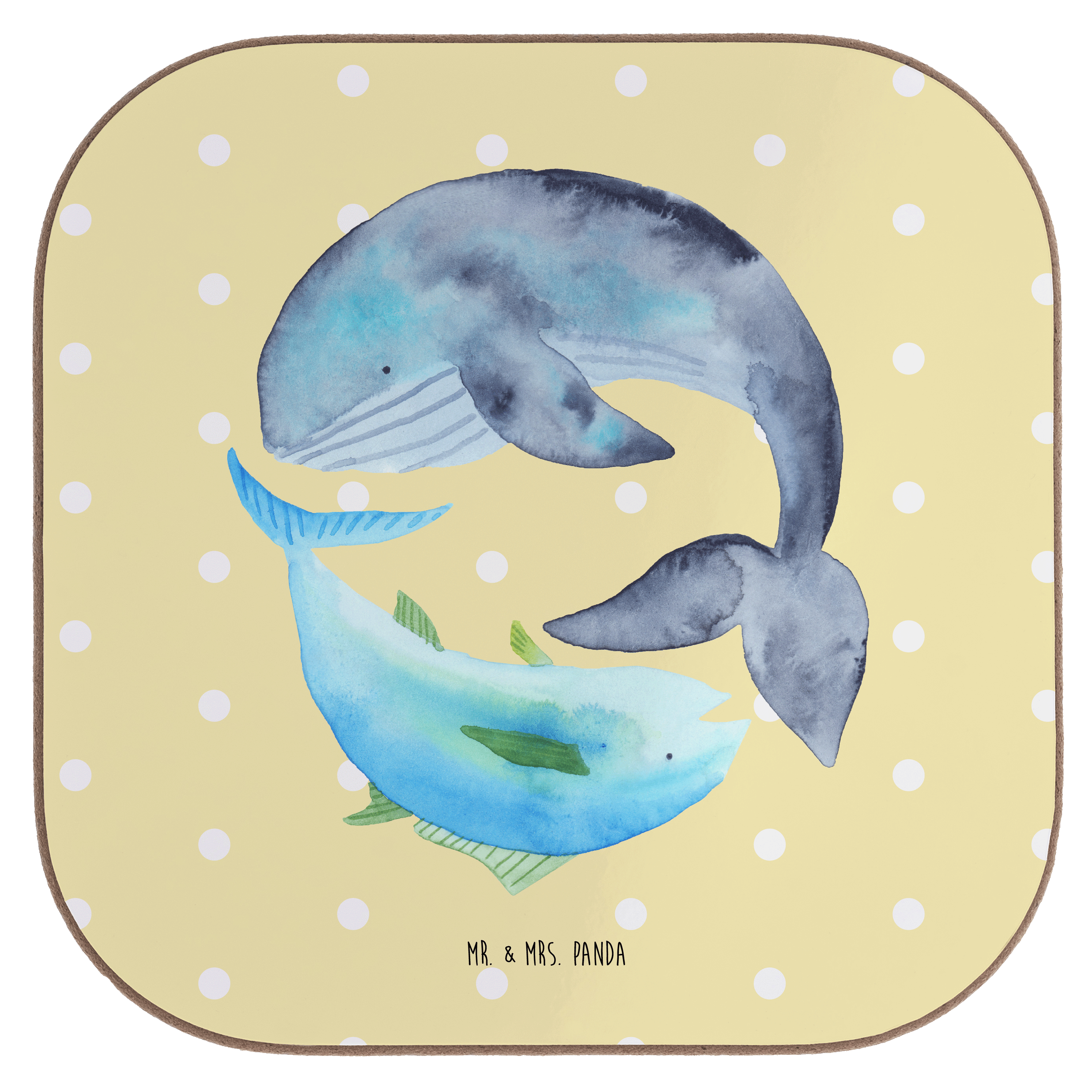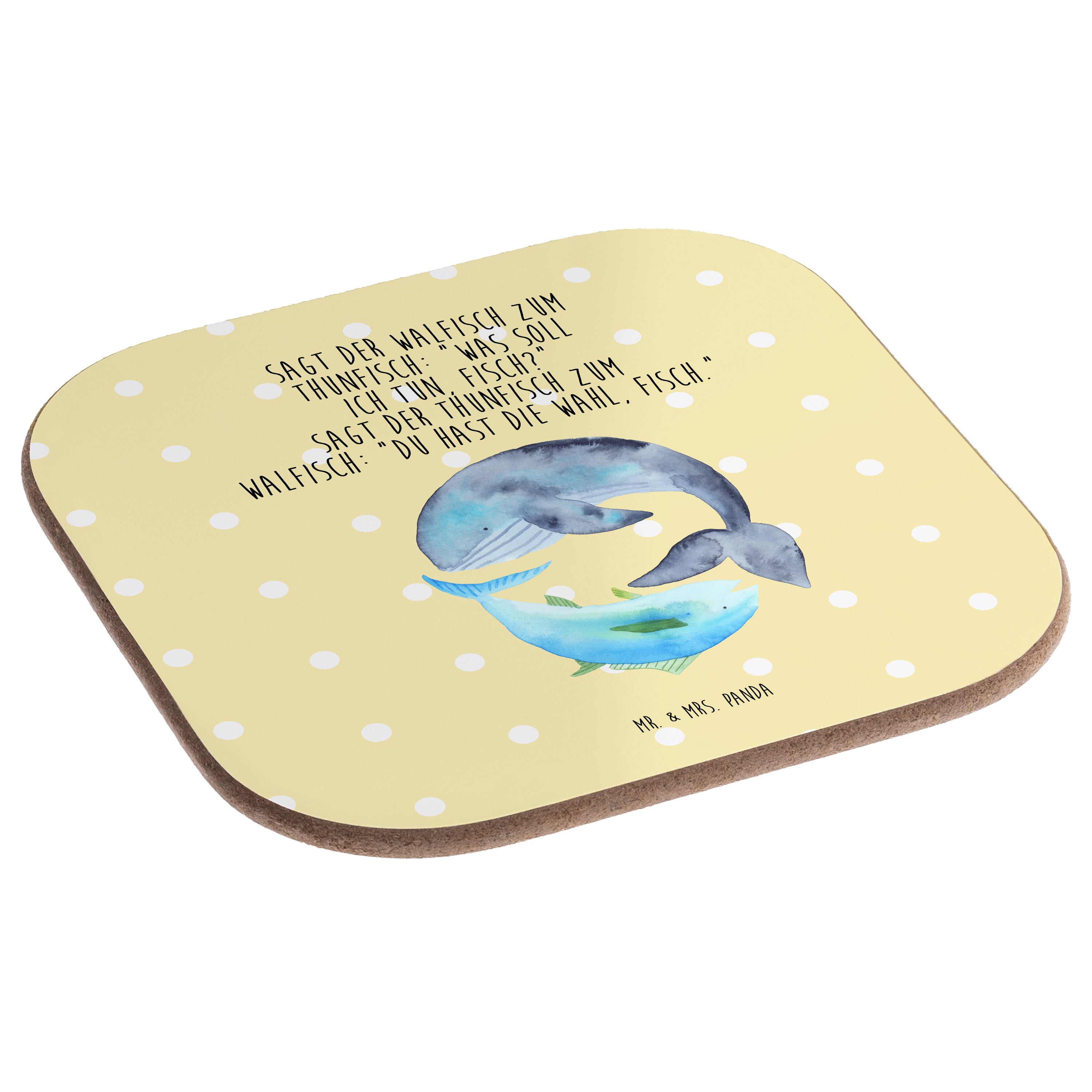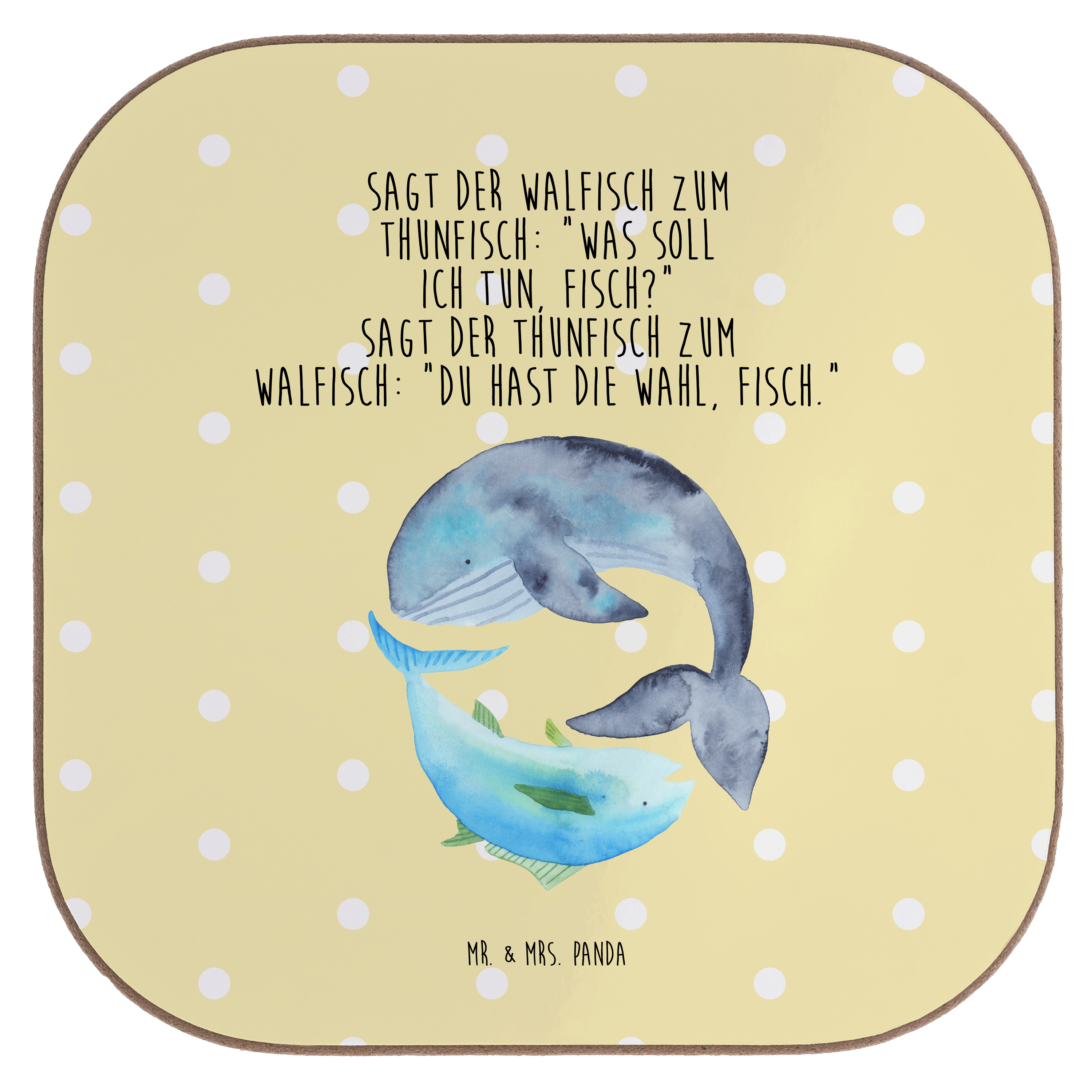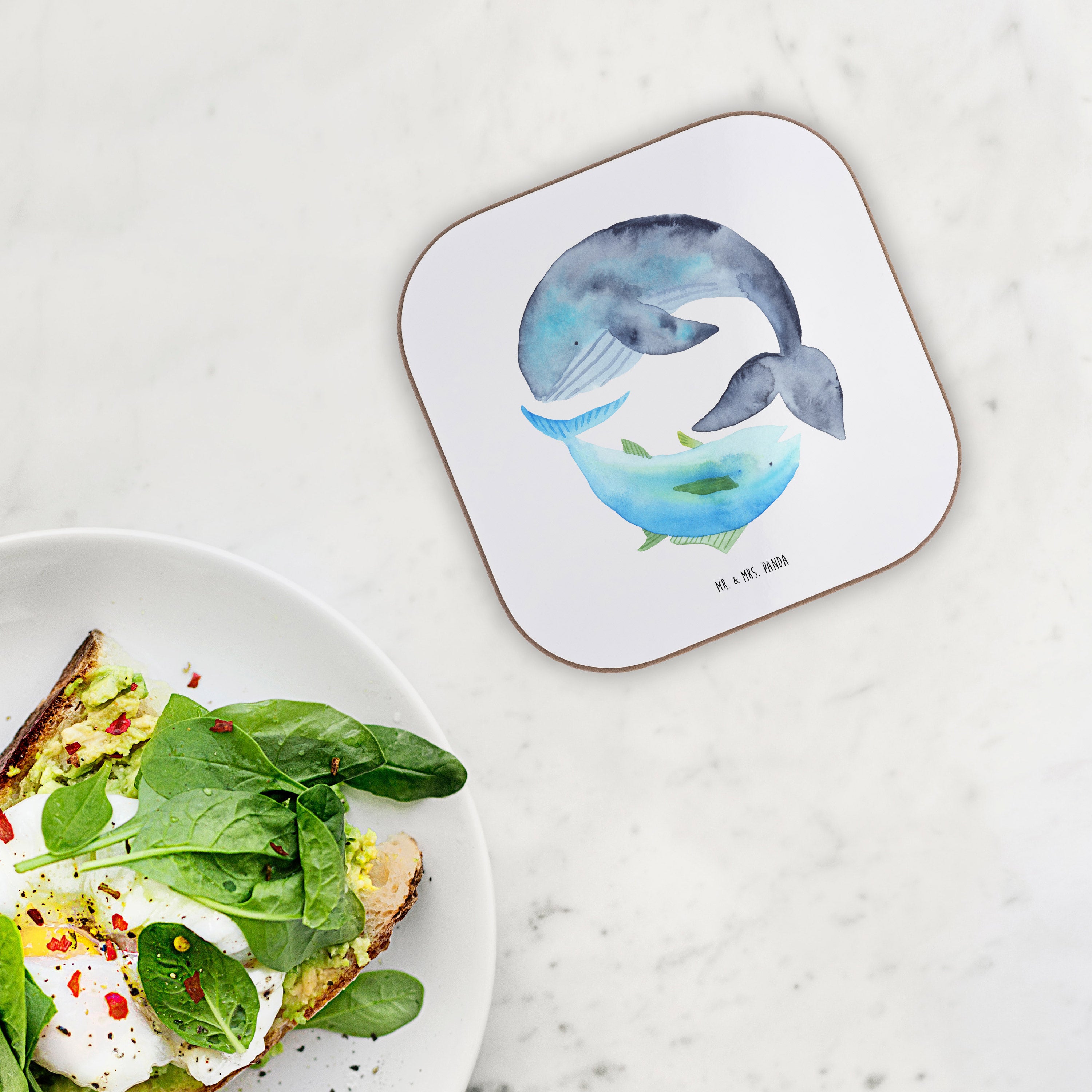 Quadratische Untersetzer Walfisch & Thunfisch - mit Spruch - Weiß