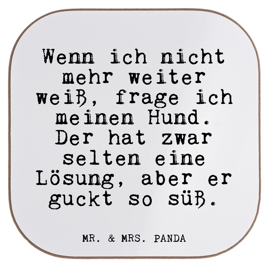 Quadratische Untersetzer Fun Talk Wenn ich nicht mehr weiter weiß, frage ich meinen Hund. Der hat zwar selten eine Lösung, aber er guckt so süß.