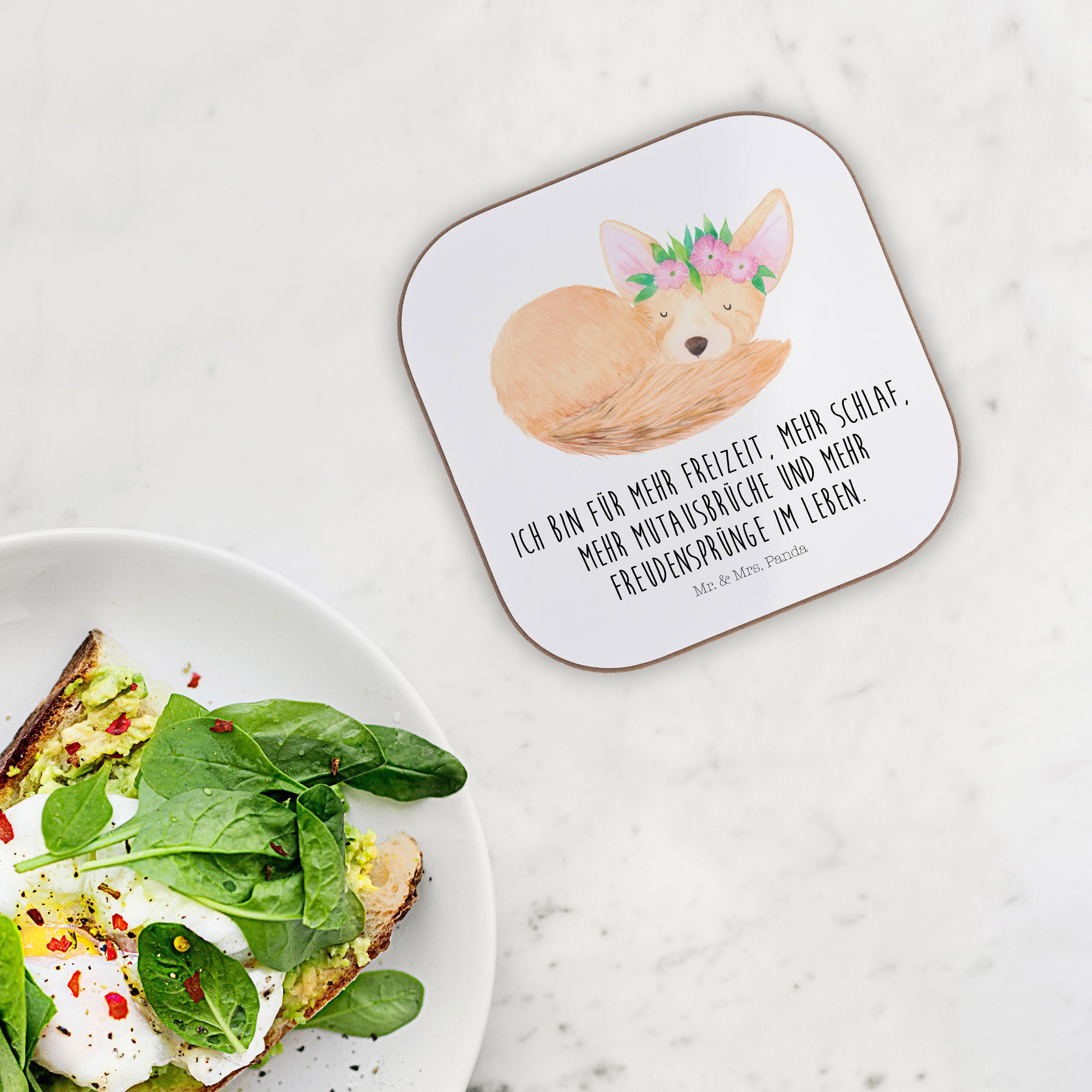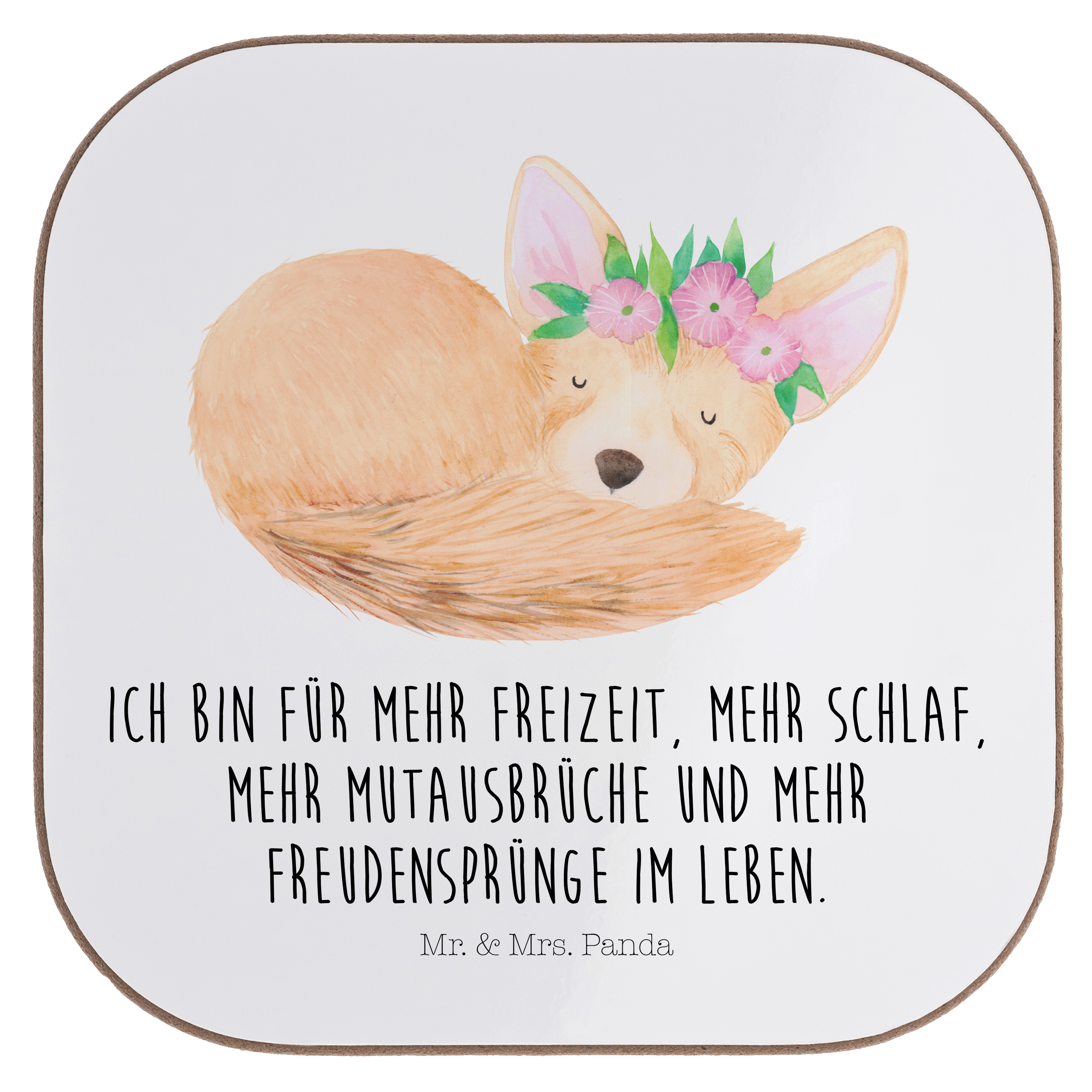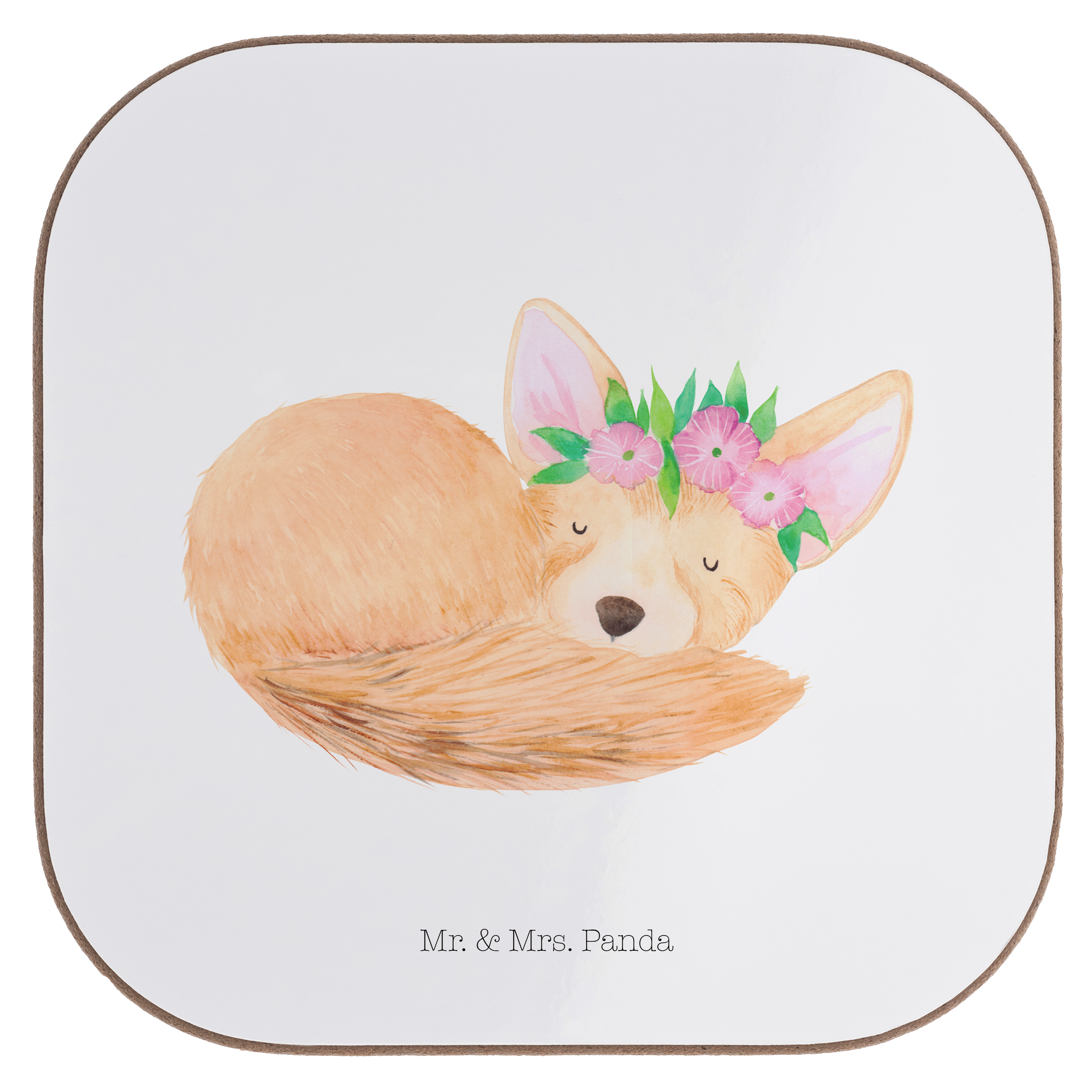 Quadratische Untersetzer Wüstenfuchs Blumenkranz - mit Spruch