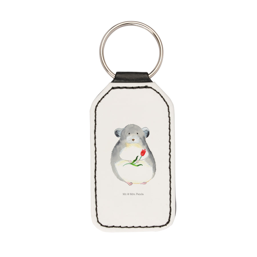 Rechteckig Schlüsselanhänger Chinchilla mit Blume - Weiß