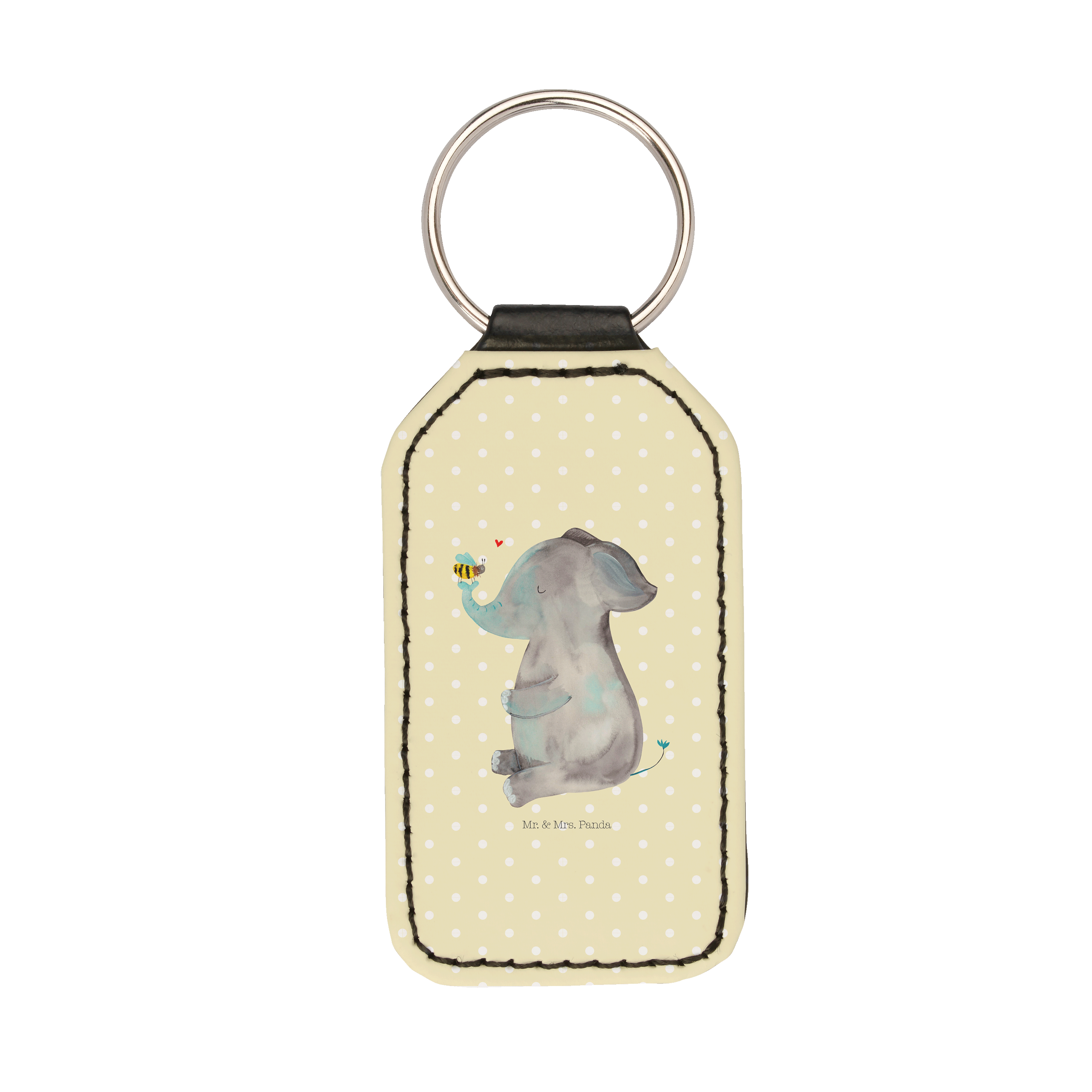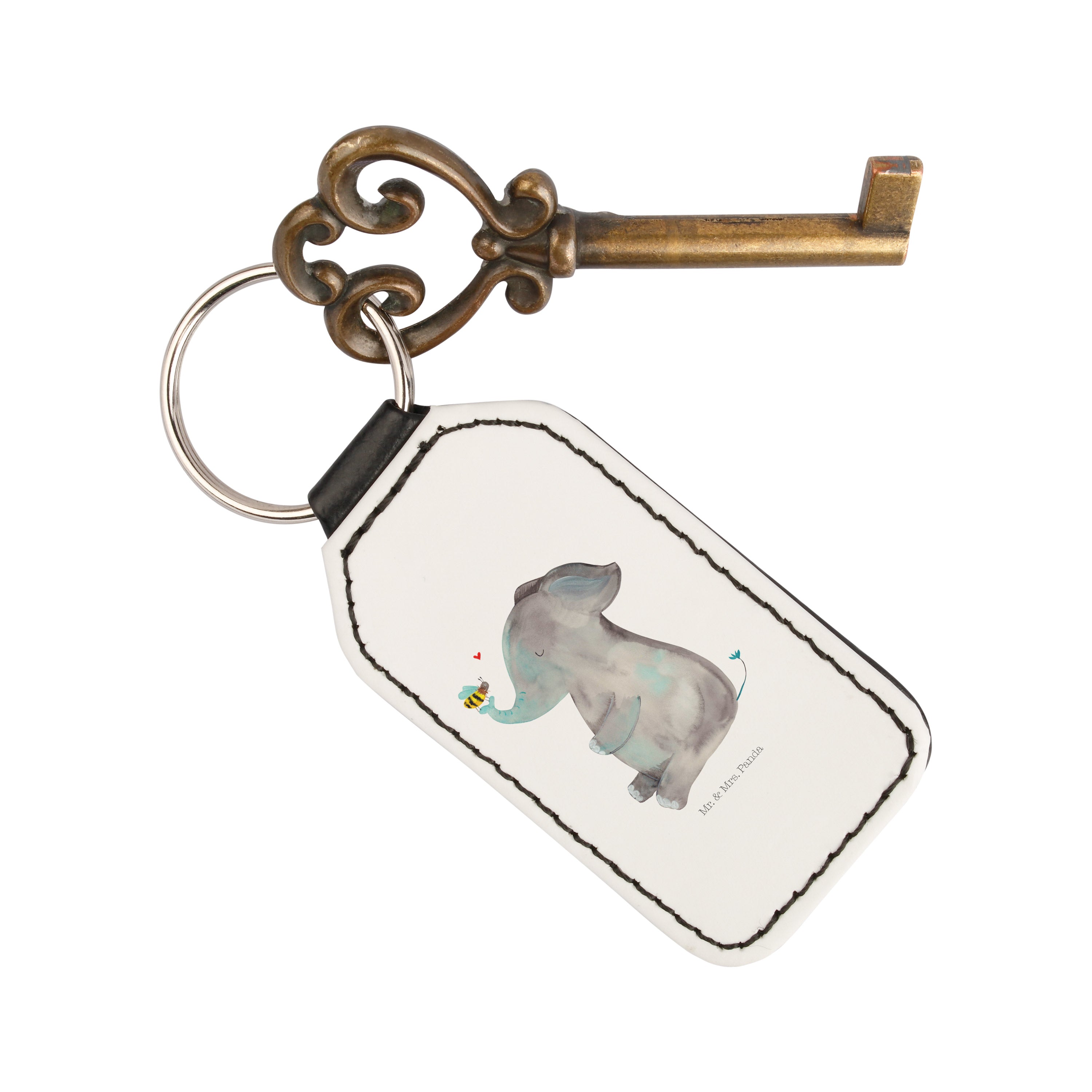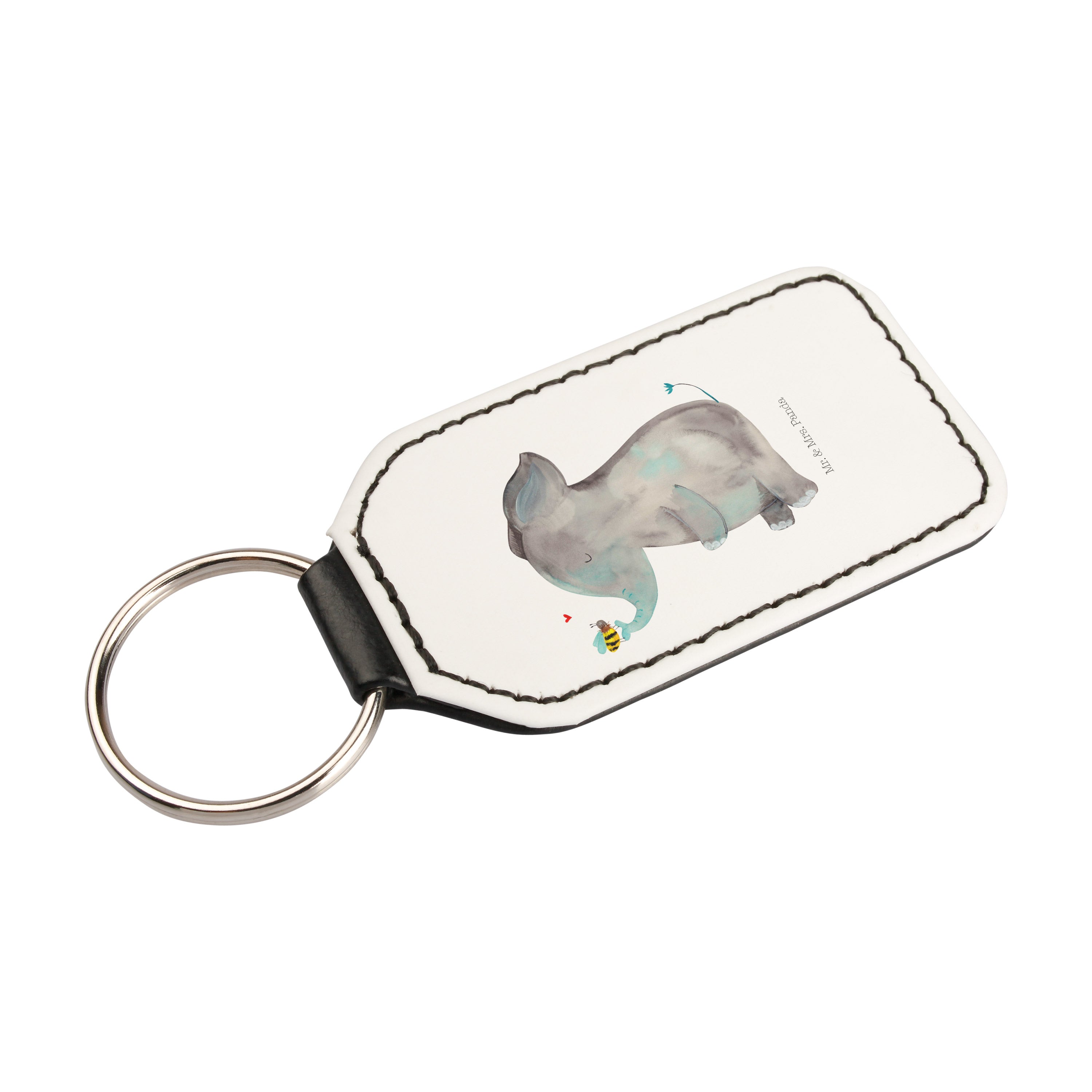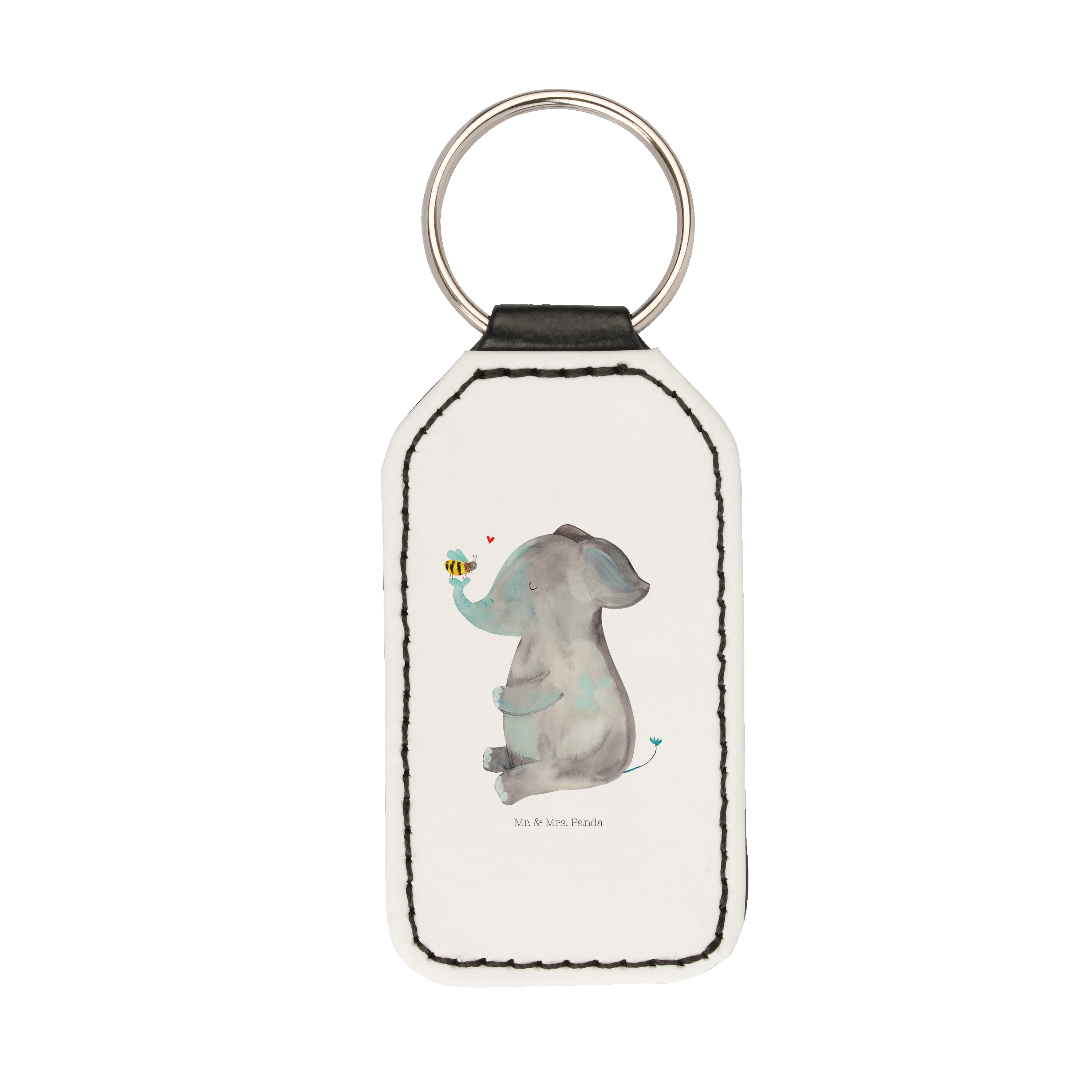 Rechteckig Schlüsselanhänger Elefant & Biene - Weiß