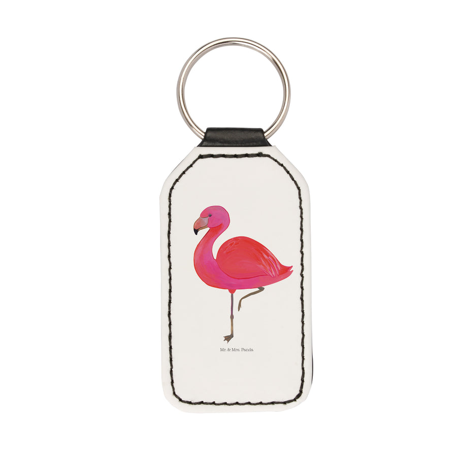 Rechteckig Schlüsselanhänger Flamingo classic - ohne Spruch - Weiß