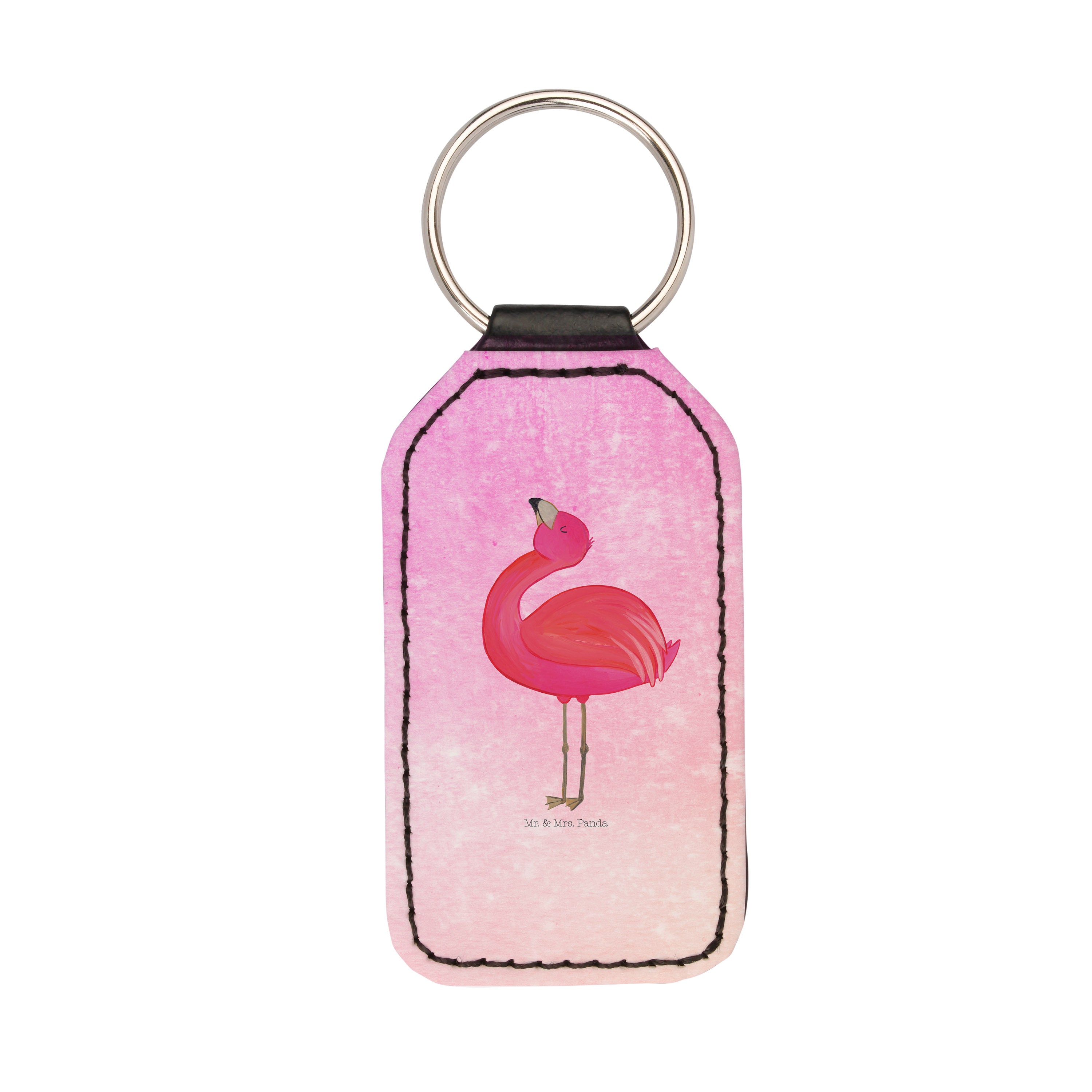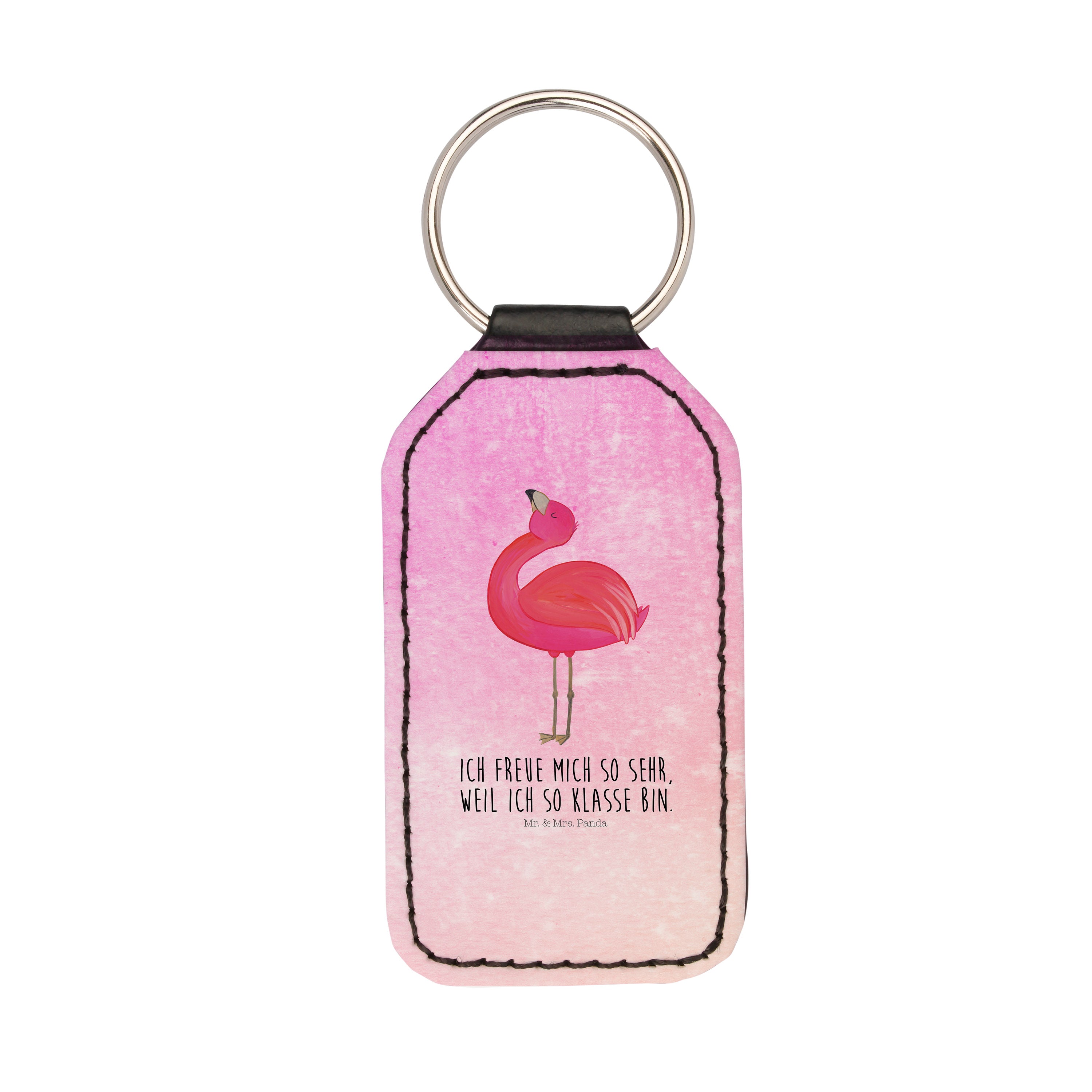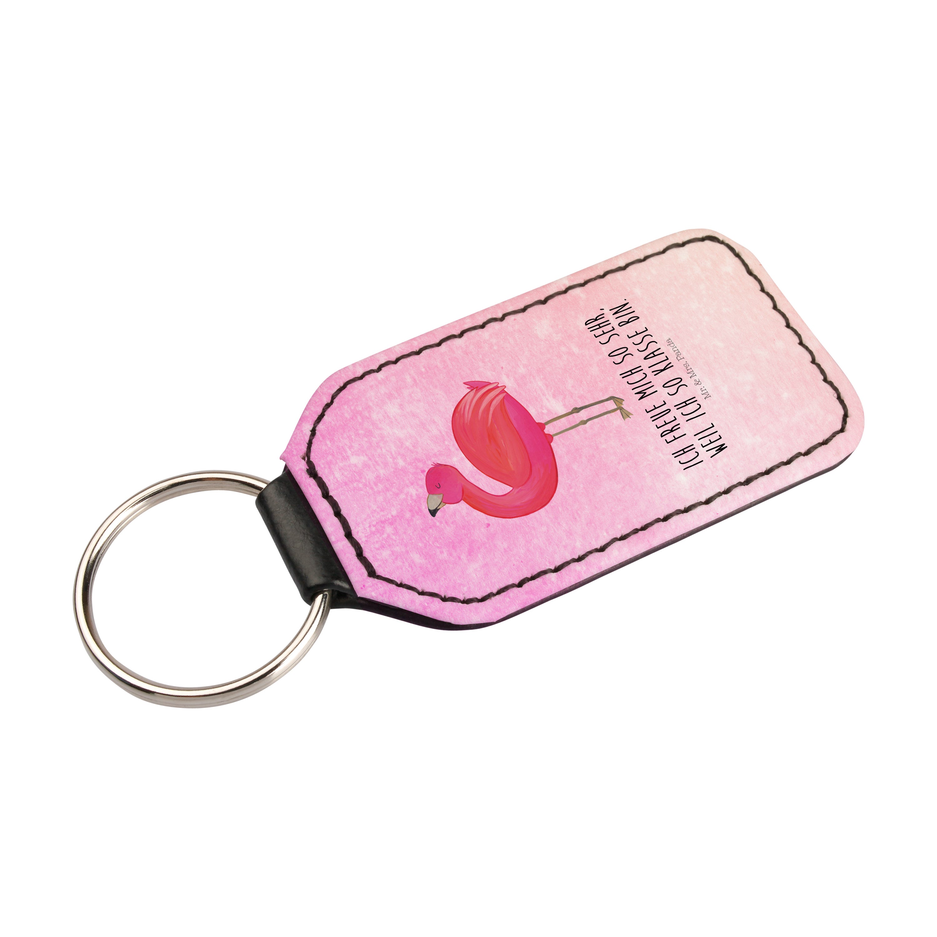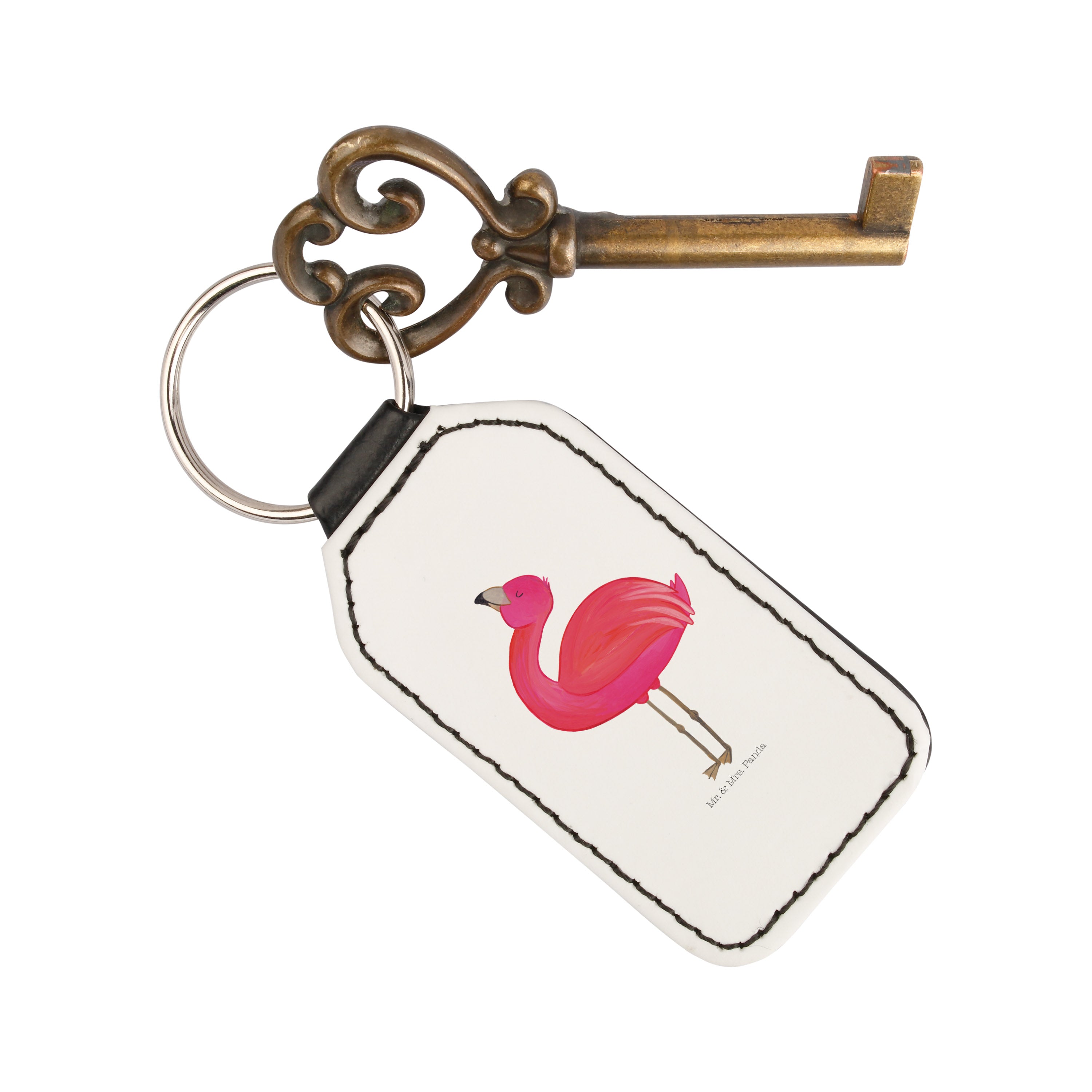 Rechteckig Schlüsselanhänger Flamingo stolz - ohne Spruch - Weiß