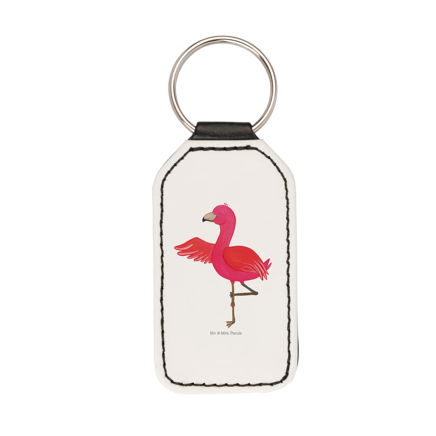 Rechteckig Schlüsselanhänger Flamingo Yoga - ohne Spruch - Weiß