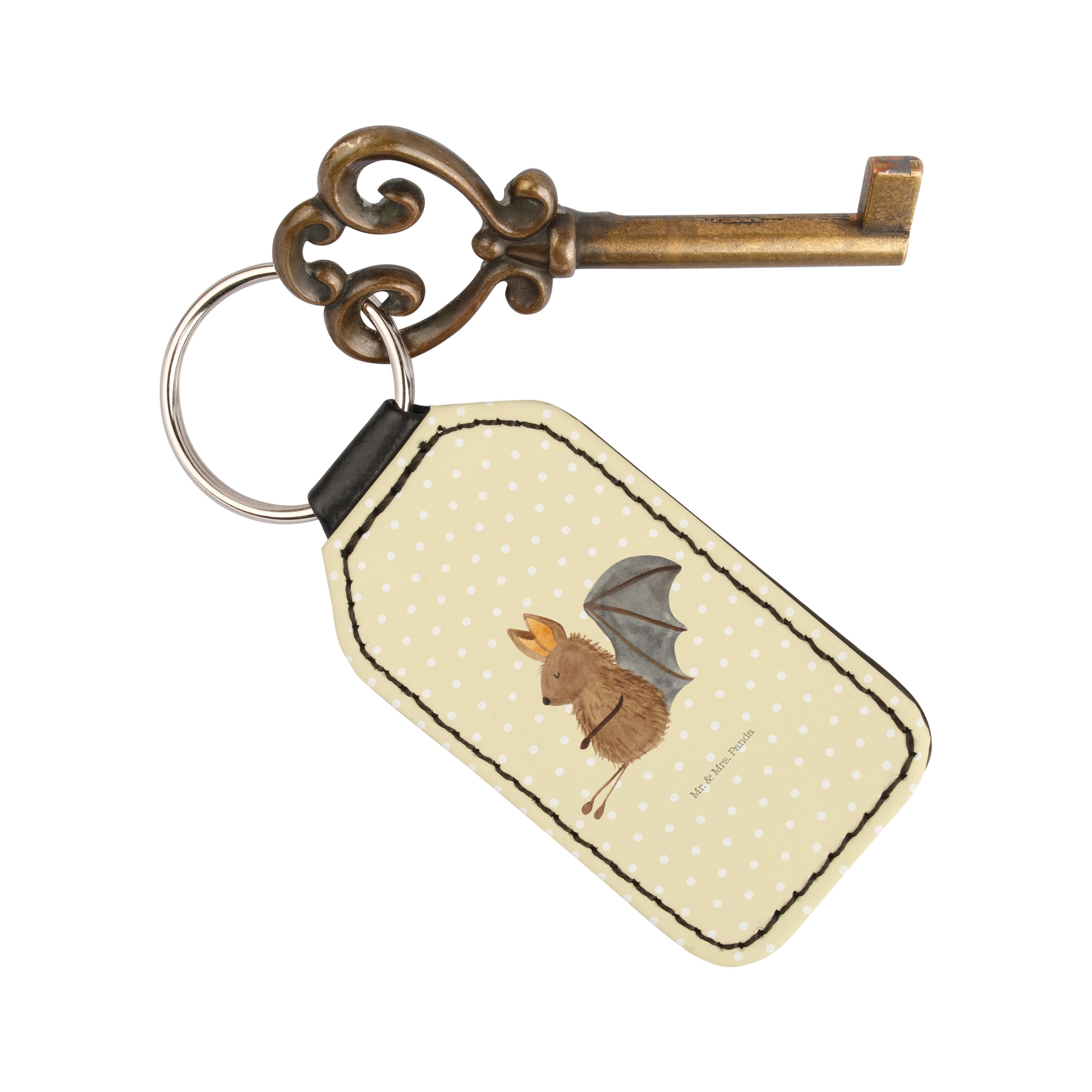 Rechteckig Schlüsselanhänger Fledermaus sitzend - Gelb Pastell