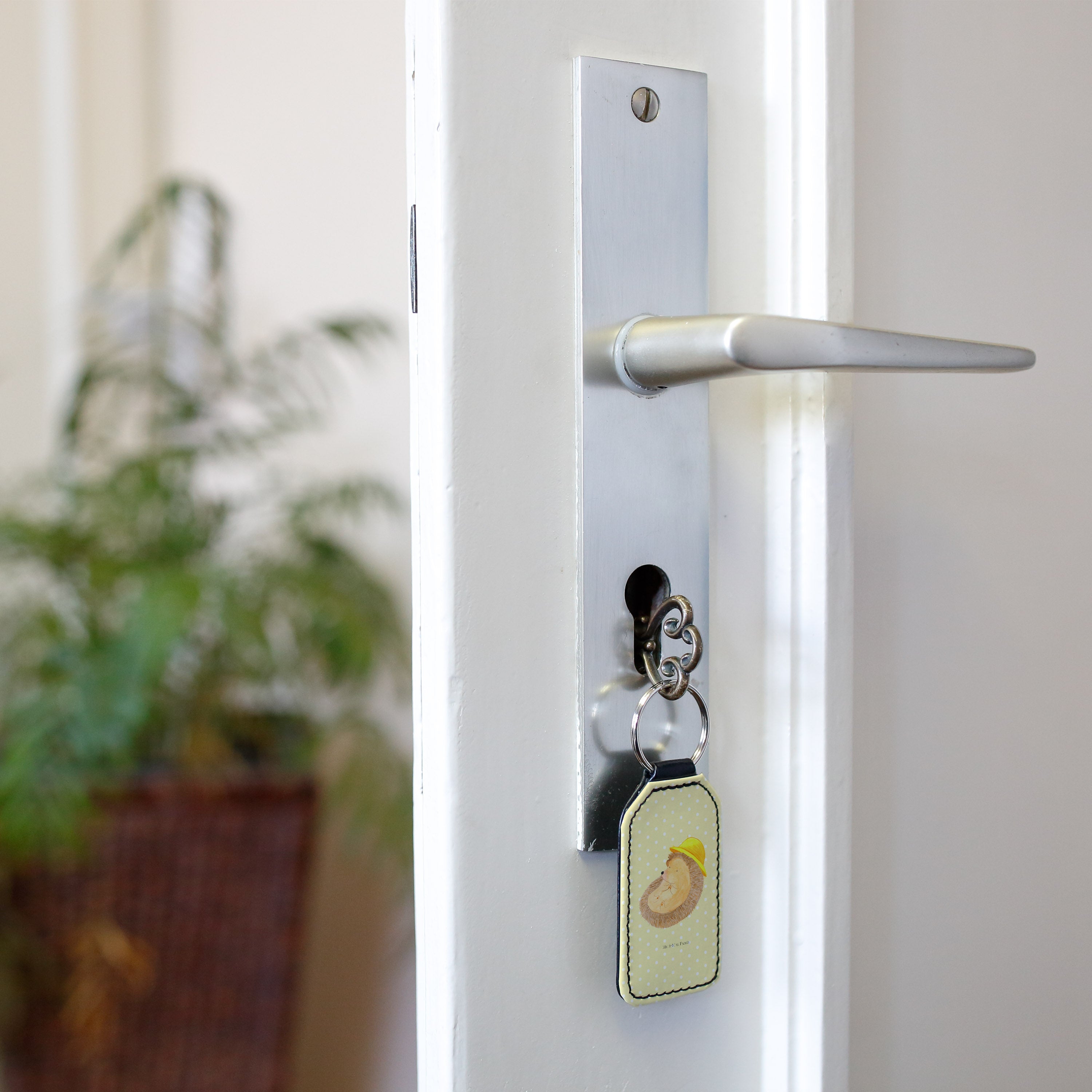 Rechteckig Schlüsselanhänger Igel betet - Gelb Pastell