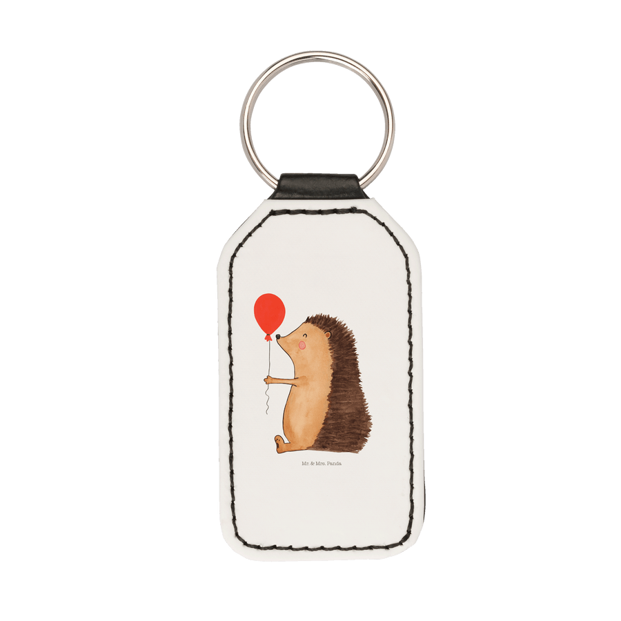 Rechteckig Schlüsselanhänger Igel mit Luftballon - Weiß